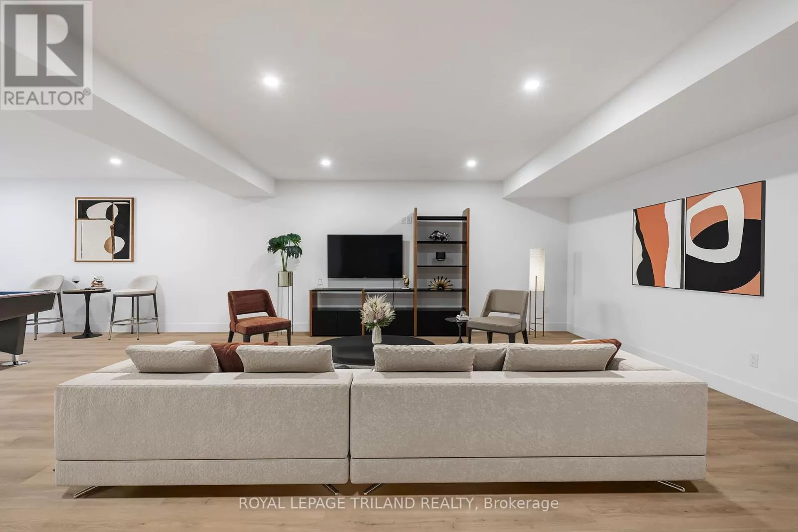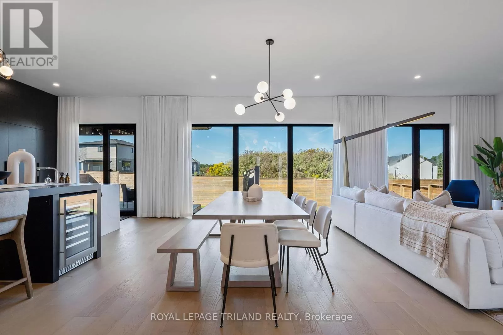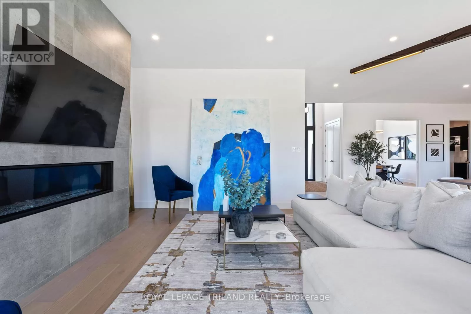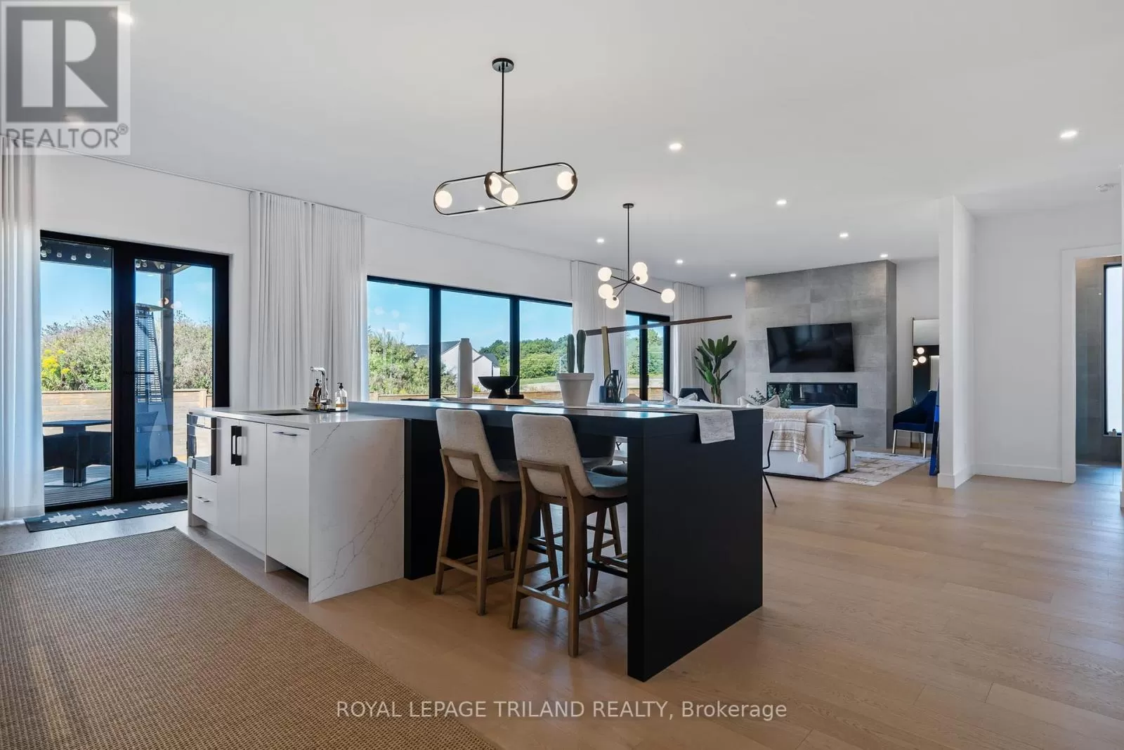 Cross Streets: PACK. ** Directions: Heading in off Pack Road. Welcome to this exceptional, high-end bungalow nestled in one of South London's Silverleaf Estates. This meticulously designed 2+2 bedroom, 3-bathroom home combines luxurious finishes, thoughtful upgrades and seamless living, creating the perfect space for both entertaining and everyday comfort. Step inside and be immediately impressed by the open-concept layout, where natural light floods the space, highlighting the flawless details and superior craftsmanship. The main floor boasts a spacious living room featuring a cozy gas fireplace, creating a warm and inviting atmosphere with floor to ceiling windows and grandious window coverings. The gourmet kitchen is a chefs dream, outfitted with top-of-the-line Fisher and Paykel appliances, custom cabinetry, a sleek bar fridge, and ample counter space for meal preparation. The adjoining dining area is perfect for hosting family gatherings or intimate dinners. Retreat to the master suite, a true sanctuary, complete with a walk-in dream closet and a spa-like en-suite bathroom offering a luxurious soaking tub, glass-enclosed shower, and double vanities. An additional bedroom, a full bathroom, and a den ideal for a home office or library complete the main floor. Downstairs, the fully finished basement extends the living space with two additional bedrooms, a third full bathroom, and a large recreational area, perfect for relaxing or entertaining. Outside, the sprawling deck is an entertainers paradise, offering plenty of space for alfresco dining, relaxation, and enjoying the beautifully landscaped surroundings. The fully fenced yard ensures privacy and security, while the in-ground sprinkling system keeps the lawn lush and green with minimal effort. Additional features include a large double car garage, concrete driveway, built-in security system, and a host of other thoughtful touches throughout the home. (id:27476)