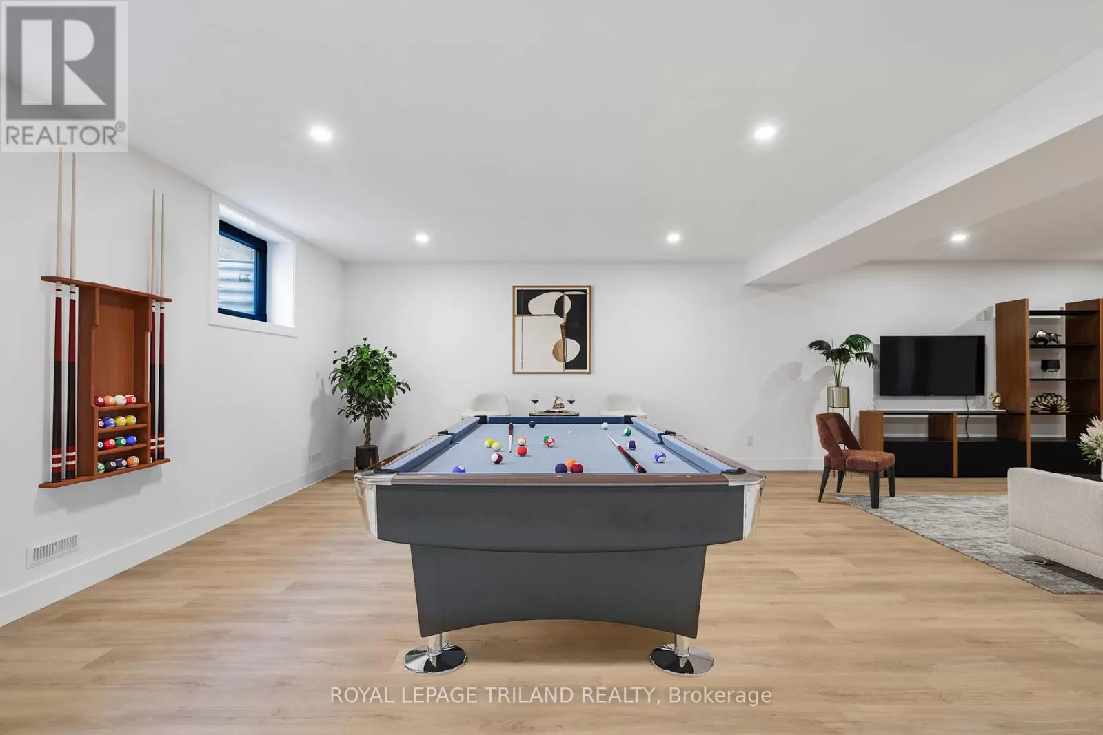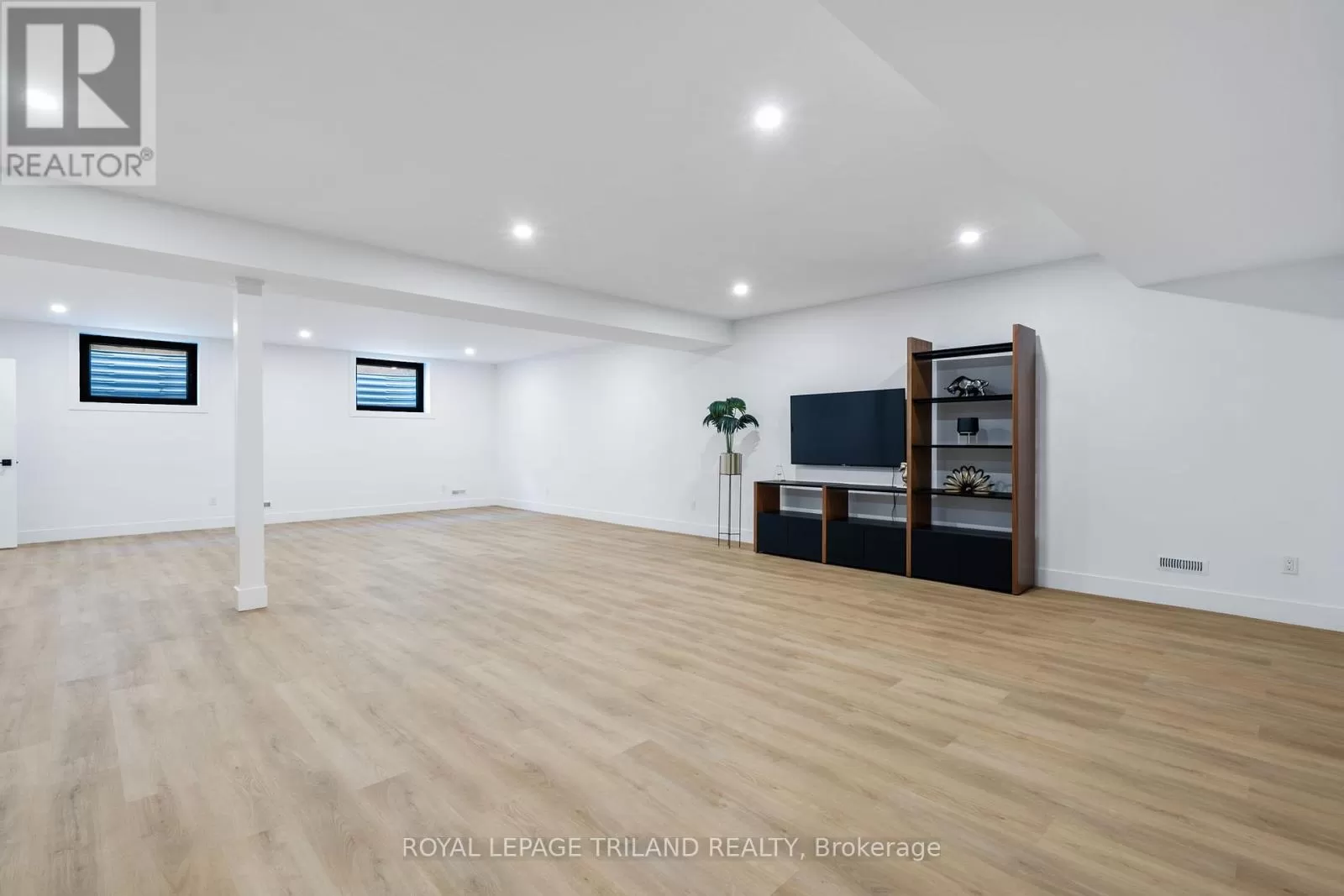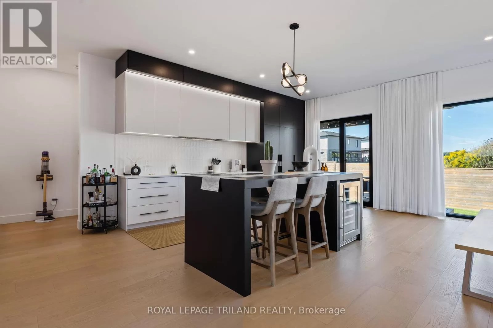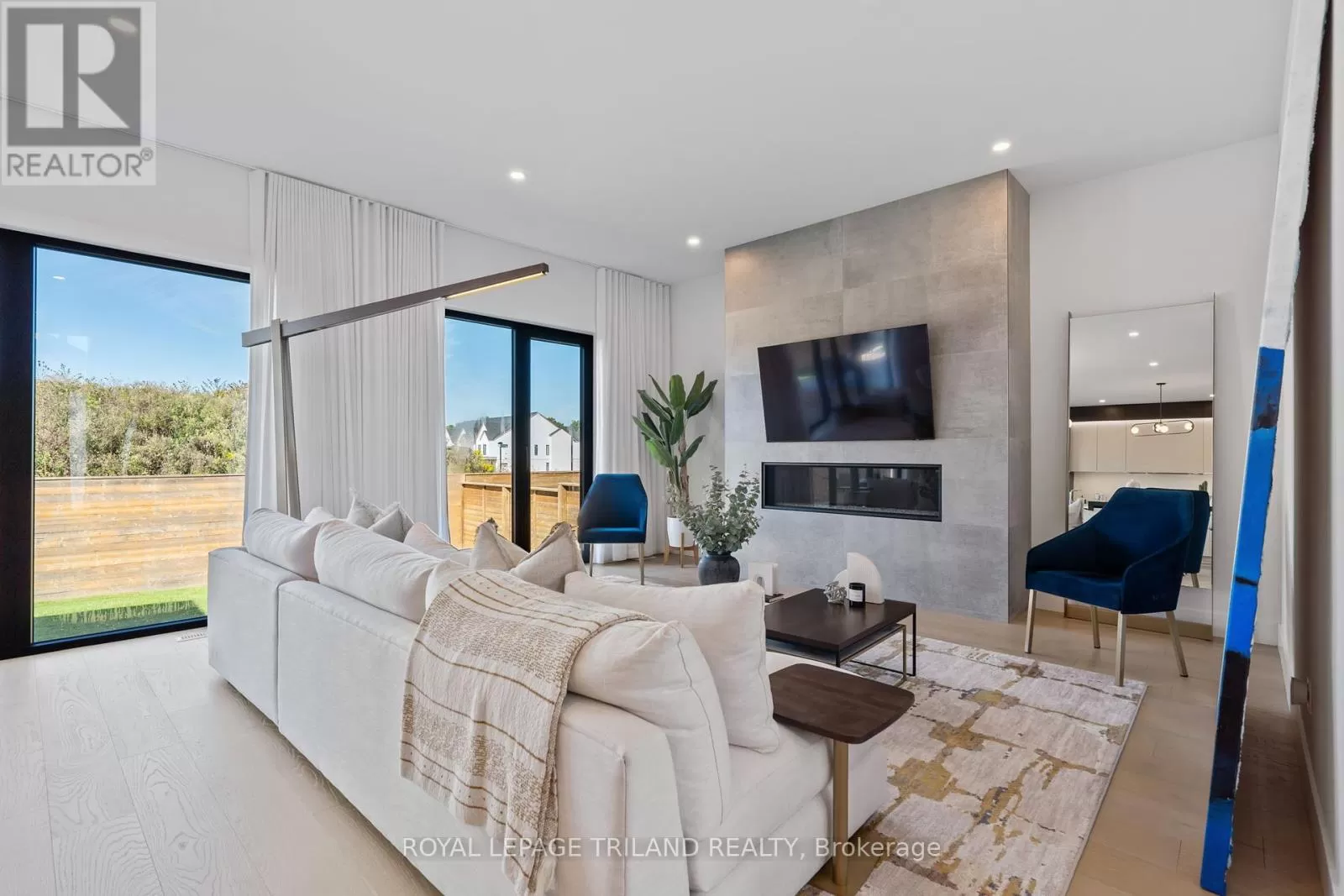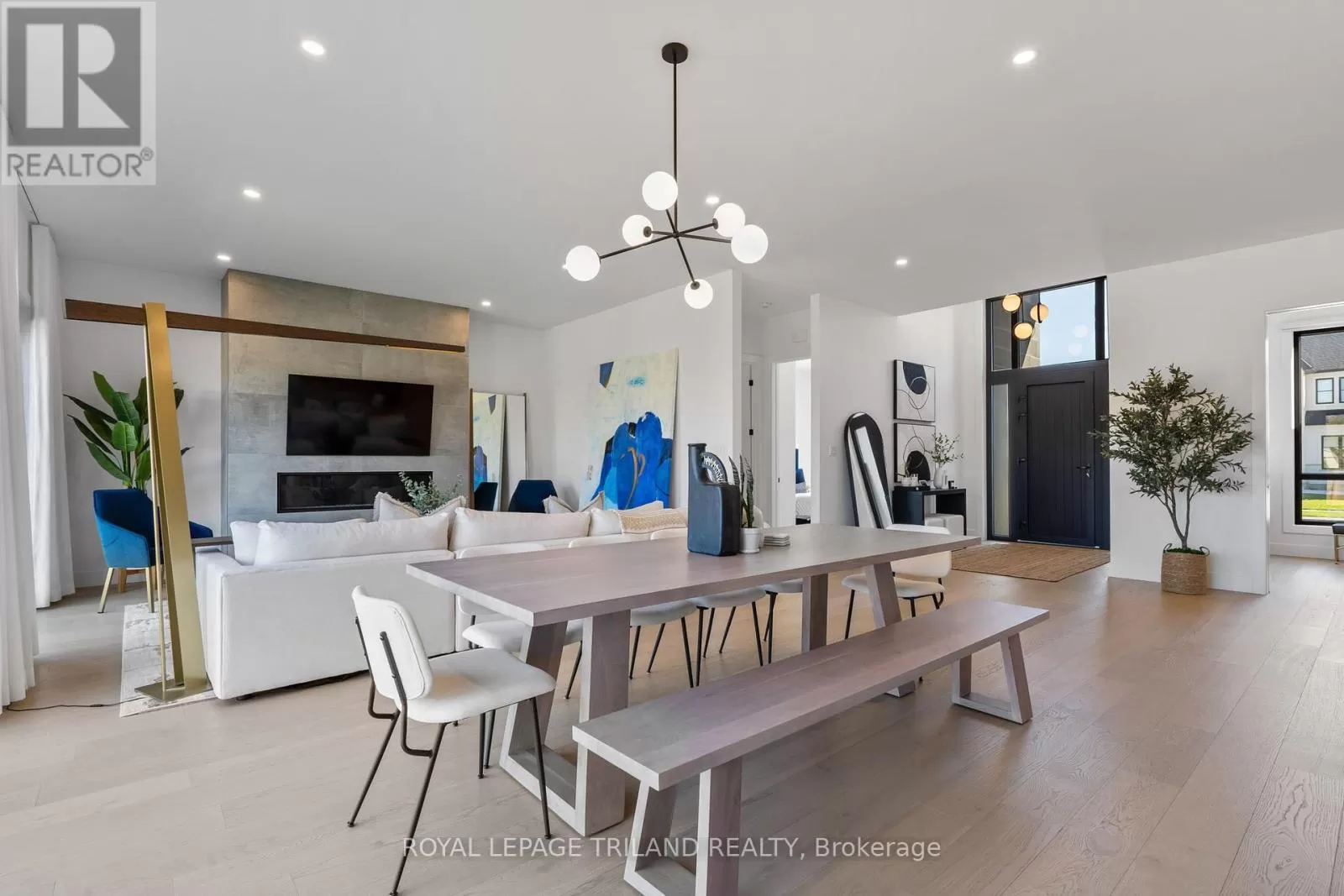Cross Streets: PACK. ** Directions: Heading in off Pack Road. Welcome to this exceptional, high-end bungalow nestled in one of South London's Silverleaf Estates. This meticulously designed 2+2 bedroom, 3-bathroom home combines luxurious finishes, thoughtful upgrades and seamless living, creating the perfect space for both entertaining and everyday comfort. Step inside and be immediately impressed by the open-concept layout, where natural light floods the space, highlighting the flawless details and superior craftsmanship. The main floor boasts a spacious living room featuring a cozy gas fireplace, creating a warm and inviting atmosphere with floor to ceiling windows and grandious window coverings. The gourmet kitchen is a chefs dream, outfitted with top-of-the-line Fisher and Paykel appliances, custom cabinetry, a sleek bar fridge, and ample counter space for meal preparation. The adjoining dining area is perfect for hosting family gatherings or intimate dinners. Retreat to the master suite, a true sanctuary, complete with a walk-in dream closet and a spa-like en-suite bathroom offering a luxurious soaking tub, glass-enclosed shower, and double vanities. An additional bedroom, a full bathroom, and a den ideal for a home office or library complete the main floor. Downstairs, the fully finished basement extends the living space with two additional bedrooms, a third full bathroom, and a large recreational area, perfect for relaxing or entertaining. Outside, the sprawling deck is an entertainers paradise, offering plenty of space for alfresco dining, relaxation, and enjoying the beautifully landscaped surroundings. The fully fenced yard ensures privacy and security, while the in-ground sprinkling system keeps the lawn lush and green with minimal effort. Additional features include a large double car garage, concrete driveway, built-in security system, and a host of other thoughtful touches throughout the home. (id:27476)