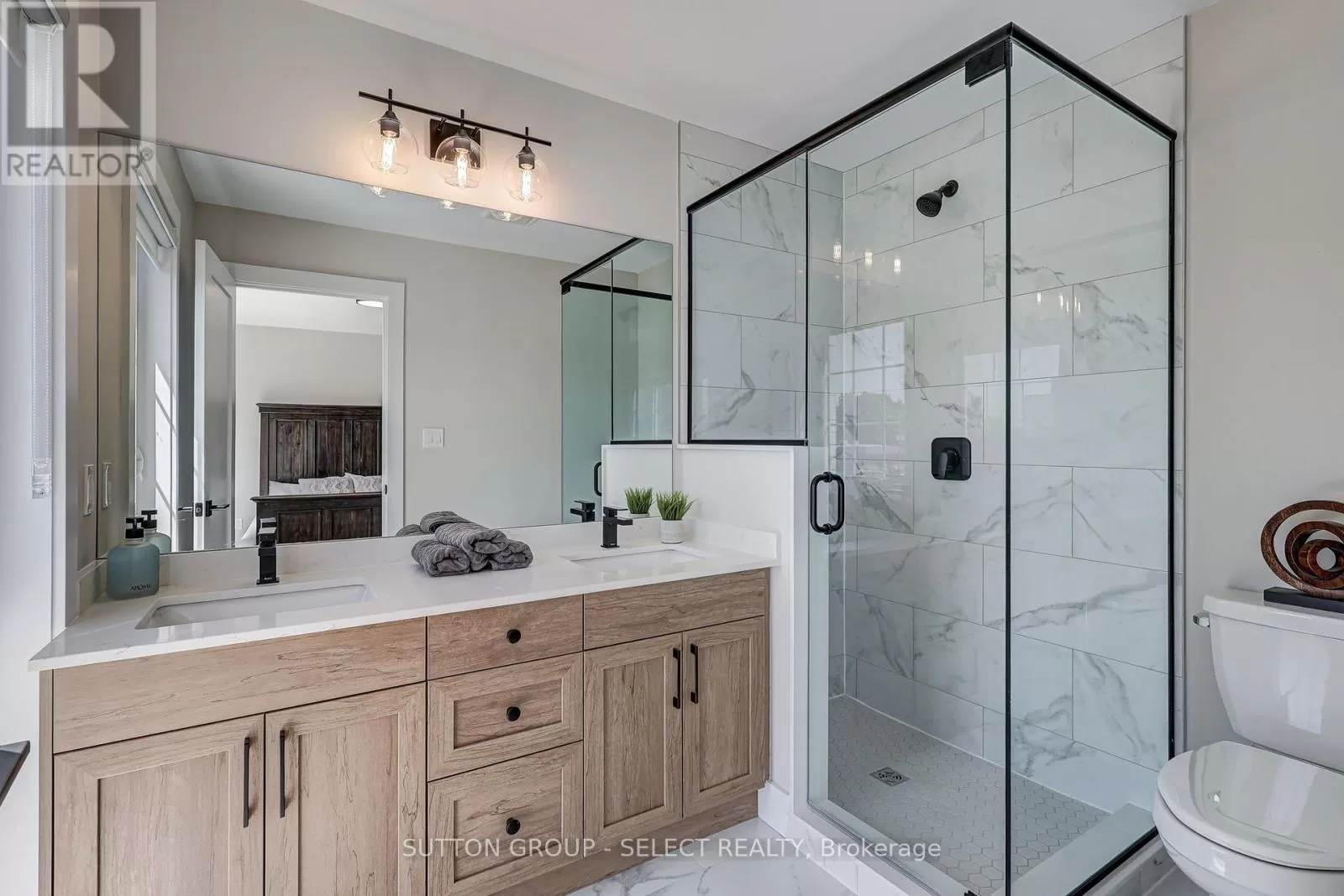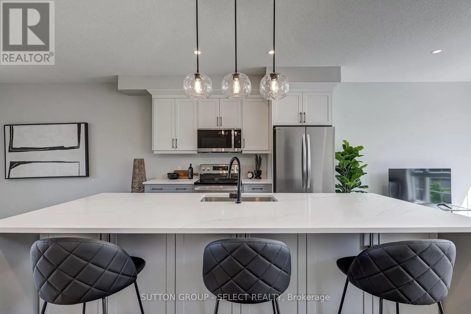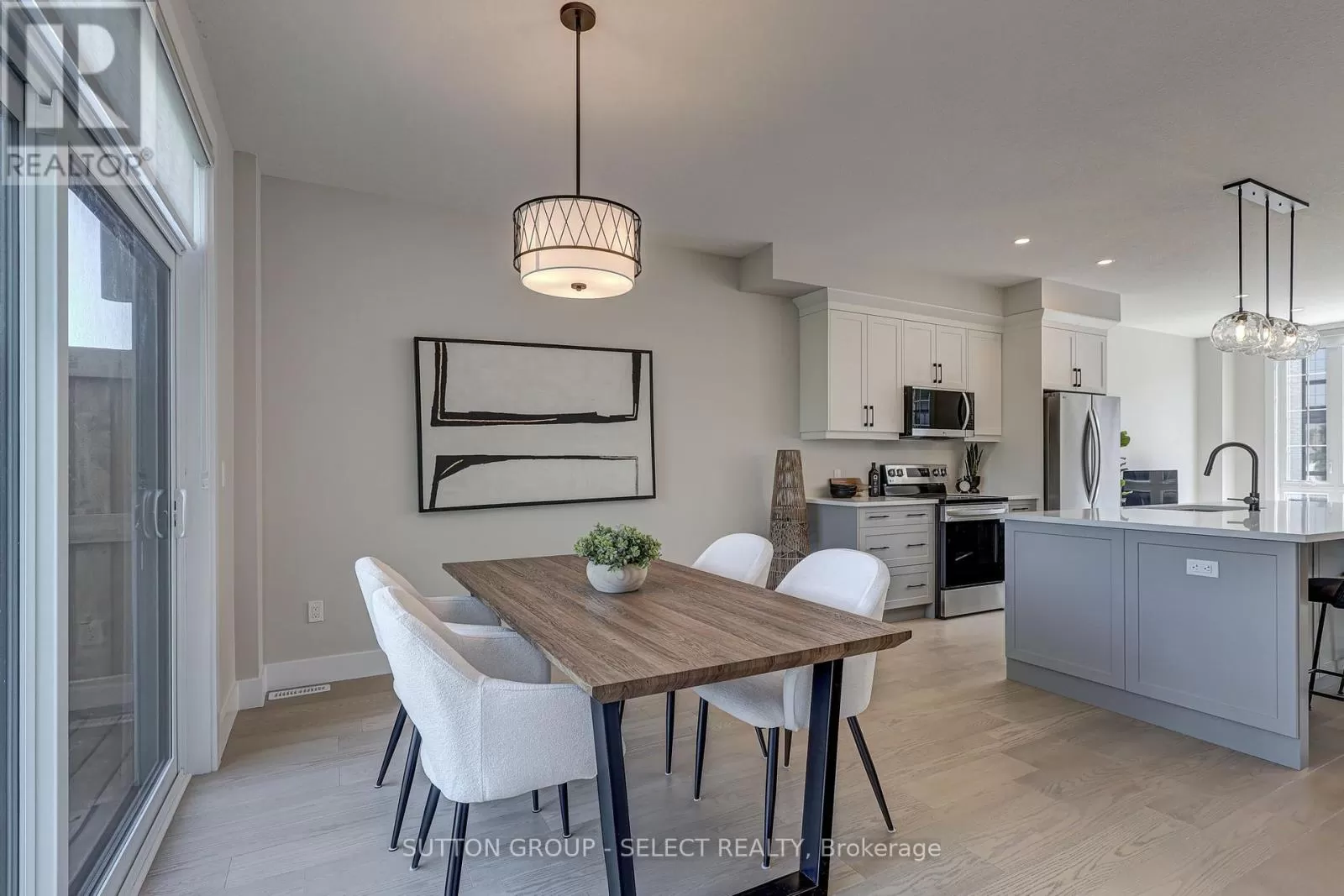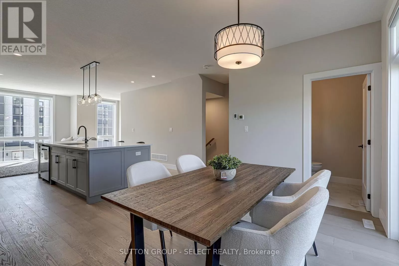COLONEL TALBOT Welcome to 2500 Main Street, where striking contemporary style meets the charm of Lovely Lambeth. This architecturally designed townhome with sophisticated high-end finishes, clean sightlines and an abundance of natural light, creates a space that feels both bold and inviting for many demographics! Inside, you'll find an open-concept layout that maximizes space and flowperfect for modern living and effortless entertaining. The great room is a true showstopper, featuring an oversized window that floods the space with sunlight bringing the outdoors inward. Throughout the home, hard surface flooring adds continuity and a sleek, low-maintenance finish. Boasting 3 spacious bedrooms plus a flexible den (ideal as a 4th bedroom, office, or studio), this home adapts to your lifestyle. The large master bedroom features a sleek en suite and a generous walk-in closet for clean, functional living. The 3.5 luxuriously designed bathrooms are straight from the pages of a design magazine sleek, modern, and thoughtfully appointed with premium fixtures. The chef-inspired kitchen and huge island/breakfast bar blends seamlessly with the living and dining areas, offering streamlined cabinetry, ample workspace, and a stylish environment for hosting or everyday life. Step outside to your private patio and 2nd level deck, the perfect extension of your living space, ideal for summer gatherings or quiet evenings under the stars. Additional highlights include Large windows throughout for natural light in every corner, Hard flooring on all levels no carpet anywhere Contemporary lighting and minimalist detailing! Situated in the TRUE HEART of the sought-after Lambeth community and in walking distance from all major amenities, this property checks all the boxes! With only 16 units with the Lambeth Heights development, scarcity is a real consideration!!! (id:27476)