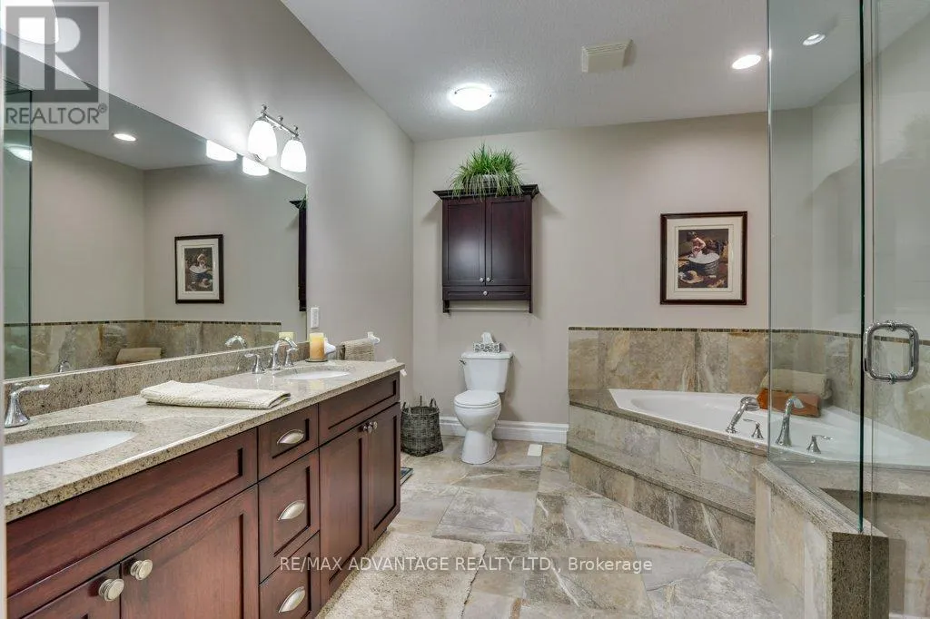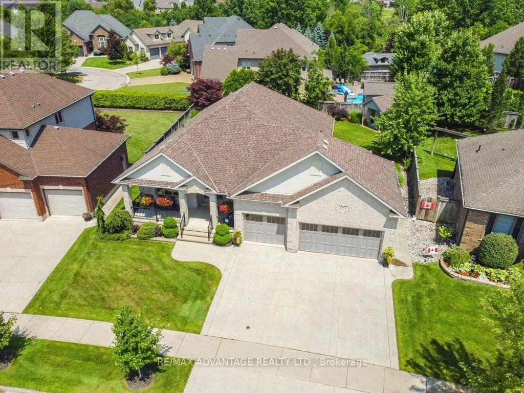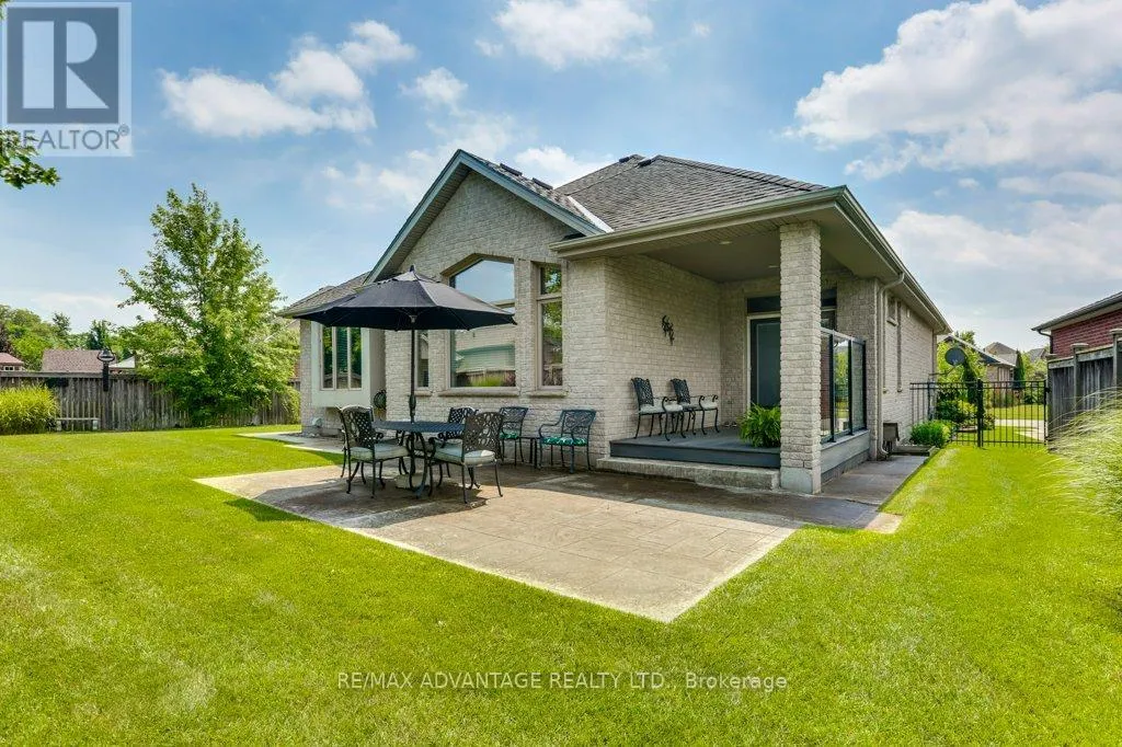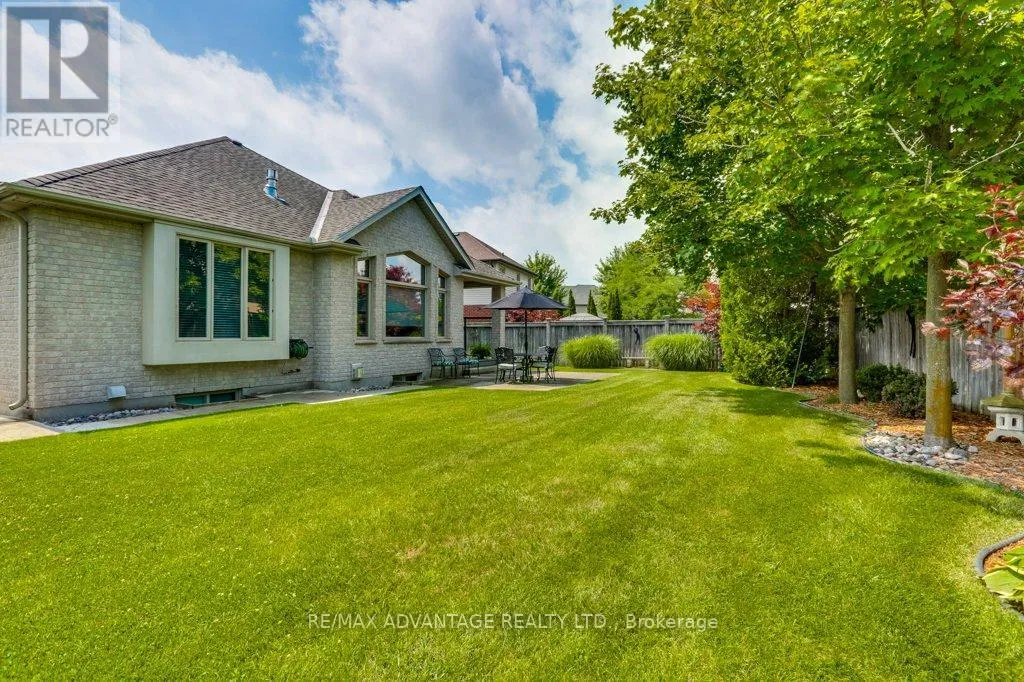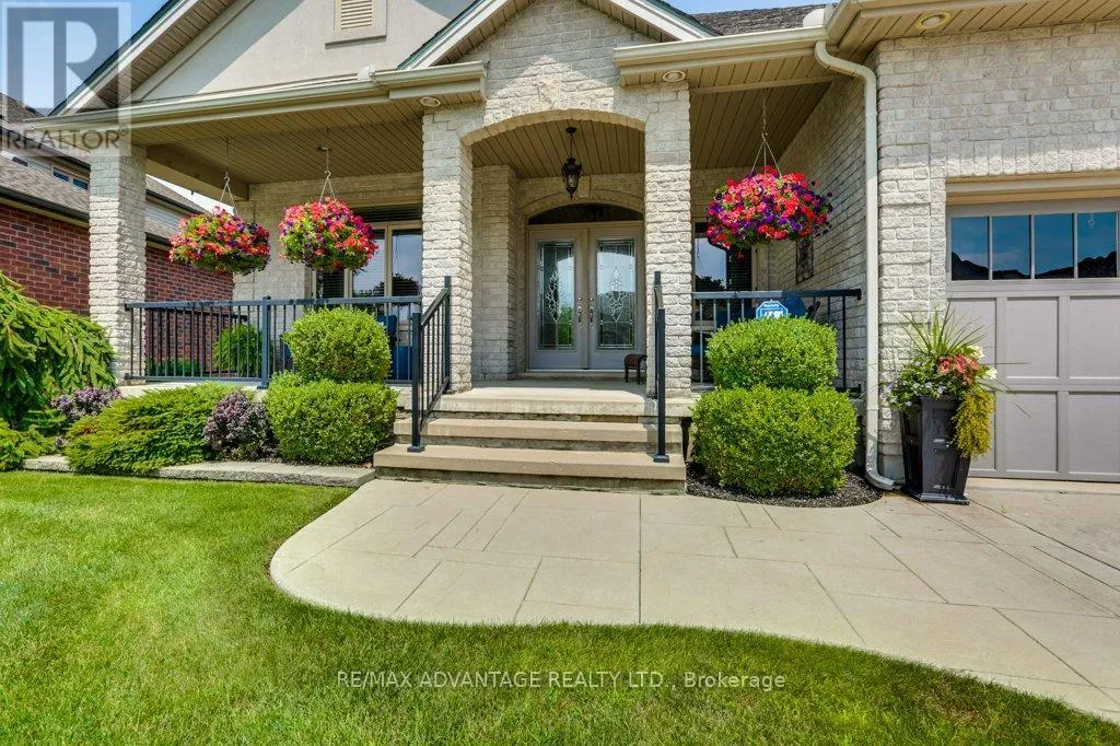 Cross Streets: Mclauchlan Ct. ** Directions: North from Pack Road on Settlement Trail to property. Looking for the ideal home to suit your downsizing needs? Checkout this beautiful custom one floor home in Talbot Village in South West London, with easy access to the 401/402 and all local amenities. You will enjoy sitting out on the covered front porch rain or shine, just say hi to the neighbours. Inside this home features tons of upgraded features, just to name a few, 10 ft ceilings on main floor, vaulted ceiling in the great room, transom windows, oversized trim and a custom kitchen with large island, pantry and lots of granite and built-in appliances. Relax in your private suite with double closets and luxury ensuite with soaker tub and custom glass & tile shower. The second bedroom can double as a den or office and there is a third bedroom in the lower level. This home is an entertainers delight with open plan main floor and guests can enjoy the large finished lower level with a rec room and a large games area or relax and enjoy the 2 gas fireplaces on both floors or relax with a game of pool on the included pool table. The yard is fully fenced with a nice garden shed and you can BBQ or stout on the covered rear deck located just off the dining room. You will love the oversized 3 car garage with work bench area and auto door openers. Truly a great home, just move in and enjoy. (id:27476)