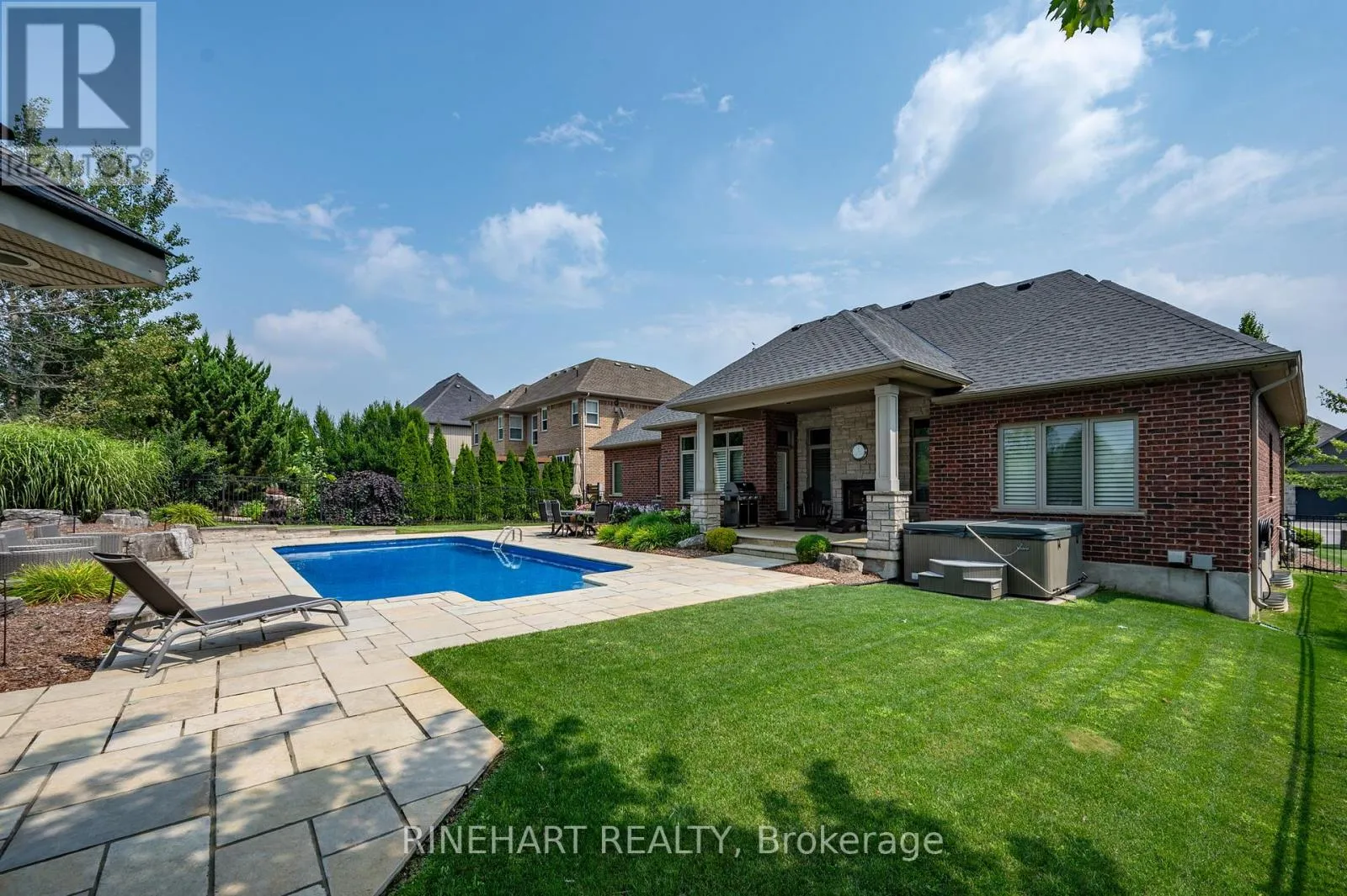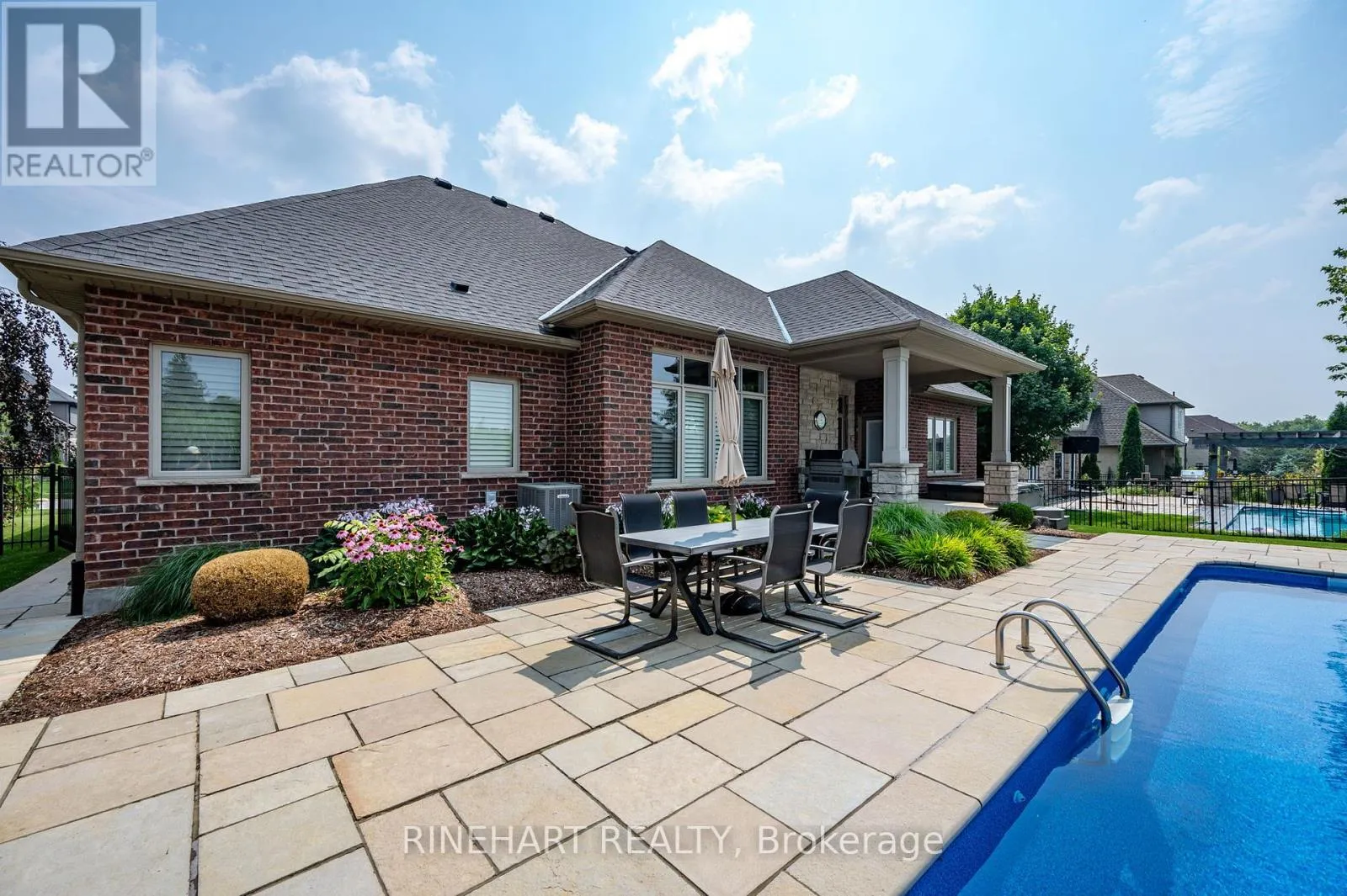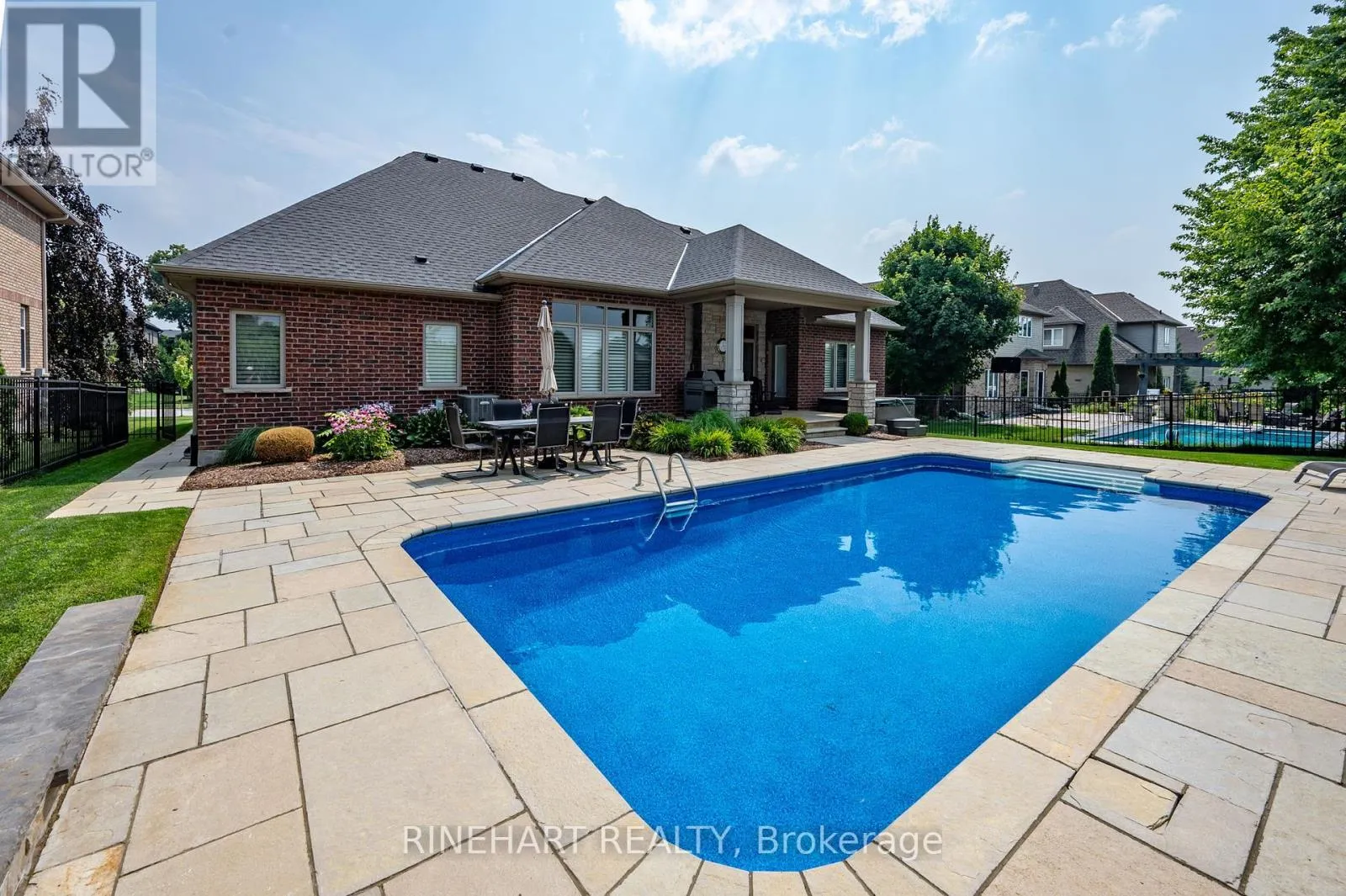 Cross Streets: Colonel Talbot Rd. ** Directions: Head North on Colonel Talbot Rd, Turn Left onto Clayton Walk, House is on the Right. Welcome to 6968 Clayton Walk, a beautifully maintained all-brick bungalow tucked away in one of South London's most desirable communities. From the moment you arrive, the curb appeal impresses with its manicured landscaping, wide driveway, and stately double garage. Step inside and you are greeted by a bright and welcoming foyer with warm natural light, setting the tone for a home that feels both refined and inviting.The front office and formal dining room offer the perfect balance of function and elegance, while the heart of the home lies just beyond. Here, an open-concept living room with an indoor fireplace flows seamlessly into a stunning kitchen and breakfast area. Rich dark wood cabinetry, tiled floors, a central island, walk-in pantry, and generous storage make this space as practical as it is stylish.The main floor is thoughtfully laid out with a spacious laundry room, a 2-piece guest bath, and three large bedrooms. The primary suite is a true retreat, complete with a luxurious five-piece ensuite, walk-in wardrobe closet, and direct walkout to your private backyard oasis. The two additional bedrooms share a beautifully designed five-piece bathroom with dual access.Downstairs, the massive finished basement offers incredible versatility. A spacious rec room, wet bar, fitness area, and a fourth bedroom with its own three-piece bath provide the ideal layout for entertaining, relaxing, or accommodating guests in comfort.Step outside and enjoy a backyard built for summer living, featuring a low-maintenance yard, an in-ground swimming pool, a charming pool house, and an indoor-outdoor fireplace that creates a perfect atmosphere day or night. Surrounded by bike paths, top-rated schools, and just minutes to Lambeth, parks, and restaurants, this home truly has it all. And with professional property maintenance already covered for the rest of 2025, your time here is yours to enjoy. Don't miss out and book your showing today! (id:27476)
