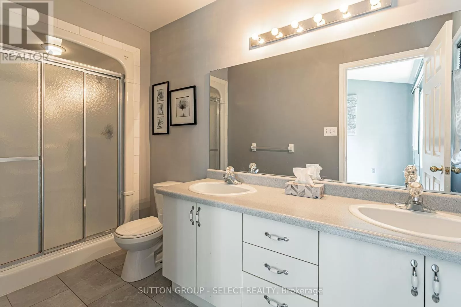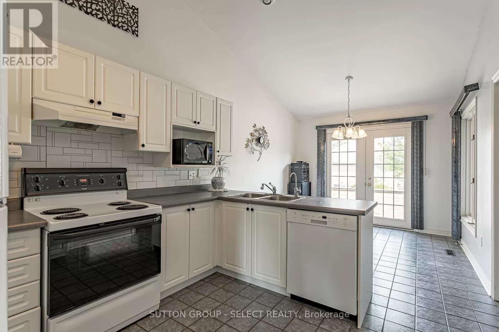 Cross Streets: Highview Ave. ** Directions: South on Wharncliffe Rd S, from Commissioners Road, past Highview Ave W, 2nc entrance/complex on the right hand side. Single-Level Brick Condo in South London's Orchard Hill Residences! This well-maintained, spacious condo offers two bedrooms, including a primary suite with a walk-in closet and a 3-piece ensuite. The second bedroom also features a walk-in closet. With 2.5 bathrooms, the open living and dining area boasts a cozy gas fireplace and patio doors opening to a 12' x 12' deck overlooking the backyard. The kitchen features a dinette area with patio access to the front courtyard, white cabinets with a peninsula, double sinks, tiled backsplash, water filtration, and a wall pantry, perfect for daily living and entertaining. The main floor showcases cathedral ceilings, a skylight, hardwood and ceramic flooring, six appliances, and convenient main-floor laundry. The finished lower level includes a spacious family room, a den, a wet bar, a workout area, a cold cellar, and additional storage. Comfort and efficiency are ensured with a forced-air gas furnace, central air, and a 100-amp breaker service. The attached two-car garage with an automatic opener provides easy access, with entry to both the courtyard and front porch. Located in a beautifully landscaped, limited-residence complex with lovely gardens, backing onto residential homes, this one-owner home has been lovingly maintained since new. Quick, flexible possession available, perfect for your move-in needs! (id:27476)