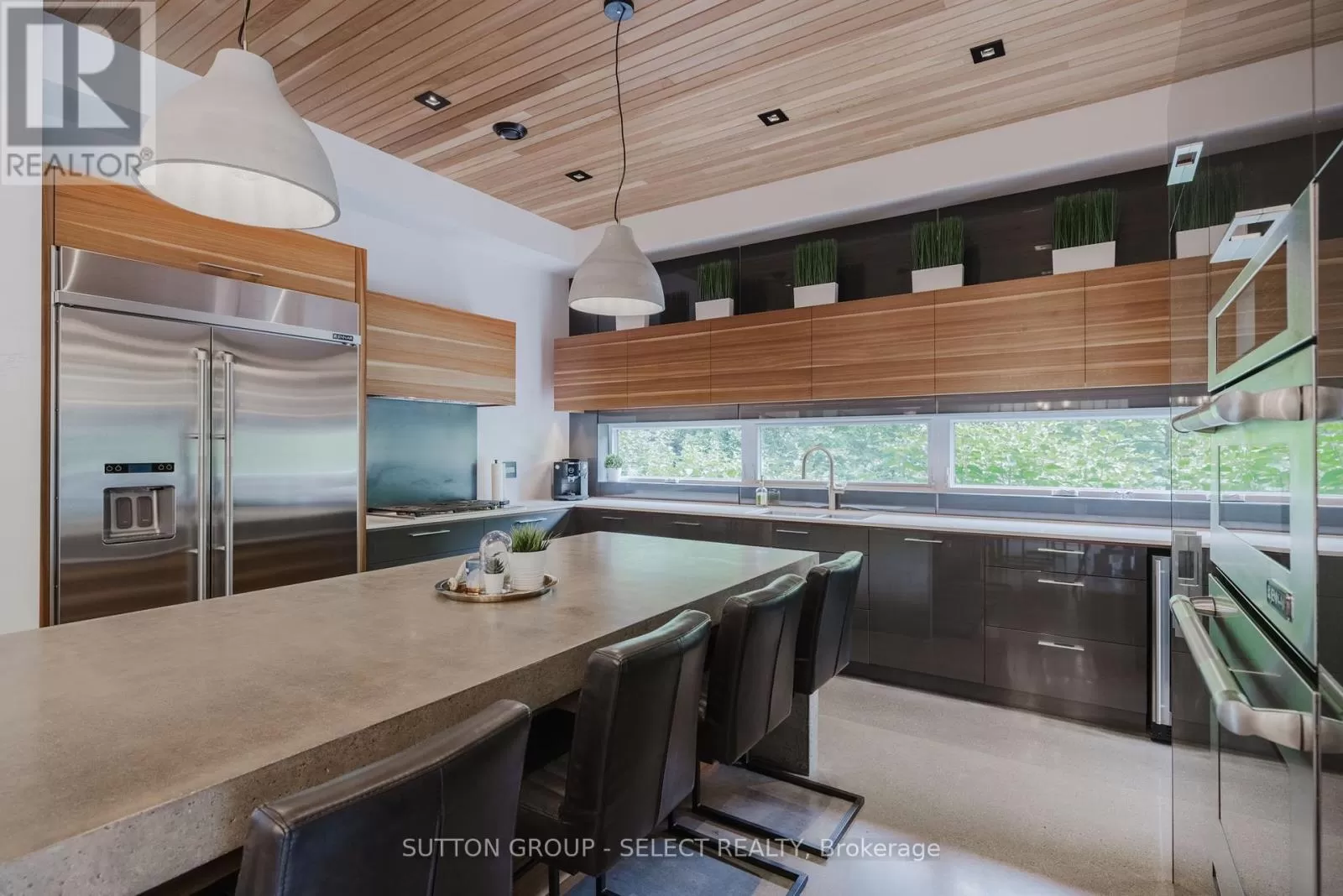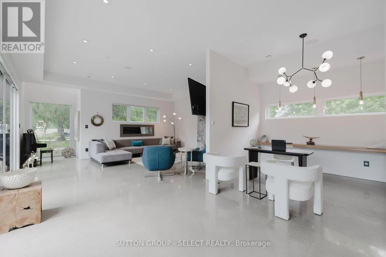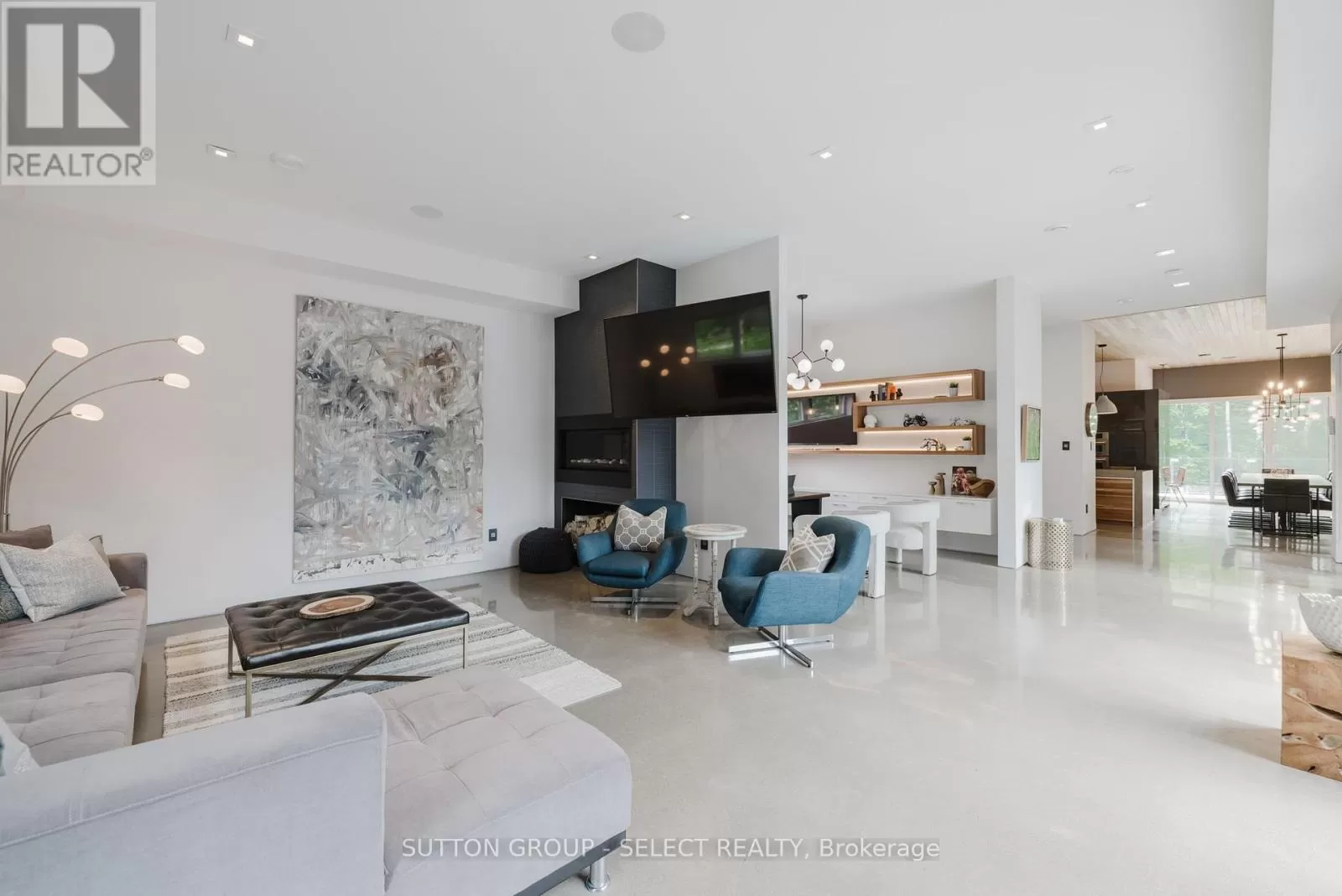 WOODHULL RD & ELVIAGE DR Welcome to 9385 Elviage Drive, surrounded by tall mature trees and with its private driveway, this home will feel serene. Prepare to be amazed by this rare architectural masterpiece on an estate sized lot. This stunning custom home is the very definition of modern West London living with breathtaking views and a luxury resort feel. This family home boasts 5,500 sq. ft. of contemporary finishes with the ultimate in luxury features. Walk to your front door on your heated walkway as you pass your sunken fire pit, inground pool and spectacular outdoor entertaining area. Step into your foyer with views of your wine cellar and pine trees in the background. From the custom chef style kitchen with 2 ovens and 2 dishwashers to your warm heated floors. On this stunning property you will find 5 bedrooms, 8 bathrooms and splashes of luxury finishes throughout. Other features include 10 ft ceilings on both floors, solid oak doors, separate nanny/guest suite above the detached garage, steam shower, sauna by the pool, outdoor putting green, amazing lower t.v room, gym, and smart home system. (id:27476)