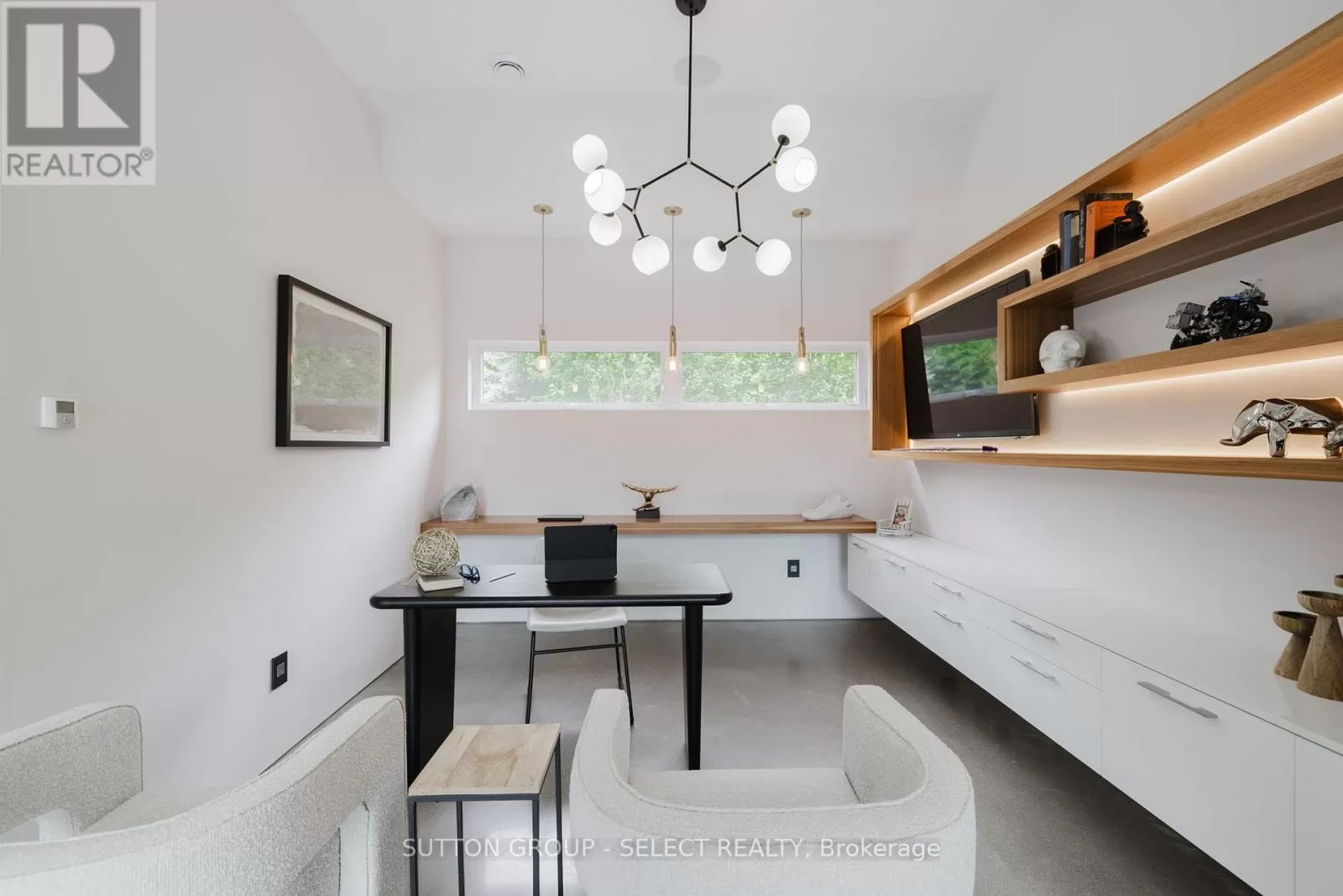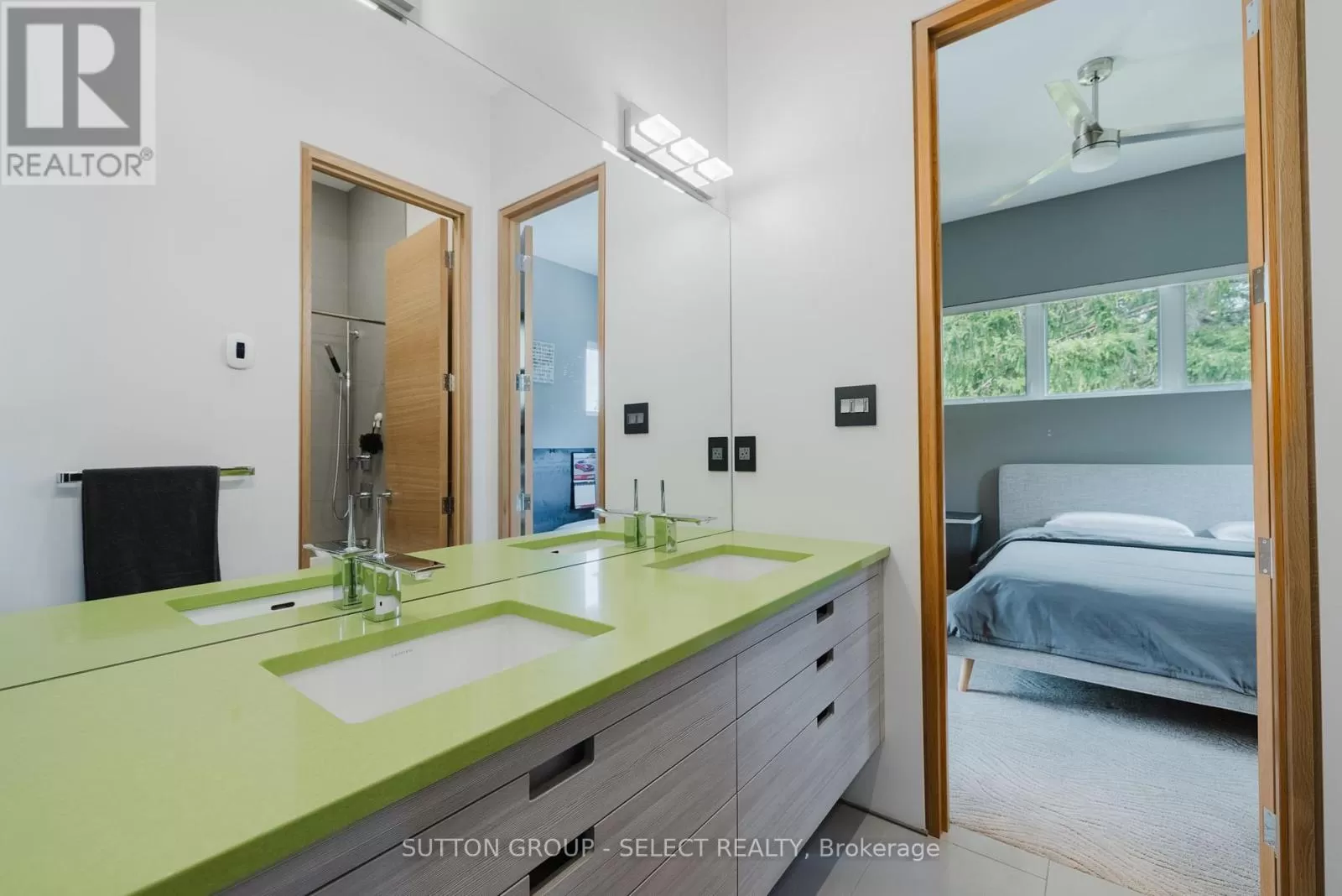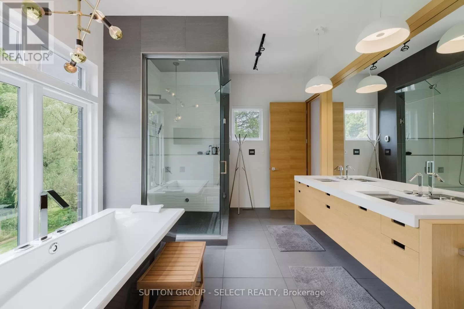 WOODHULL RD & ELVIAGE DR Welcome to 9385 Elviage Drive, surrounded by tall mature trees and with its private driveway, this home will feel serene. Prepare to be amazed by this rare architectural masterpiece on an estate sized lot. This stunning custom home is the very definition of modern West London living with breathtaking views and a luxury resort feel. This family home boasts 5,500 sq. ft. of contemporary finishes with the ultimate in luxury features. Walk to your front door on your heated walkway as you pass your sunken fire pit, inground pool and spectacular outdoor entertaining area. Step into your foyer with views of your wine cellar and pine trees in the background. From the custom chef style kitchen with 2 ovens and 2 dishwashers to your warm heated floors. On this stunning property you will find 5 bedrooms, 8 bathrooms and splashes of luxury finishes throughout. Other features include 10 ft ceilings on both floors, solid oak doors, separate nanny/guest suite above the detached garage, steam shower, sauna by the pool, outdoor putting green, amazing lower t.v room, gym, and smart home system. (id:27476)