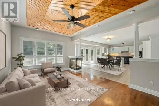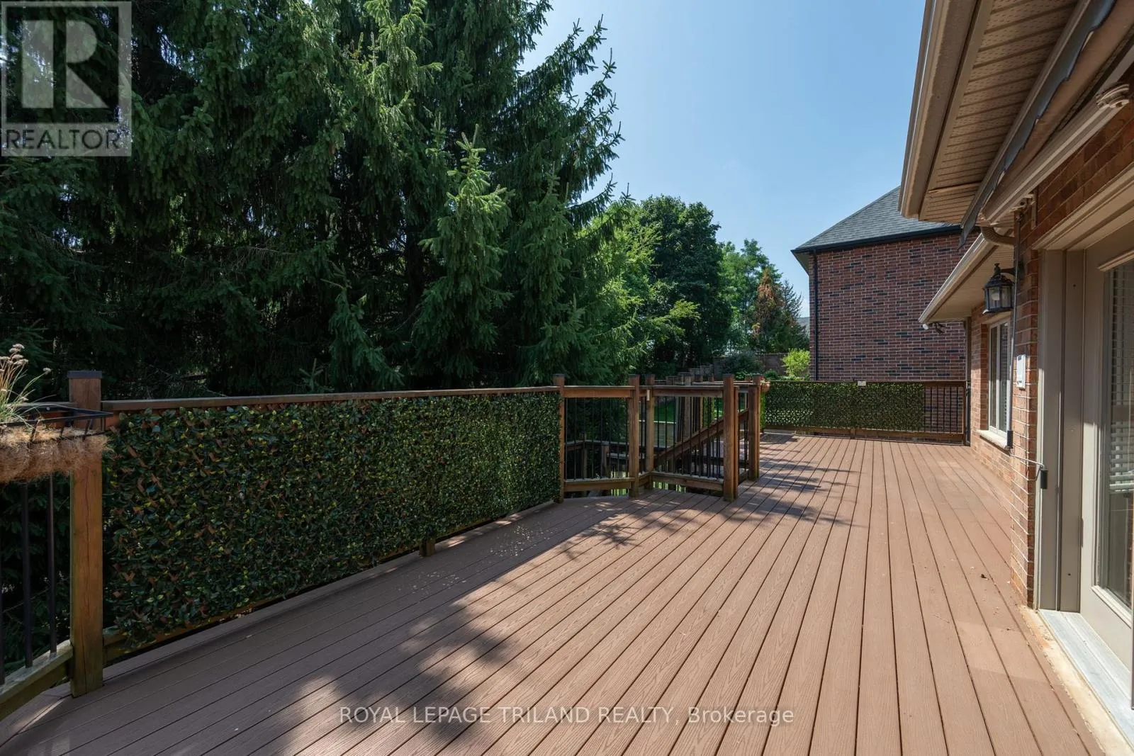 Cross Streets: Commissioners Road and Springbank Road. ** Directions: Commissioners Road, west of Wonderland, South onto Crestwood, Right into 537 Crestwood. Located on a private lane in desirable Westmount, this custom-built bungalow offers 2760 sq ft of luxury on the upper level, with crown mouldings, hardwood & ceramic flooring, French doors, round bead corners & fresh, neutral decor. The open-concept layout is perfect for entertaining in the lovely formal living & dining rooms. The family will love gathering in the modern kitchen with its' marble counters, breakfast bar, ceramic backsplash, undercabinet lighting, pot drawers, stainless steel appliances, large eating area & walkout to the private 41.8' x 14.3' composite wraparound deck for quiet evenings with friends & family. A 3-way fireplace accents the kitchen dining area & adjacent family room, with its fabulous vaulted ceiling. Double doors open to the lovely primary bedroom with its walk-in closet & ensuite with soaking tub. Two other large bedrooms have very generous closets with organizers & large picture windows. There is also an office in the opposite wing of the home. The huge laundry room has access to the garage, side deck & second staircase with a stairlift to the lower level. The open hardwood staircase leads from the inviting foyer down to the incredible finished lower level, with an awesome rec room featuring a floor-to-ceiling brick gas fireplace, wet bar, track & pot lighting, oversized windows & walkout to the concrete lower patio to enjoy the mature garden & fenced yard. Two large bedrooms flank the rec room, all having hardwood-look flooring. One bedroom has a wall-to-wall closet while the other has a walk-in closet & direct access to the 3-piece washroom. Another room has been finished as a kitchen with ceramic flooring, counter, cabinets, appliances & walk-in pantry. The second staircase leads directly into this room, making this an ideal in-law apartment. The utility room has space for a workshop & the 24.5' x 22'extra high garage is great for large vehicles. This beautiful home is truly a home to treasure!!! (id:27476)