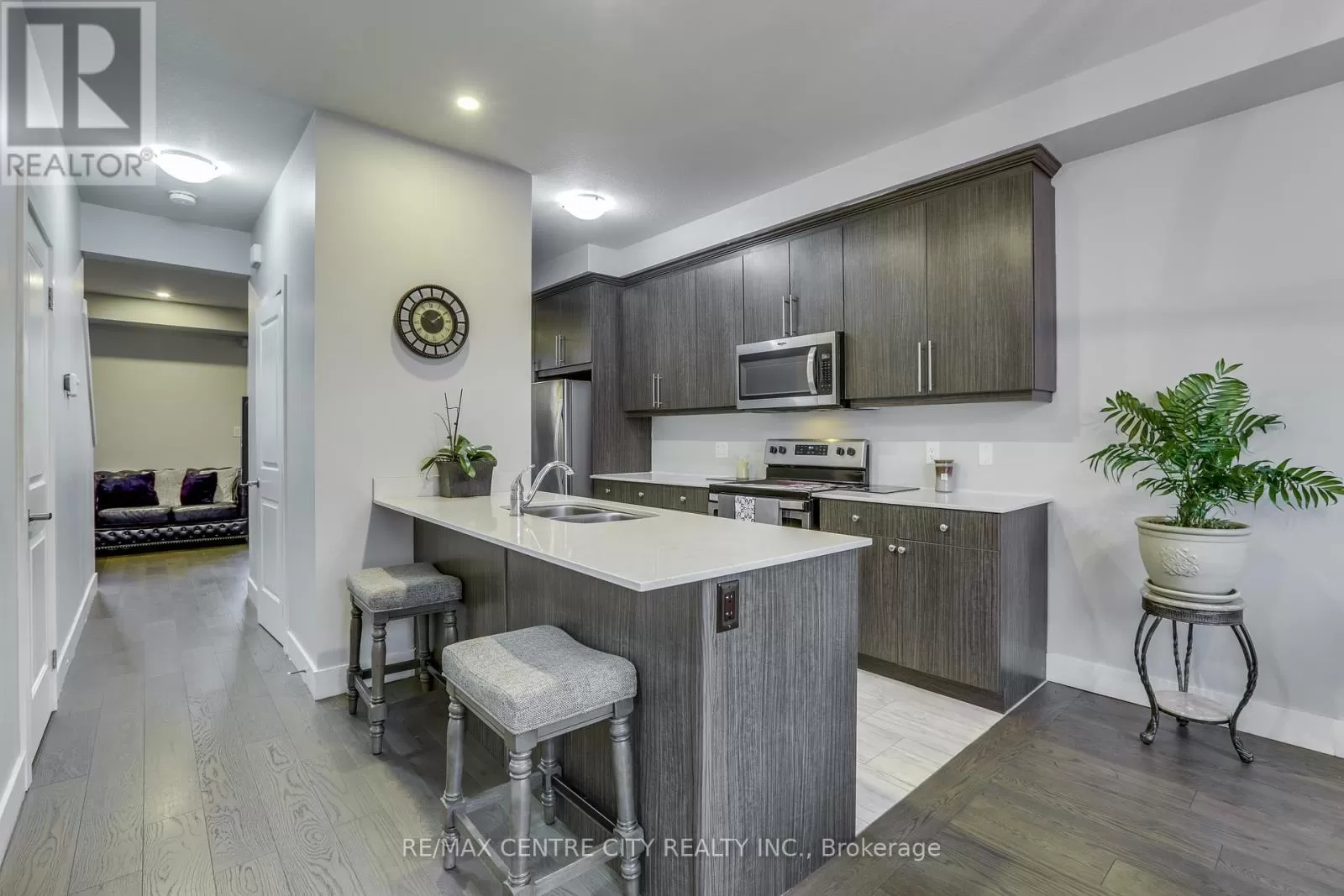 Cross Streets: MEADOWGATE BLVD & COMMISSIONERS RD. E. ** Directions: COMMISSIONERS TO MEADOWGATE. Welcome to this bright, modern, and impeccably maintained 3-storey townhome in VIBE, a sought-after Summerside community. Built in 2019, this 1,737 sq. ft. home blends contemporary style with practical living, perfect for families, professionals, or investors. Step into a sunlit foyer with tile flooring and direct access to the attached single-car garage, ideal for rainy or cold days. The ground level features a versatile fourth bedroom with its own 3-piece ensuite and sliding doors to a private deck, perfect as a guest retreat, office, or media room. The second floor with its soaring 9-ft ceilings and large windows fill the open-concept living, dining, and kitchen area with light. The kitchen boasts quartz counters, modern cabinetry with under-cabinet lighting, and stainless steel appliances, complemented by ample storage and prep space. The dining area with a picture window and the inviting living room opening to a private balcony make entertaining effortless. A 2-piece powder room completes this level. The top floor offers comfort and privacy with a spacious primary bedroom featuring an oversized closet and 3-piece ensuite. A convenient laundry closet with a stacked washer/dryer is also on this floor. Located minutes from Victoria Hospital, shopping, dining, White Oaks Mall, parks, and recreation, with easy access to Highways 401 and 402 and public transit. Affordable condo fees make this a low-maintenance, move-in ready home with freshly painted interiors. With modern finishes, bright living spaces, and an unbeatable location, this Summerside townhome is ideal as a family home, shared living, or turnkey investment. Schedule your private showing today! (id:27476)