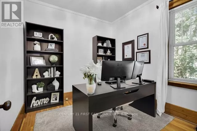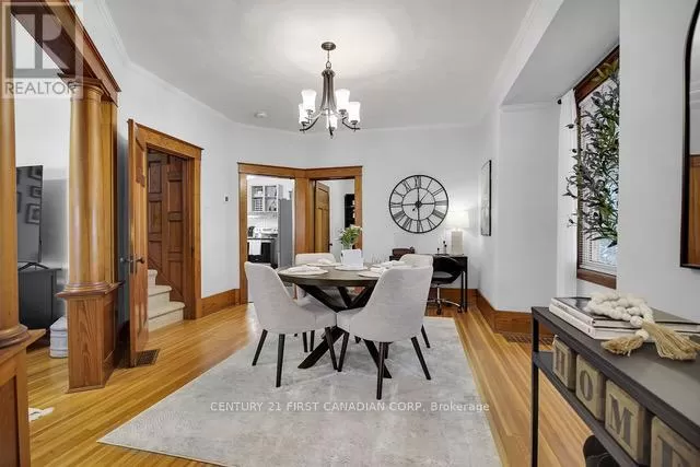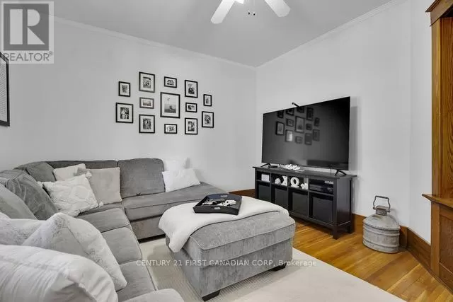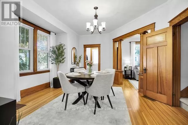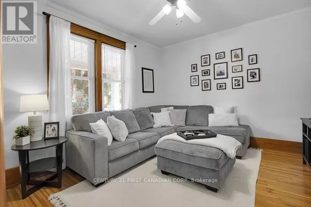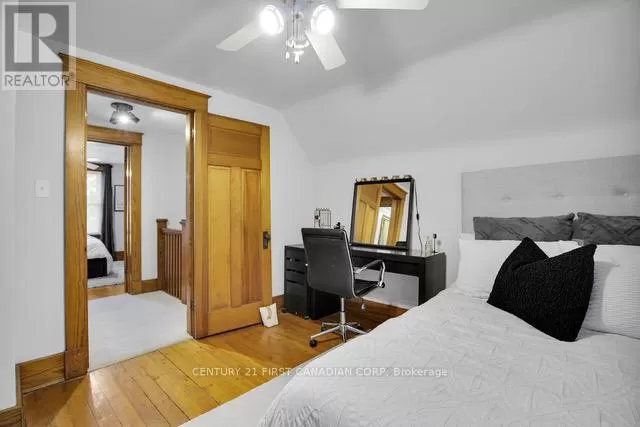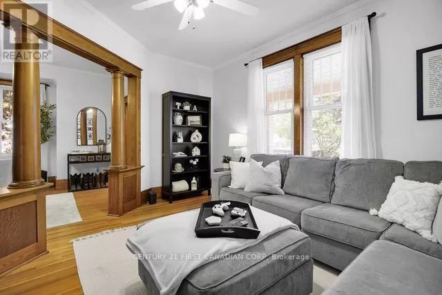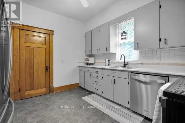 Cross Streets: Longwoods/Main St & Colonel Talbot. ** Directions: Located just North of Longwoods/Main St on the West side of Colonel Talbot. Discover this classic 1 1/2 storey home in the heart of Lambeth a perfect blend of comfort and charm. Located in a welcoming small-town community, you'll enjoy nearby amenities such as the Lambeth Arena, splash pad, trails, library, and Main Street which offers local shops and restaurants. Inside, the bright interior features soaring 9 ceilings, original hardwood floors, and rich wood trim that showcase the homes vintage craftsmanship. The main floor features a versatile bedroom, perfect for a home office or cozy den, along with a galley-style kitchen boasting modern appliances and generous workspace. A bright mudroom and convenient main-floor laundry add practical everyday functionality, while the living and dining areas flow seamlessly together, creating an open and inviting space for family gatherings and entertaining. Upstairs, two spacious bedrooms and a full bathroom create a relaxing retreat, while the unfinished lower level is a blank canvas - ready to become a comfortable rec room, home gym, or simply provide extra storage. Step outside into the mature backyard filled with trees and plenty of green space, complete with a detached workshop or garden shed (sold-as-is, where-is) which offers endless possibilities for hobbies and projects. Notable updates include: Roof (2020),Bathrooms (2021), New Appliances(2022) (id:27476)