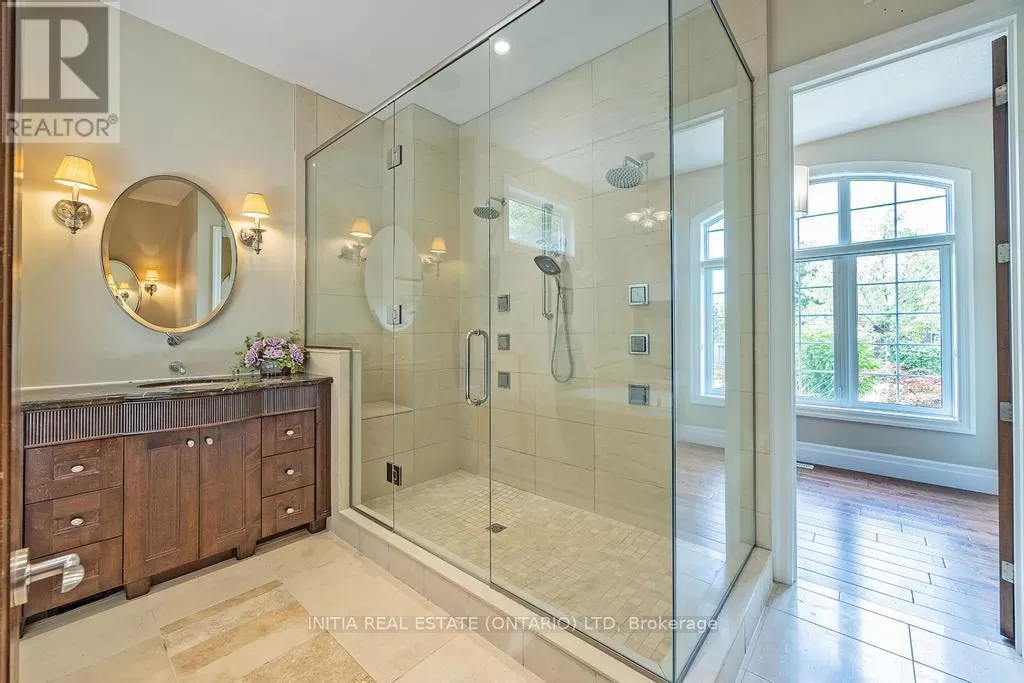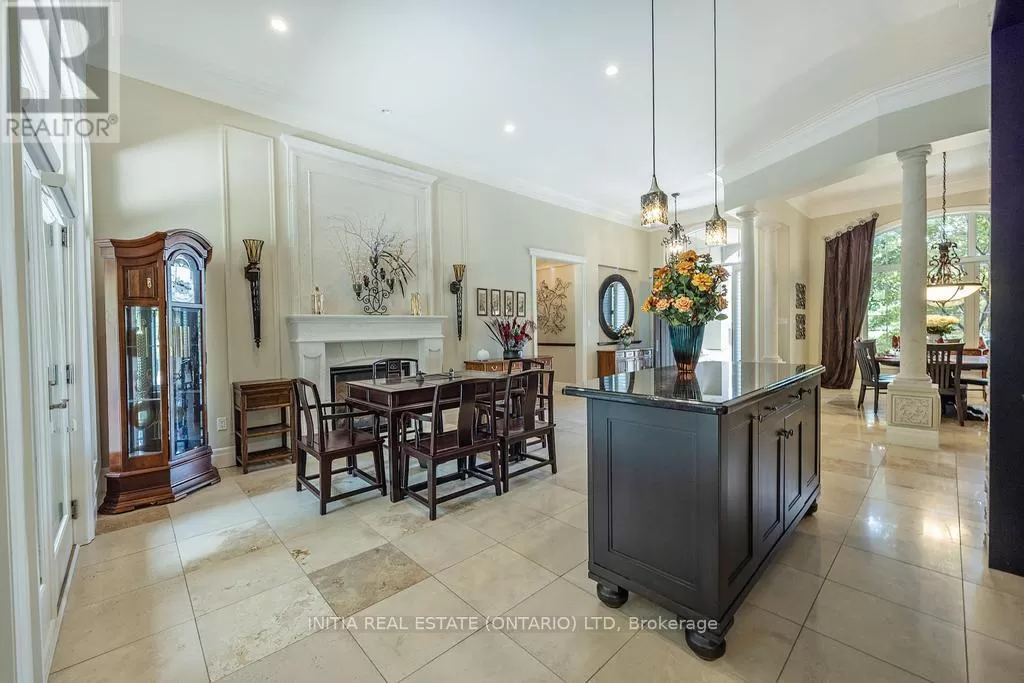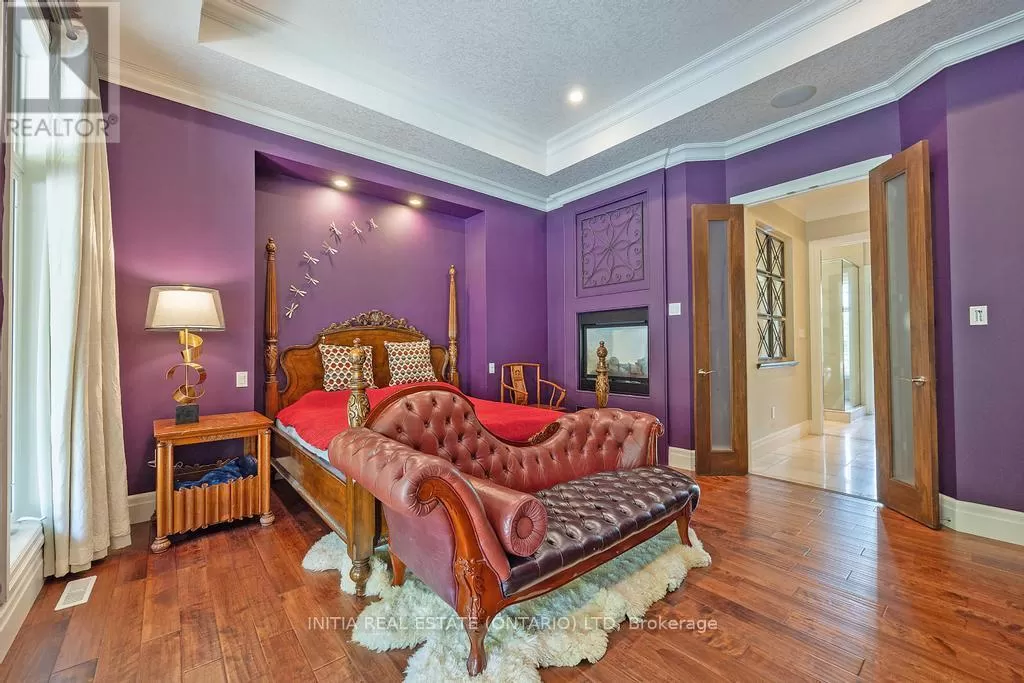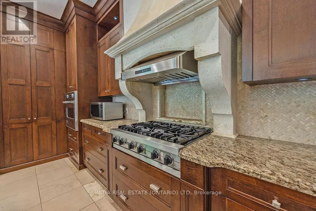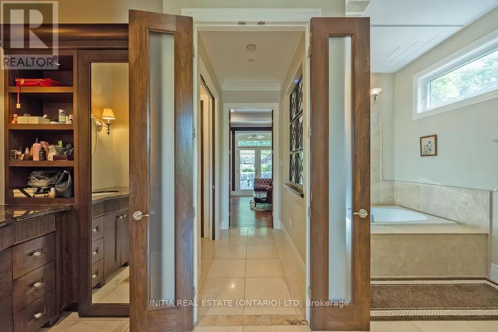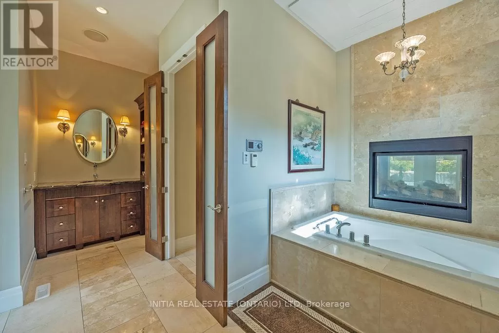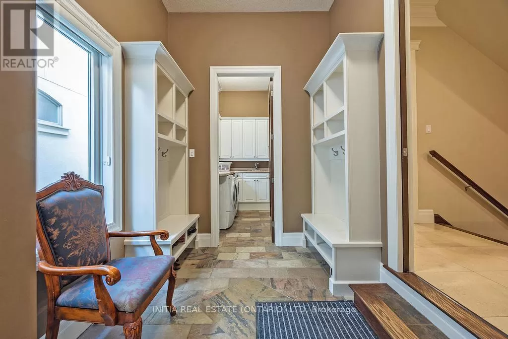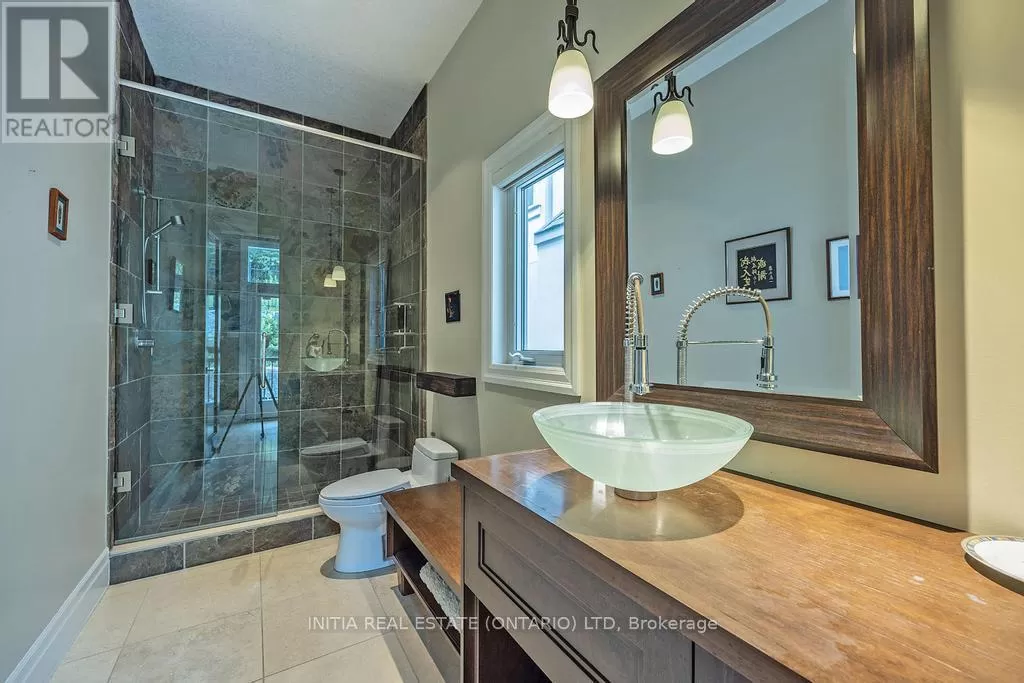 Cross Streets: Oxford & Commissioners. ** Directions: Oxford St to Kains Rd to Shore RdOxford St to Kains Rd to Shore Rd. Stunning luxury executive on Shore Road w/high-end finishes provides 3995sqf (above grade)open concept design of 2 family rooms on main & upstairs, 5 bedrooms,5 baths ,12' ceiling foyer , Martini Bar with one Lime Stone Fireplace(totally 4 fireplaces) ,great room offers hardwood flooring ,coffered ceiling & Herringbone inlay, direct access to covered hot tub from master ensuite on main floor with 2 programmable shower heads, private dressing room walk-in closet, walk-in shower, & separate toilet room; heated-floor kitchen with Butlers Pantry, maple cabinetry, stone range hood echoes Viking gas stove, wall oven, the granite countertops and sub zero fridge. Backing onto trees, the sod-free back yard has covered stamped concrete patio, heated saltwater in-ground pool, hot tub & lounge area & outdoor fireplace! (id:27476)