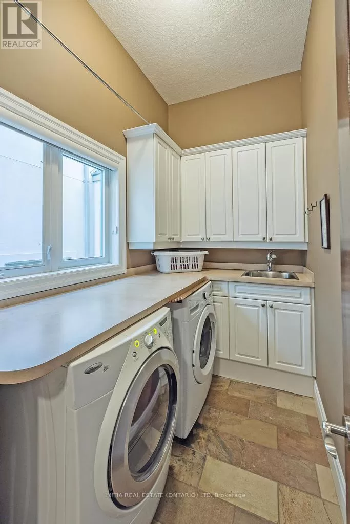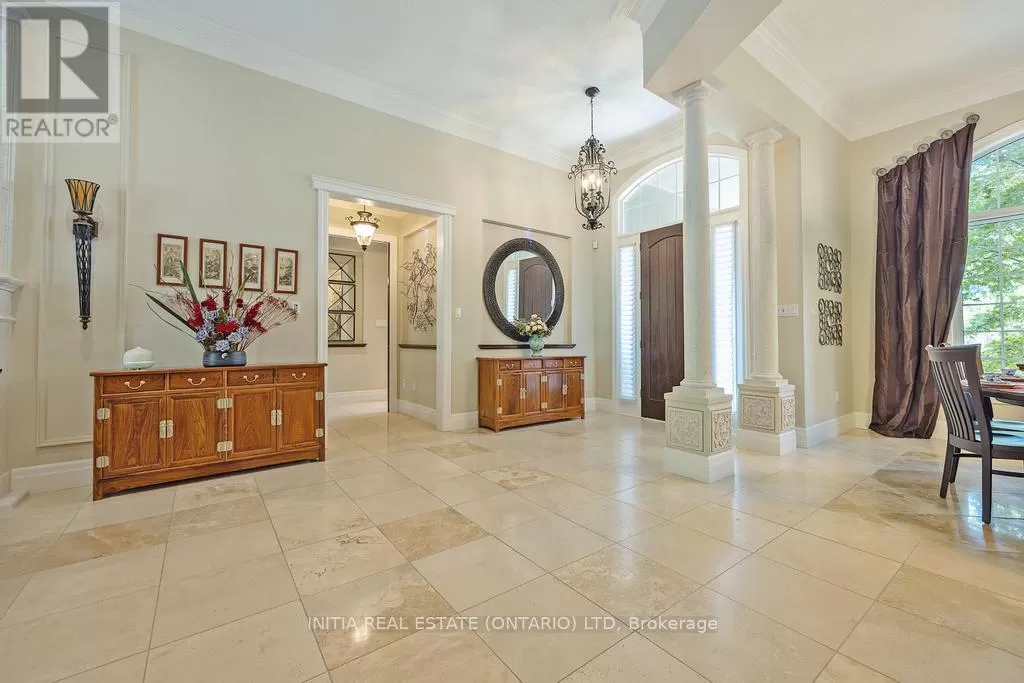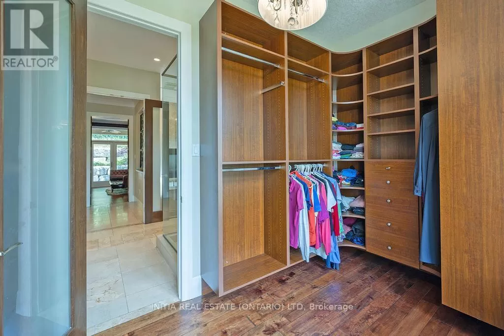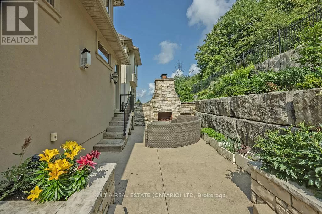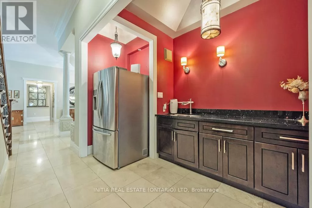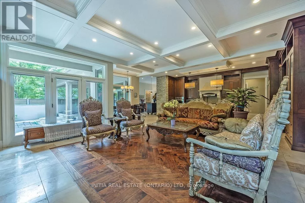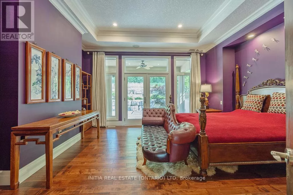 Cross Streets: Oxford & Commissioners. ** Directions: Oxford St to Kains Rd to Shore RdOxford St to Kains Rd to Shore Rd. Stunning luxury executive on Shore Road w/high-end finishes provides 3995sqf (above grade)open concept design of 2 family rooms on main & upstairs, 5 bedrooms,5 baths ,12' ceiling foyer , Martini Bar with one Lime Stone Fireplace(totally 4 fireplaces) ,great room offers hardwood flooring ,coffered ceiling & Herringbone inlay, direct access to covered hot tub from master ensuite on main floor with 2 programmable shower heads, private dressing room walk-in closet, walk-in shower, & separate toilet room; heated-floor kitchen with Butlers Pantry, maple cabinetry, stone range hood echoes Viking gas stove, wall oven, the granite countertops and sub zero fridge. Backing onto trees, the sod-free back yard has covered stamped concrete patio, heated saltwater in-ground pool, hot tub & lounge area & outdoor fireplace! (id:27476)