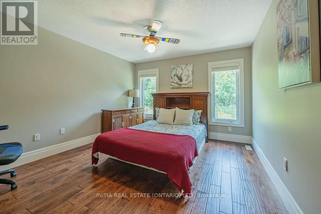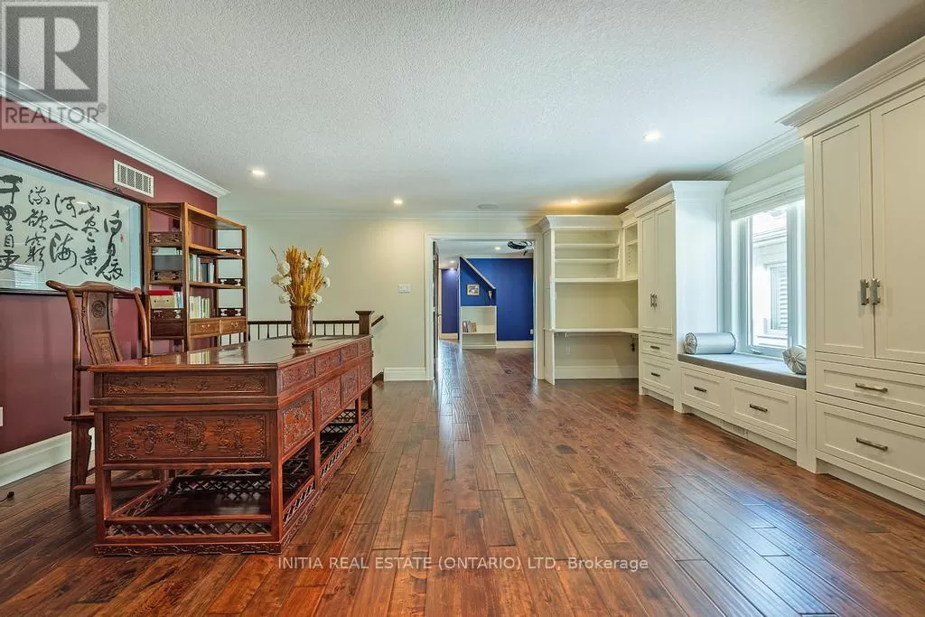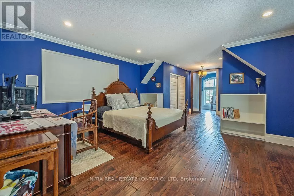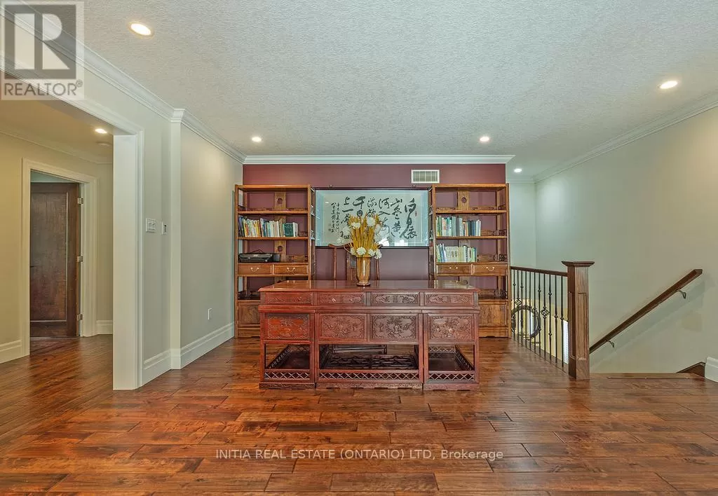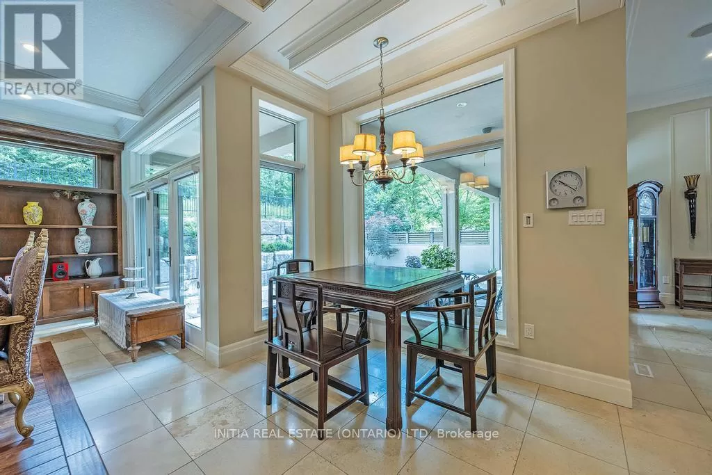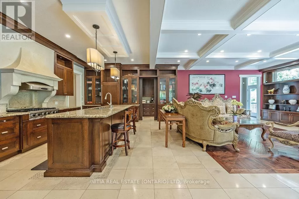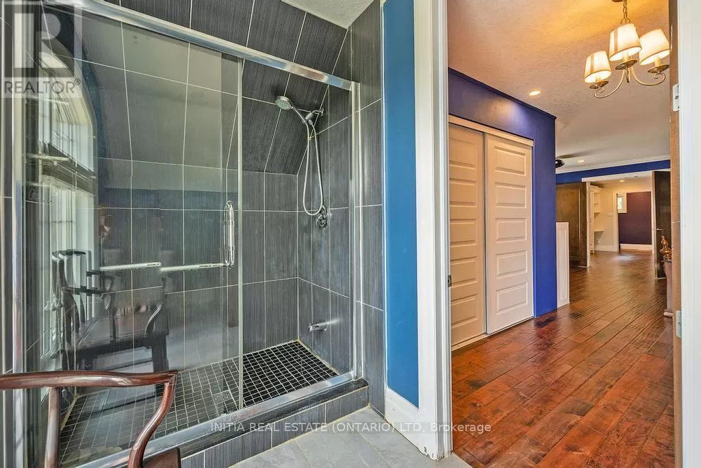 Cross Streets: Oxford & Commissioners. ** Directions: Oxford St to Kains Rd to Shore RdOxford St to Kains Rd to Shore Rd. Stunning luxury executive on Shore Road w/high-end finishes provides 3995sqf (above grade)open concept design of 2 family rooms on main & upstairs, 5 bedrooms,5 baths ,12' ceiling foyer , Martini Bar with one Lime Stone Fireplace(totally 4 fireplaces) ,great room offers hardwood flooring ,coffered ceiling & Herringbone inlay, direct access to covered hot tub from master ensuite on main floor with 2 programmable shower heads, private dressing room walk-in closet, walk-in shower, & separate toilet room; heated-floor kitchen with Butlers Pantry, maple cabinetry, stone range hood echoes Viking gas stove, wall oven, the granite countertops and sub zero fridge. Backing onto trees, the sod-free back yard has covered stamped concrete patio, heated saltwater in-ground pool, hot tub & lounge area & outdoor fireplace! (id:27476)