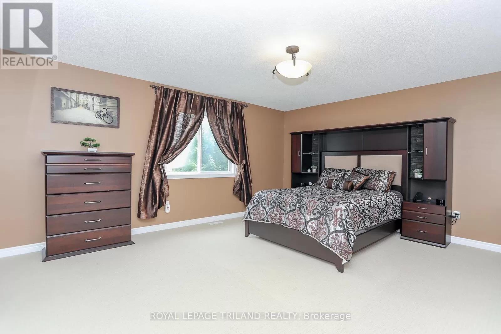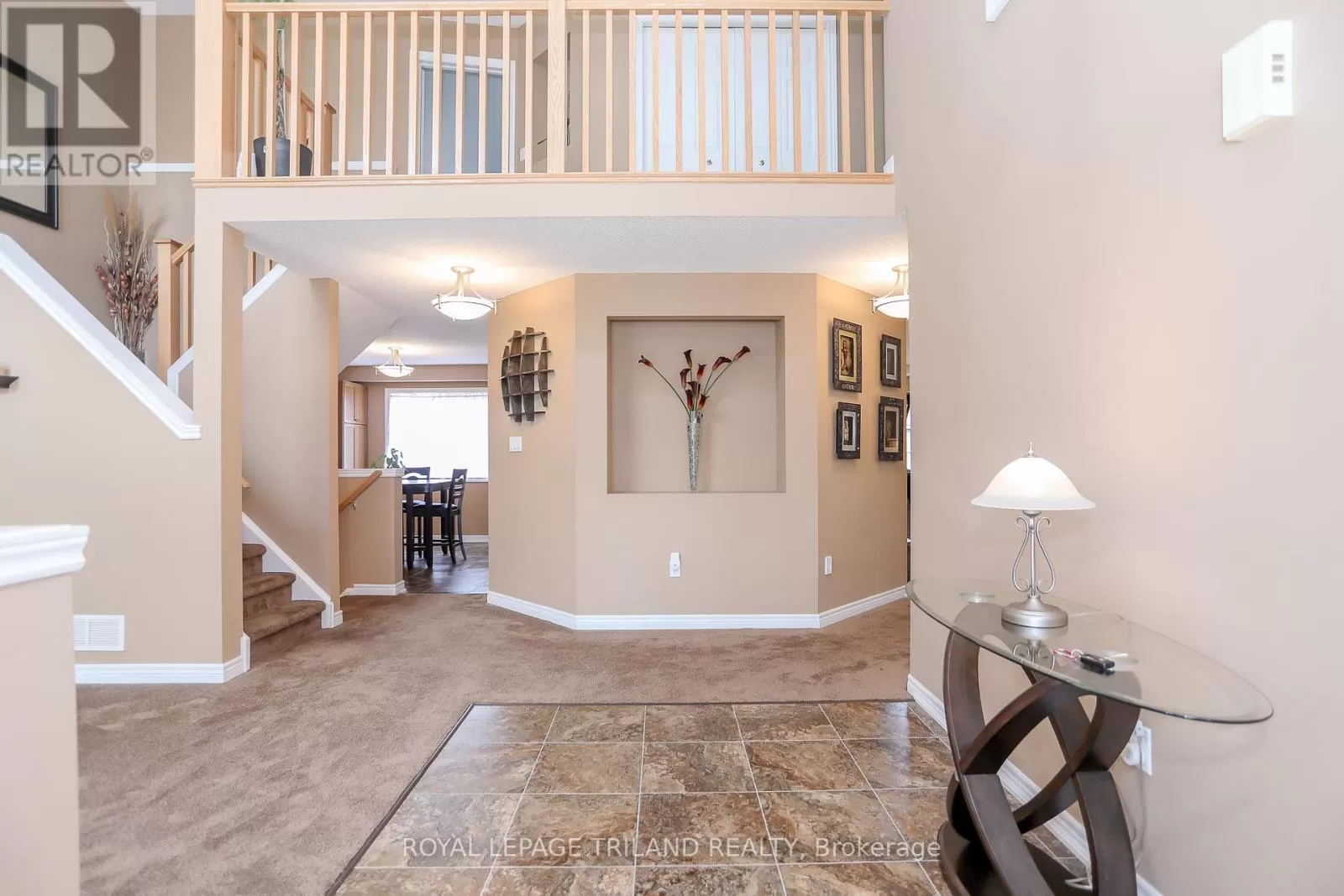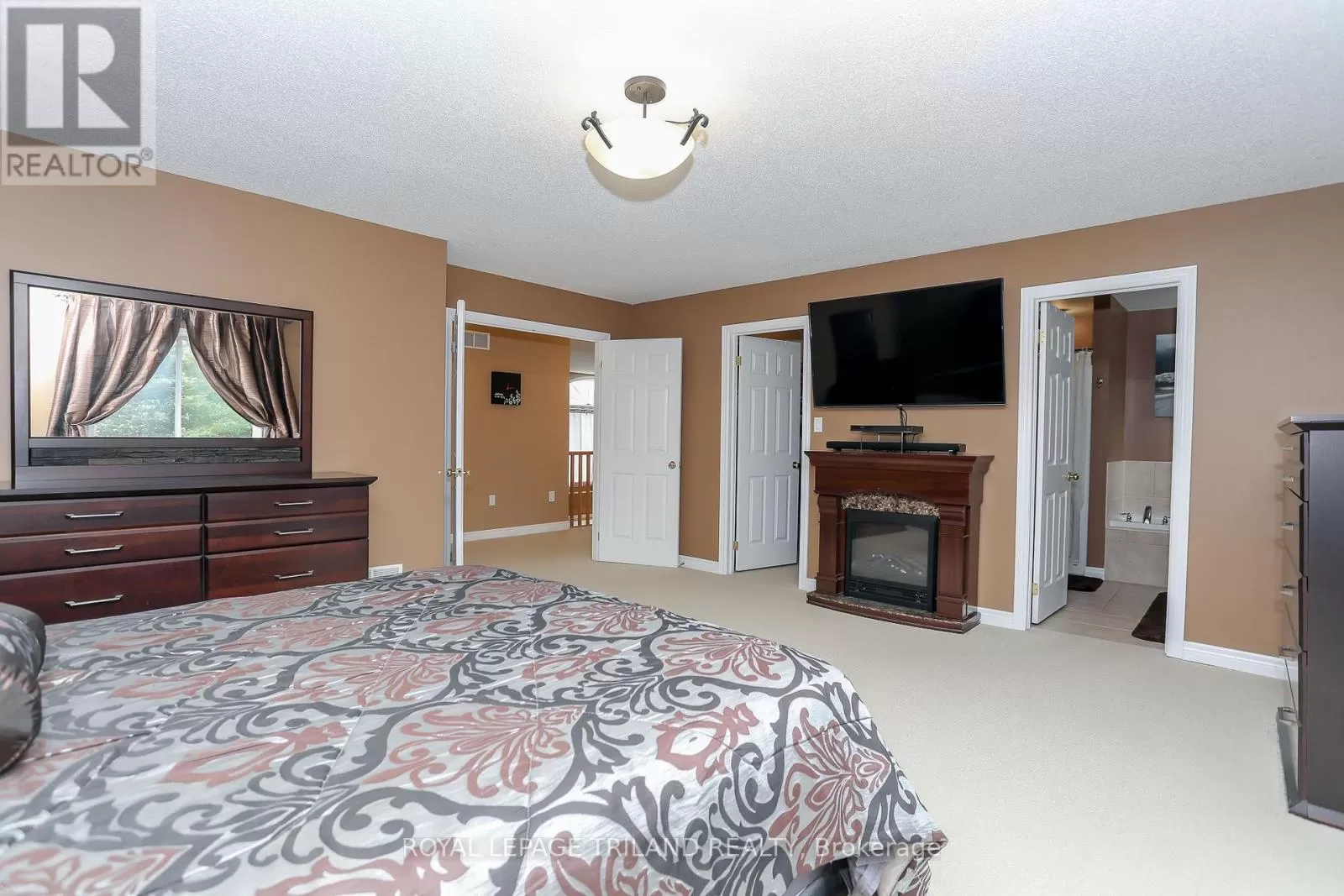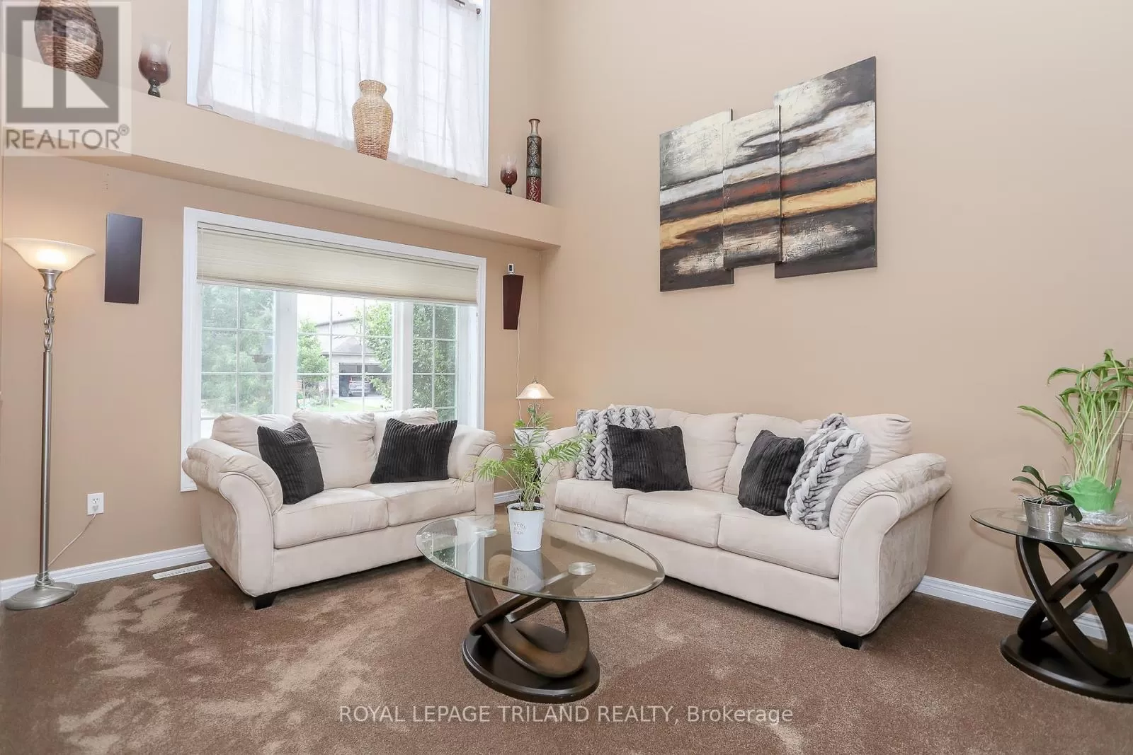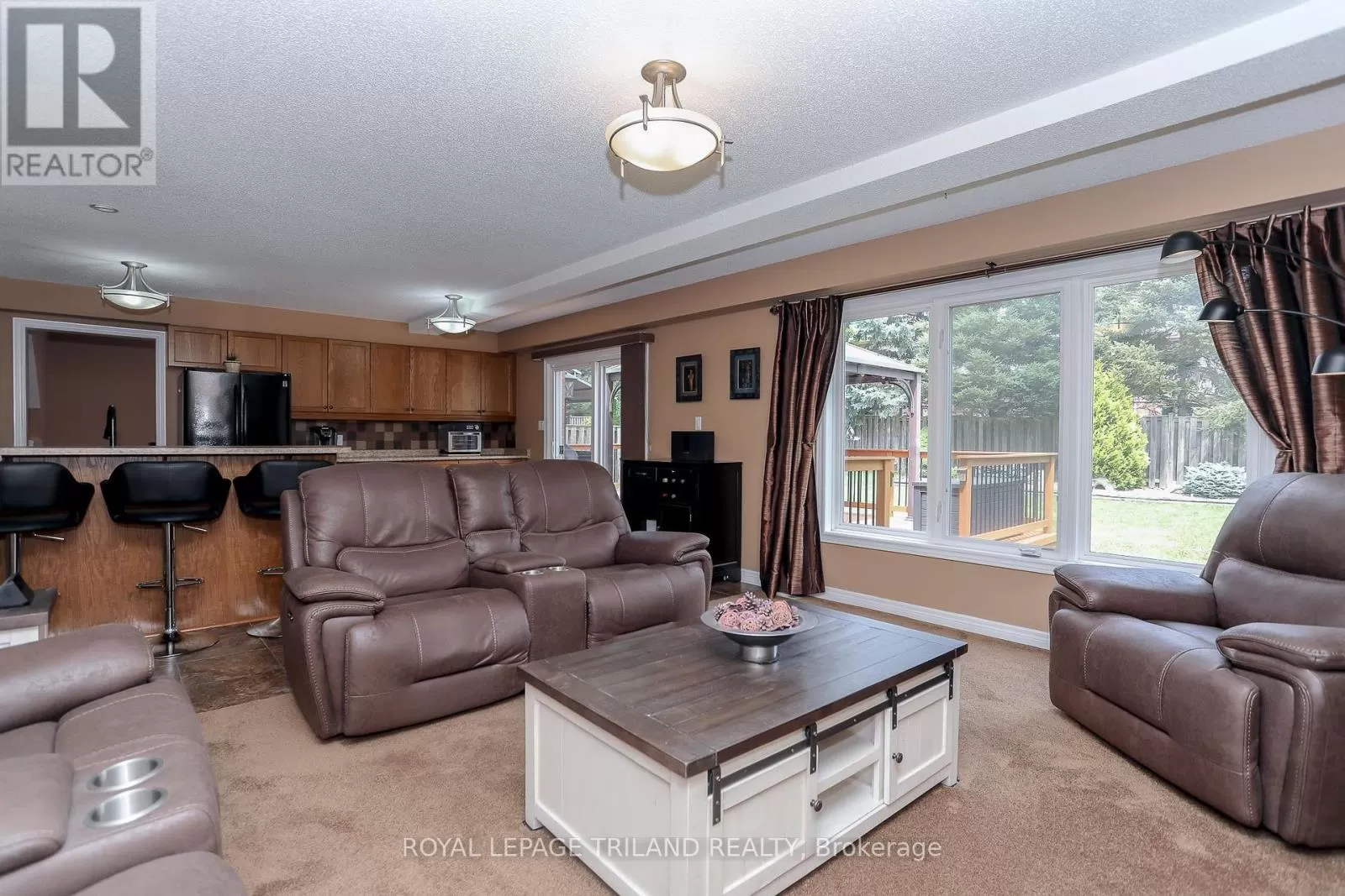 Cross Streets: Balsam Gate. ** Directions: West on Optimist, south on Balsam Gate and west on Birchwood, house in on your right. Welcome to this impeccably maintained and spacious Byron residence, ideally situated just steps from Byron Sports Park and a short drive to Boler Mountain. The main floor offers a formal living room with a striking cathedral ceiling and a separate dining room, perfect for hosting family gatherings or formal dinners. At the heart of the home, the open-concept great room features a generous kitchen, dining area, and a family room with a gas fireplace, creating a seamless space for both everyday living and entertaining. A convenient powder room, main floor laundry, and inside access to a triple-car garage with a professionally installed EV charger add to the functionality of this level. Upstairs, a grand open staircase leads to four spacious bedrooms, including a well-appointed primary suite with a walk-in closet and private ensuite. Window upgrades are currently underway, with both front second-floor windows and the stationary panes in the rear bedrooms being replaced. The fully finished lower level offers exceptional versatility, featuring a large recreation room, two additional bedrooms or home offices, a full bathroom, and a cold storage room. Outdoors, the beautifully landscaped, pool-sized backyard is an inviting retreat, complete with a deck (installed in 2020), gazebo, full fencing, and a natural gas BBQ hookup. Additional highlights include: All appliances, central vac, gazebo, and BBQ cover included. Shingles replaced in 2020 with a 50-year transferable warranty. Surround sound speakers in the basement (negotiable). With its thoughtful layout, numerous updates, and prime location, this property is an exceptional opportunity for discerning buyers. (id:27476)