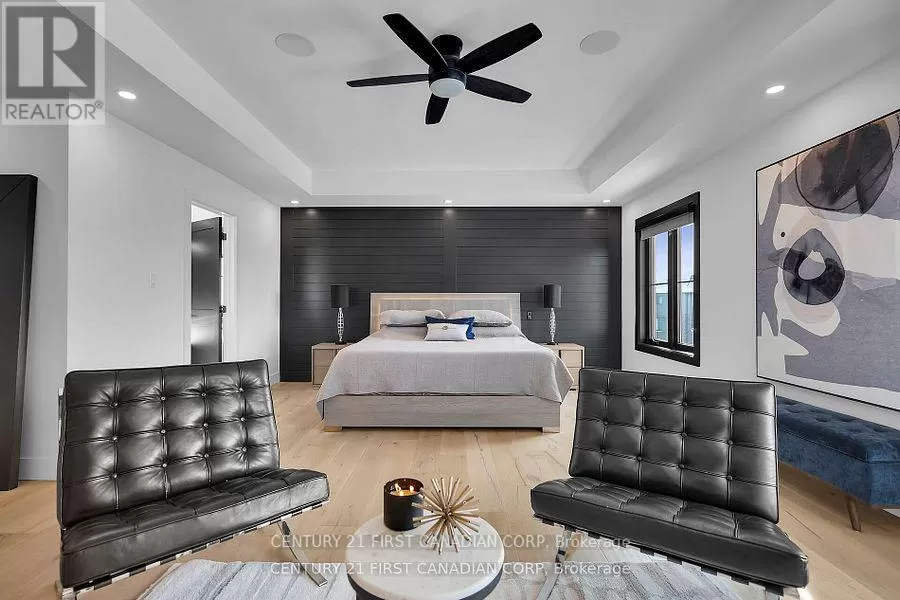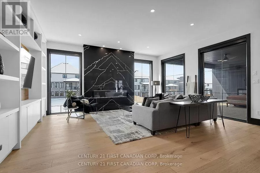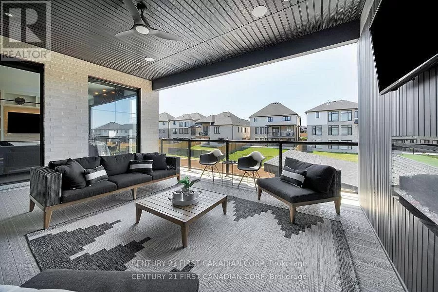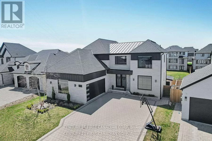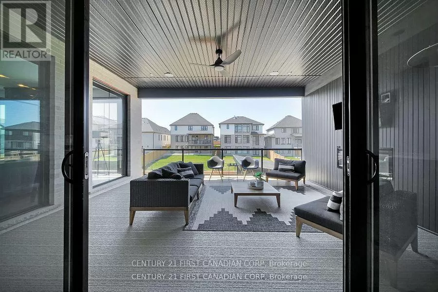 Cross Streets: Upper West Ave/Boardwalk Way. ** Directions: Oxford St W, Left Riverbend Rd, Left Upper West Ave. Welcome to 1741 Upper West Ave, nestled in the highly sought-after West London neighborhood of The Avenue in Warbler Woods. This custom-built dream home spans over 5,000 sq.ft of luxurious living space, blending sophistication, comfort, and modern design at every turn. The impressive exterior, with a grand driveway offering parking for up to 6 cars, sets the tone for what lies within. Step inside to discover a stunning grand foyer featuring a beautiful tile inlay, elegant hardwood floors, and soaring 10-ft ceilings on the main level. A private office on the main floor offers the perfect space for todays work-from-home professional. The chef-inspired kitchen is a true highlight, boasting a stylish butlers pantry and flowing seamlessly into the open-concept family room and dining area, which is accented by a striking feature wall. A glamorous bar area adds a touch of luxury, making this the ultimate space for entertaining. Upstairs, you'll find 4 spacious bedrooms, 2 full bathrooms, and a conveniently located laundry room. The master retreat is a true sanctuary, complete with a dream walk-in closet and a spa-inspired ensuite that promises relaxation and luxury. The walk-out lower level continues to impress, offering a cozy theatre room, a gym (easily converted to a 5th bedroom), a 3-piece bathroom, and a family room plus a bar/kitchenette. This level opens directly to your private backyard oasis, featuring two covered patios, a built-in BBQ, a modern cabana, an in-ground saltwater pool, hot tub, and beautifully landscaped grounds offering total privacy. This exceptional property is a must-see. Schedule your private showing today to experience the unparalleled luxury and meticulous craftsmanship this home has to offer! **EXTRAS** Too many extras to list, please refer to documents. (id:27476)