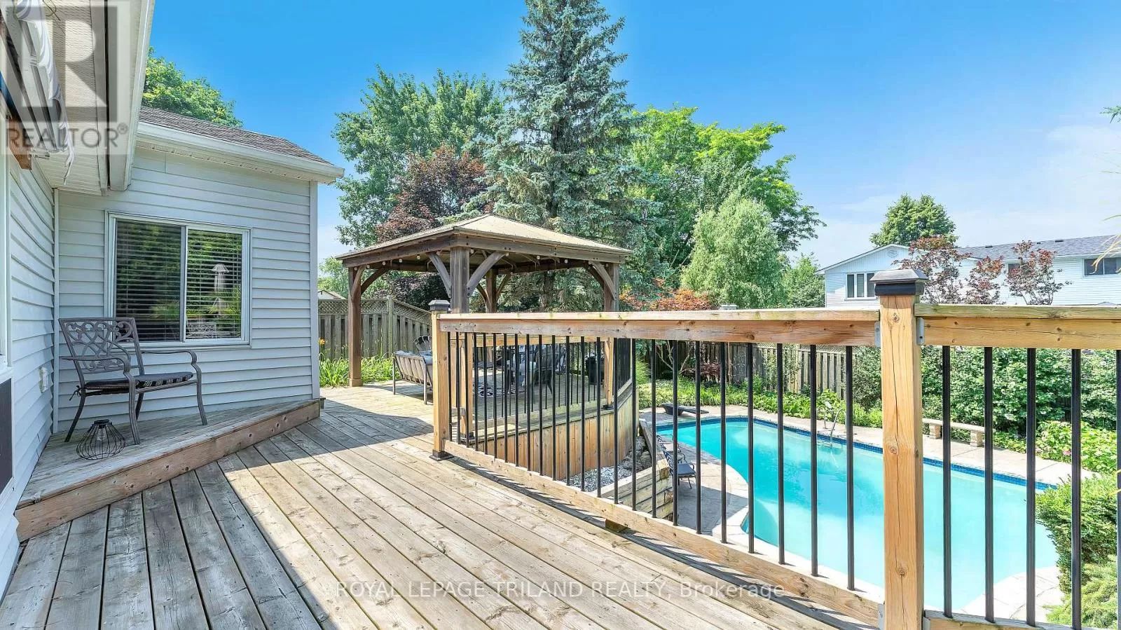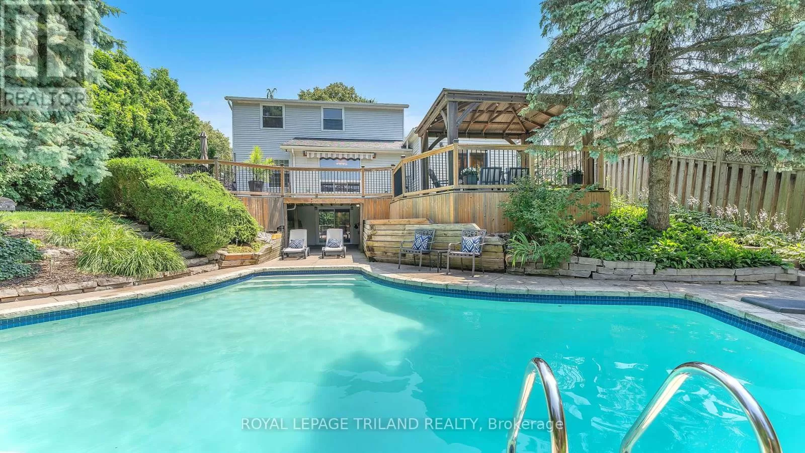 Cross Streets: Wonderland Road. ** Directions: Turn onto Brixham Crescent from Farnham Crescent, off Farnham Road. Presenting 151 Brixham - your new Home Sweet Home! This impressively improved and expanded 4-bedroom, 3.5 bathroom home offers 2,606 sq ft of above-grade living space plus a fully finished 1,172 ft walk-out lower level. Nestled on a super quiet tree-lined crescent in London's desirable southwest Westmount neighbourhood, this awesome home features a massive addition with an extended vaulted living room and an incredible kitchen complete with a pantry, granite counters, valence lighting, and glass mosaic backsplash. The backyard paradise is absolutely amazing - featuring a refinished gunite concrete pool with a new sand filter, pool heater, bullnose coping, Whiarton stone, and textured concrete patio surrounding - accessed from the amazing deck or the gorgeous walk-out. With extensive landscaping, a massive multi-tiered inlay sundeck, gazebo, and landscape lighting, this fully fenced oasis creates incredible ambiance for evening swims. The second level has an updated full main bath with stone and marble tile plus a great primary ensuite. The primary bedroom includes a walk-in closet, with one bedroom converted to a dressing room featuring built-in closets and built-in vanity. This home has all the modern conveniences, including an irrigation system, central vacuum, main floor laundry, and recent updates like architectural shingles, upgraded insulation, replacement windows and doors, and a 2016 furnace/AC. It also features central vac, a built-in irrigation system and an InSinkErator for garbage disposal. But wait! There's more! This walk-out lower level gives you even more living space with full bath, built-in cabinets, pot lights, and fireplace - perfect for entertaining or just hanging out. This fantastic family-oriented location offers easy access to parks, schools, recreation centres, shopping, and transportation with quick access in and out of town. Come see this exceptional Home Sweet Home - this one won't last long! (id:27476)