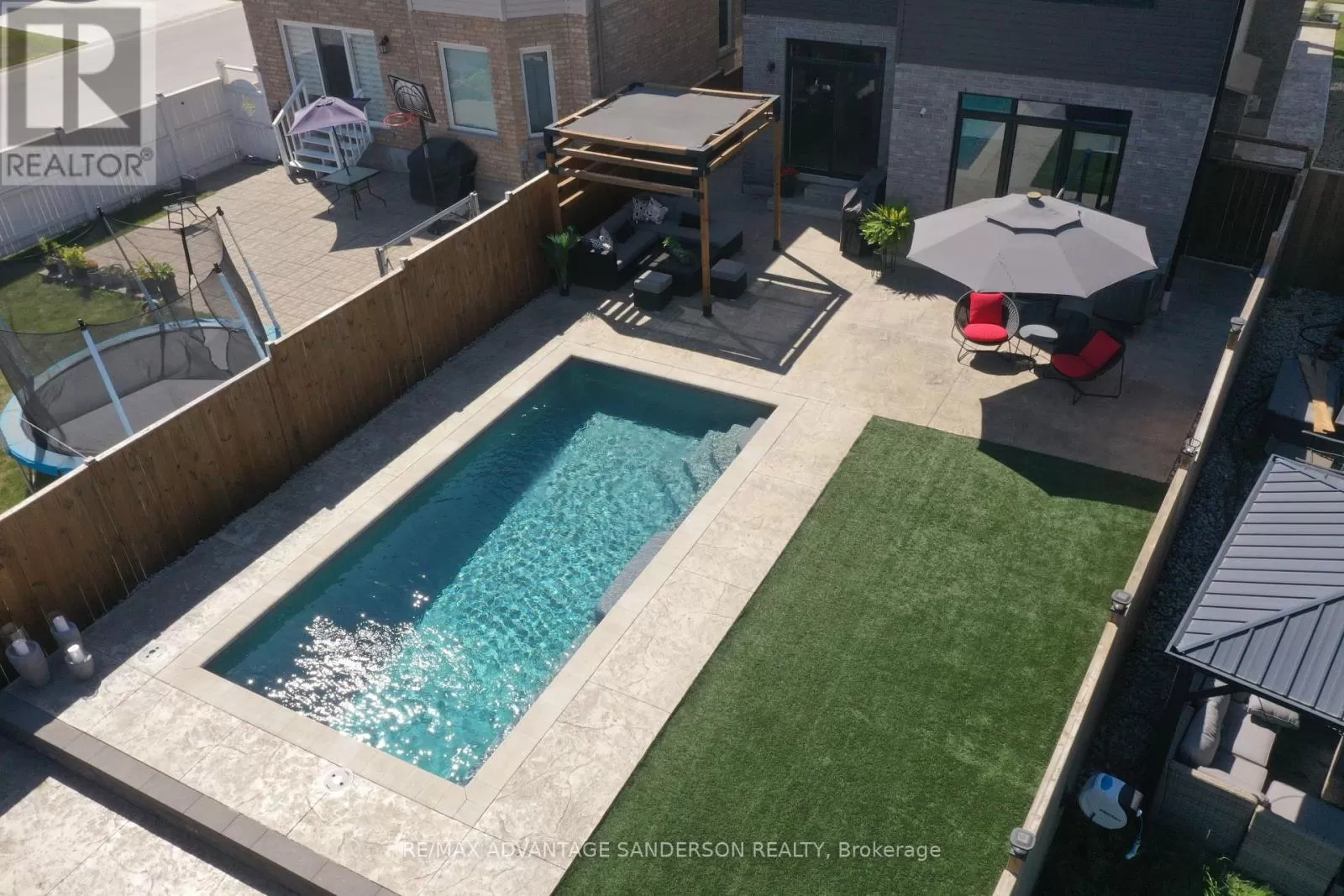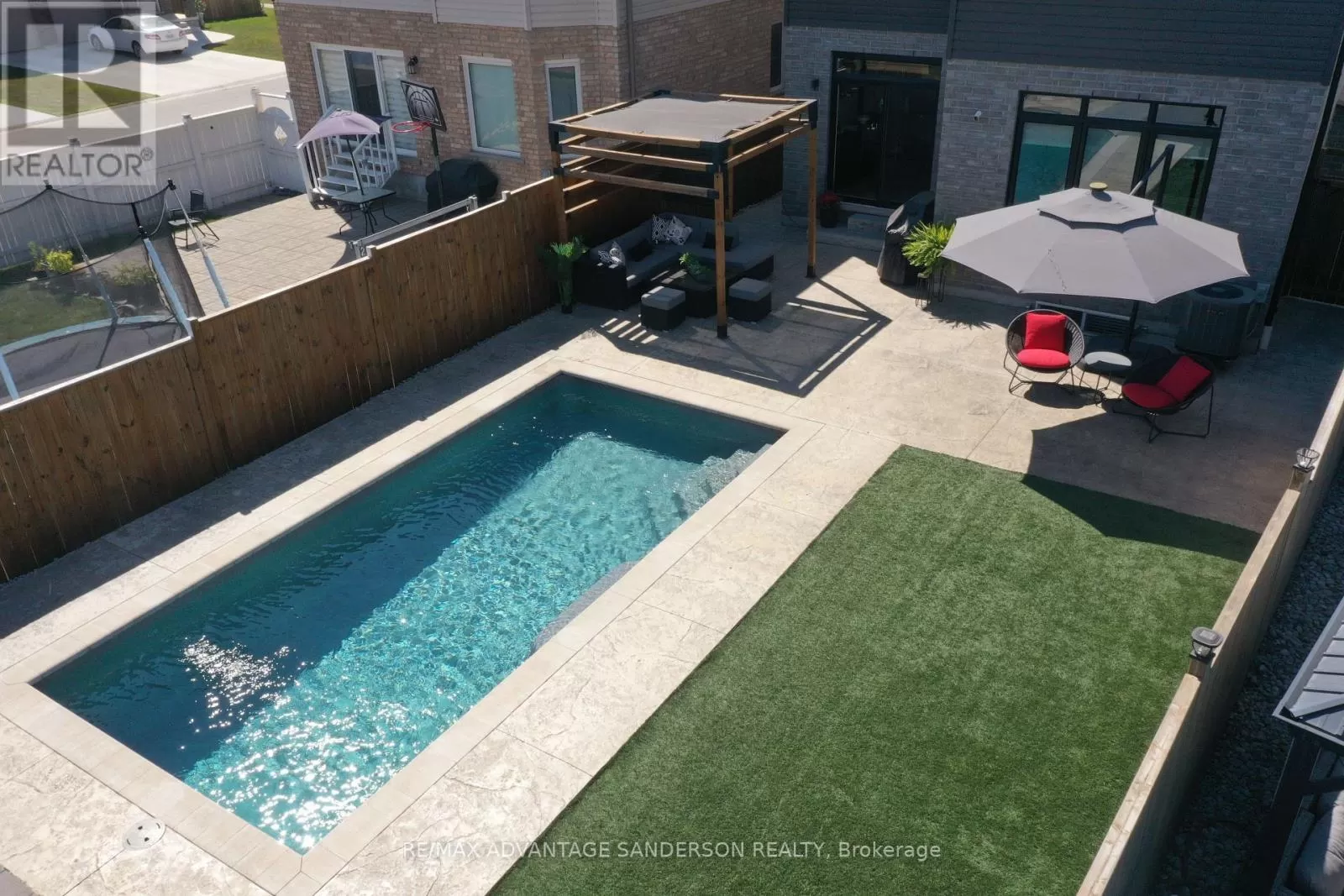 Cross Streets: Wharncliffe Road. ** Directions: Wharncliffe Road South to Legendary to Paulpeel Ave. Exceptional 3+1 bedroom, 3.5 bathroom family home set on a premium extra-deep lot. Enjoy your own backyard retreat featuring a low-maintenance 12 x 24 heated saltwater fiberglass pool, stamped concrete patio, and charming pergola. The open-concept main floor boasts a gourmet kitchen with granite island overlooking the family room with cozy gas fireplace. Upstairs, you'll find generous bedrooms each with walk-in closets including a spacious primary suite with a stunning ensuite. The fully finished lower level offers an additional bedroom, bathroom, and family room with an electric fireplace. Thoughtful upgrades and custom details are found throughout, including a double garage with built-in shelving, cabinets, and a foldable workbench and even a level 2 EV charger! A truly immaculate home offering outstanding value for your family! (id:27476)