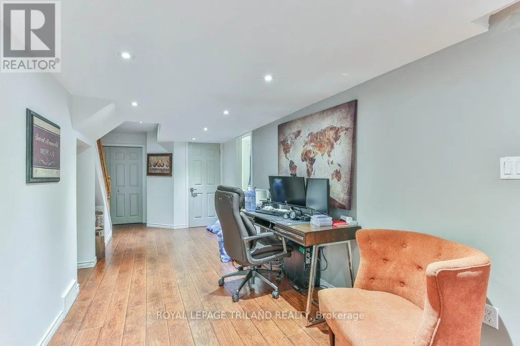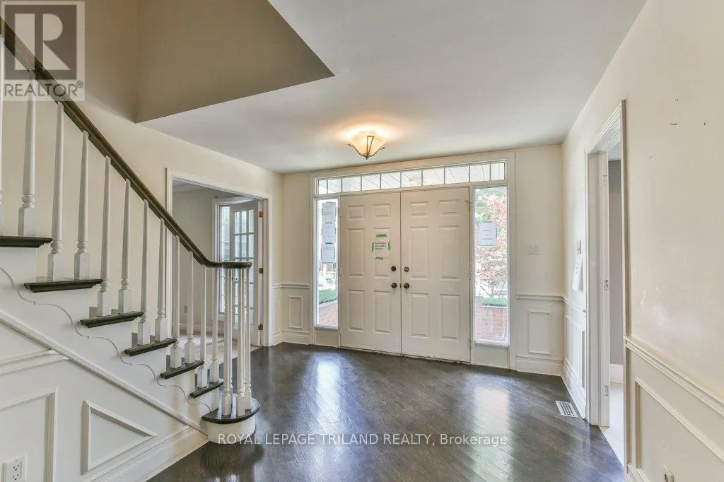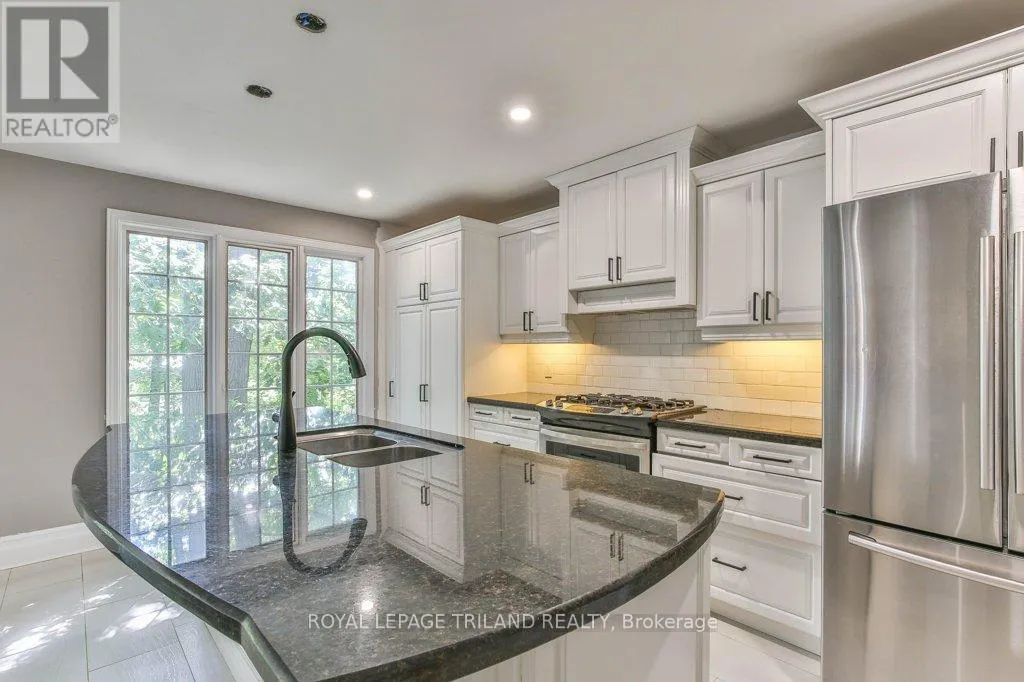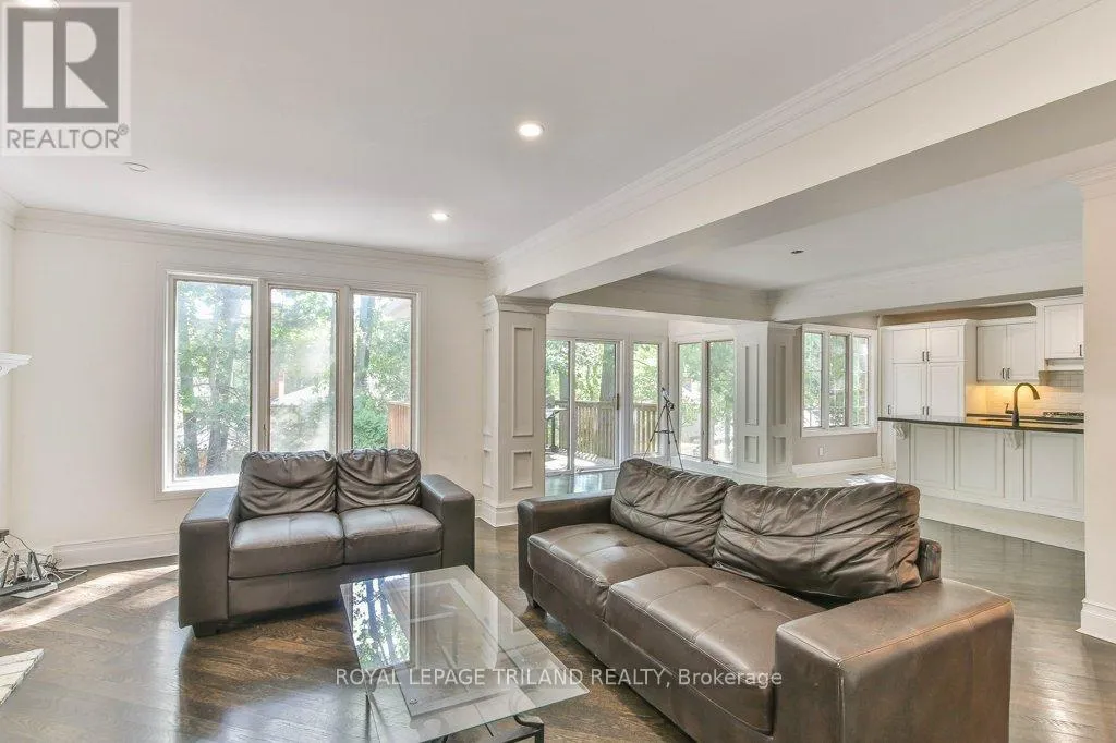 Cross Streets: BYRON BASELINE RD / TIMBER DRIVE. ** Directions: BYRON BASELINE RD TO TIMBER DRIVE. Welcome to this stately Eadie & Willcockbuilt home, set against a stunning backdrop of mature trees. Move-in ready, this residence blends timeless design with modern updates throughout.Step inside to gleaming hardwood floors that flow from the spacious foyer into the bright, open-concept great room. The Cardinal Kitchen renovation features granite countertops, ample cabinetry, and thoughtful designtruly a dream kitchen for any cook. The formal living/dining room offers a new rectangular fireplace, creating a warm and inviting space for gatherings. A cozy sitting area overlooking the backyard is the perfect spot for morning coffee or an evening read. Upstairs, the primary suite impresses with a charming library nook, a double vanity, and a relaxing corner tub.The full walkout lower level is currently being used as a separate suite (tenant-occupied) but can easily transition into a versatile family entertaining space.Outside, enjoy the beauty of nature from your multi-level deck, complete with two distinct entertaining areas ideal for hosting or simply soaking in the peaceful views. (id:27476)