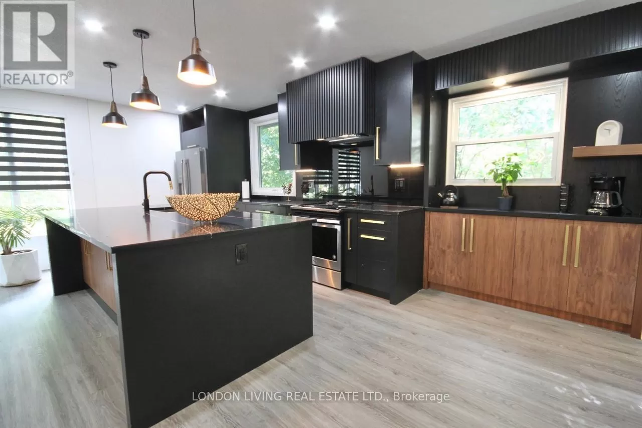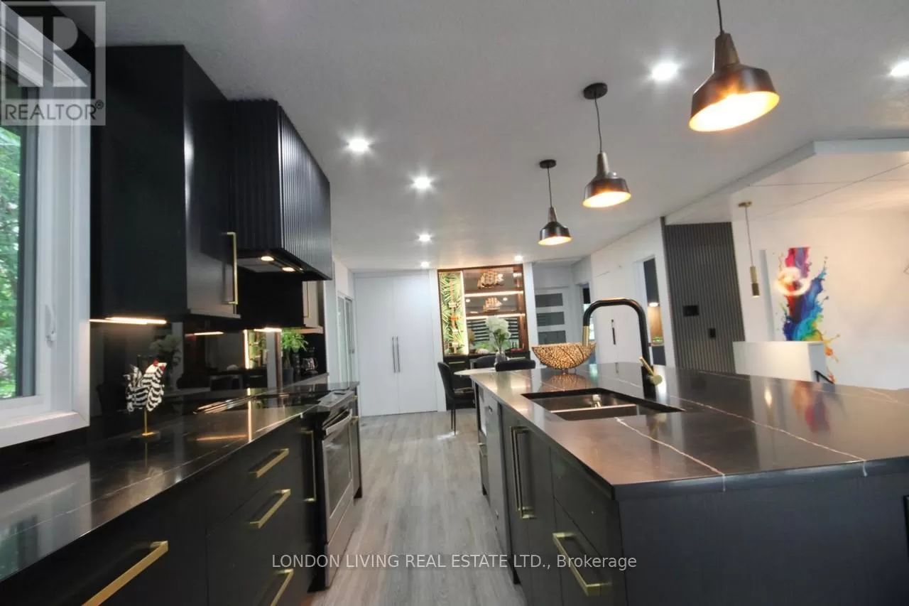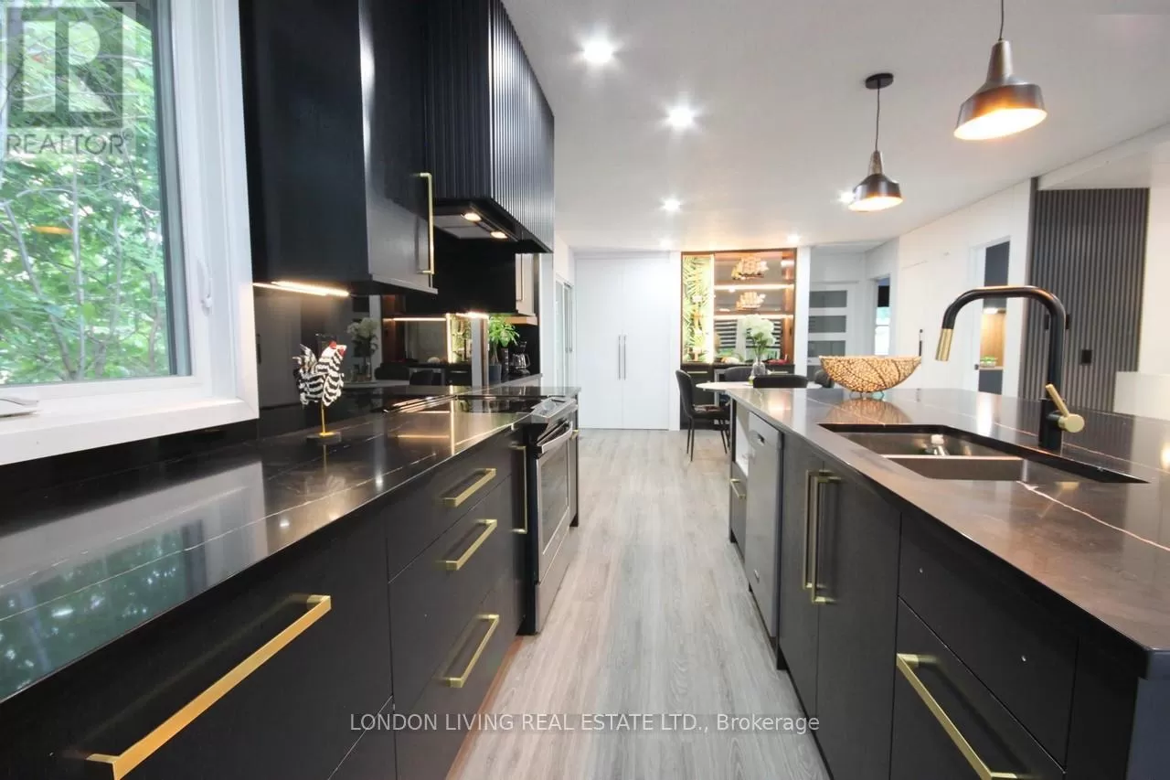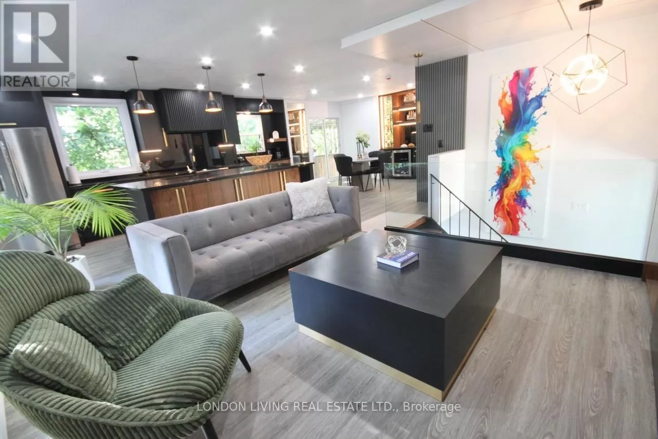 Cross Streets: WONDERLAND/VISCOUNT. ** Directions: SOUTH OF WONDERLAND ROAD, LEFT ON VISCOUNT RD, PROPERTY LOCATED ON NORTH SIDE OF VISCOUNT. A Home That Redefines Modern Living & Timeless Elegance. This remarkable generational home has been thoughtfully renovated to blend modern design with timeless charm. MAIN Level: An open-concept masterpiece featuring 3 spacious bedrooms, a custom-built modern kitchen s stylish coffee station and chic bar area. Every detail has been carefully crafted with built-ins and finishes that exude elegance and functionality. LOWER Level: Discover a bright master retreat where classic character meets contemporary comfort. BASEMENT Suite: A private one-bedroom unit with its own entrance is complete with a practical yet stylish kitchen, ideal for extended family or guests. Commercial Space: A stylish, self-contained office perfect for professionals seeking the convenience of working from home without compromising on style. This is more than a home - its a lifestyle retreat offering elegance, versatility, and a touch of luxury. (id:27476)