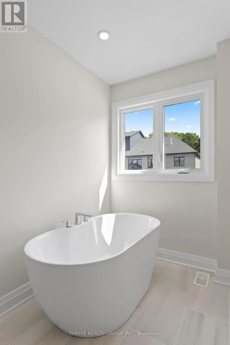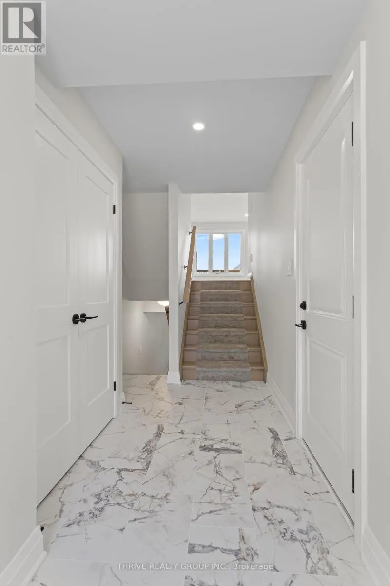 Cross Streets: Kains and Oxfords St. ** Directions: Off Kains or West Del Bourn. Welcome to Rembrandt Homes' newest community in Southwest London Upper West by Rembrandt Homes. The popular 3-bedroom, 2.5-bathroom floor plan, "The Westerdam," has been thoughtfully redesigned with modern updates and floor plan improvements you'll love. Boasting 1,747 sq ft of finished living space, this home features a rare walk-out basement and two spacious decks, perfect for outdoor entertaining and relaxing. Finished in High Quality finishes that includes quartz countertops in the kitchen, stylish ceramic tile, a custom-designed kitchen, and stunning brushed oak hardwood floors throughout. The primary bedroom offers a walk-in closet and a luxurious five-piece ensuite with a free-standing soaking tub, double sinks, and a tiled glass shower and a convenient upper-level laundry closet. Enjoy exclusive parking with a single attached garage with inside entry, along with additional space for two vehicles. Built with Energy Star standards, the home features triple-glazed windows for added efficiency. Located just minutes from scenic walking trails at Kains Woods, and a short drive to major shopping centers, golf courses, and quick access to 401/402 highways, Upper West presents the perfect blend of comfort and convenience. Low condo fees cover shingles, windows, doors, decks, driveway ground, and exterior maintenance, making this an ideal low-maintenance, lock-and-leave lifestyle. (Virtually staged photos included in the gallery). (id:27476)