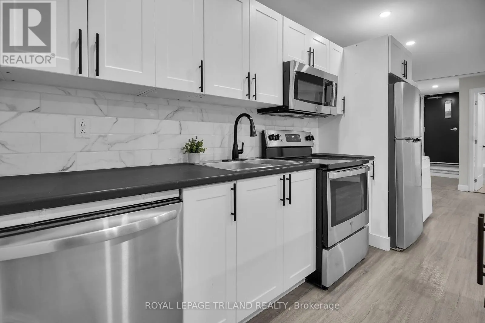 Cross Streets: Belgrave Avenue. ** Directions: Between Ridout Street South and Belgrave Avenue. Situated in the heart of charming Wortley Village, this beautiful unit offers a fantastic opportunity to live in one of London's most desirable neighbourhoods. The apartment features two spacious bedrooms, a four-piece bathroom, and a bright open-concept layout that seamlessly blends modern comfort with timeless character. The kitchen comes equipped with sleek stainless steel appliances, perfect for everyday living and entertaining. Additional features include in-unit laundry, air conditioning, and one parking space available for $45.00 per month. Tenants are responsible for electricity, while water and heating are included in the rent. Ideally located in a vibrant, walkable community, you'll be just steps from shops, cafes, parks, trails, and public transit, with quick access to Victoria Hospital (7 minutes), Western University (9 minutes), and Highway 401 (10 minutes). (id:27476)