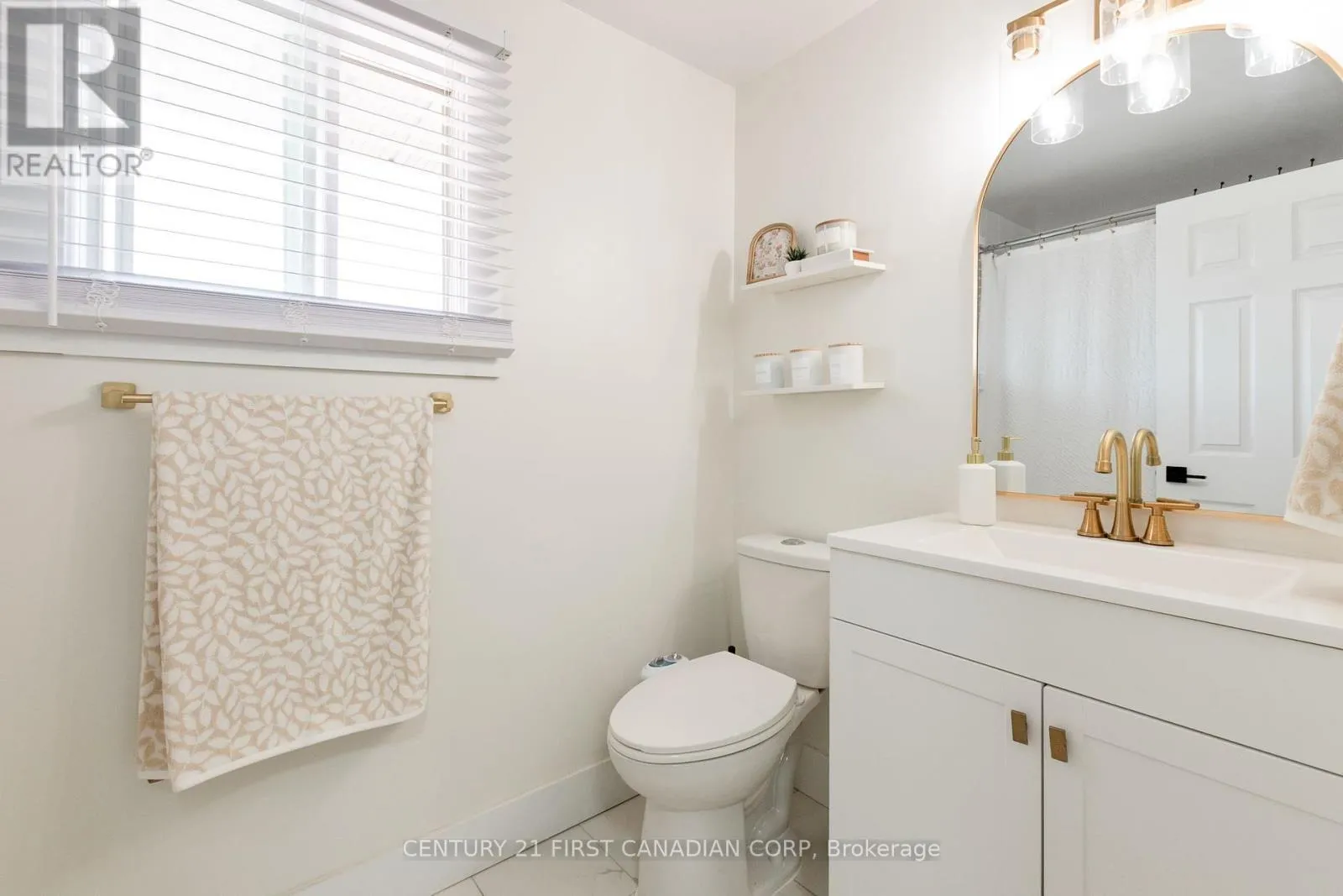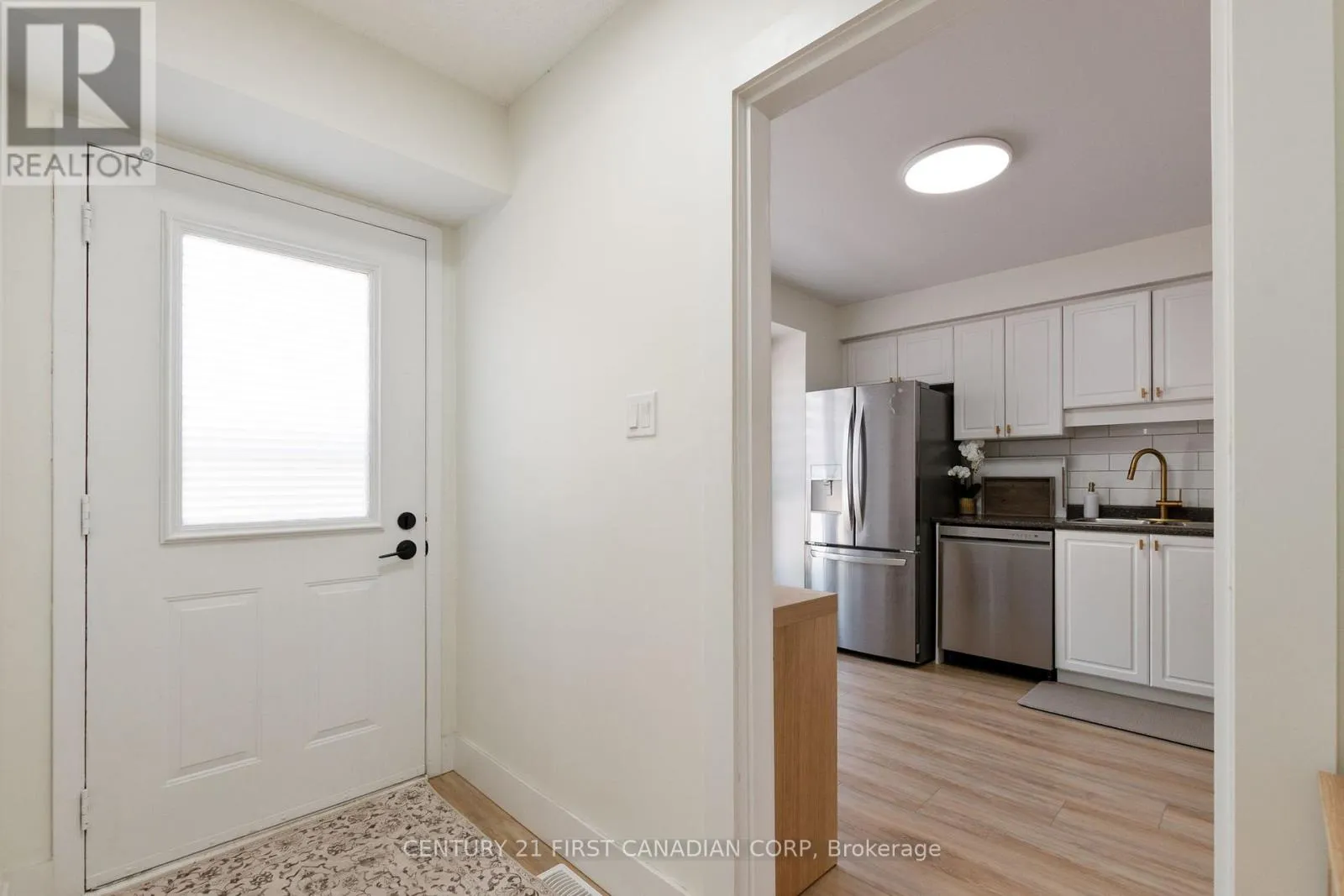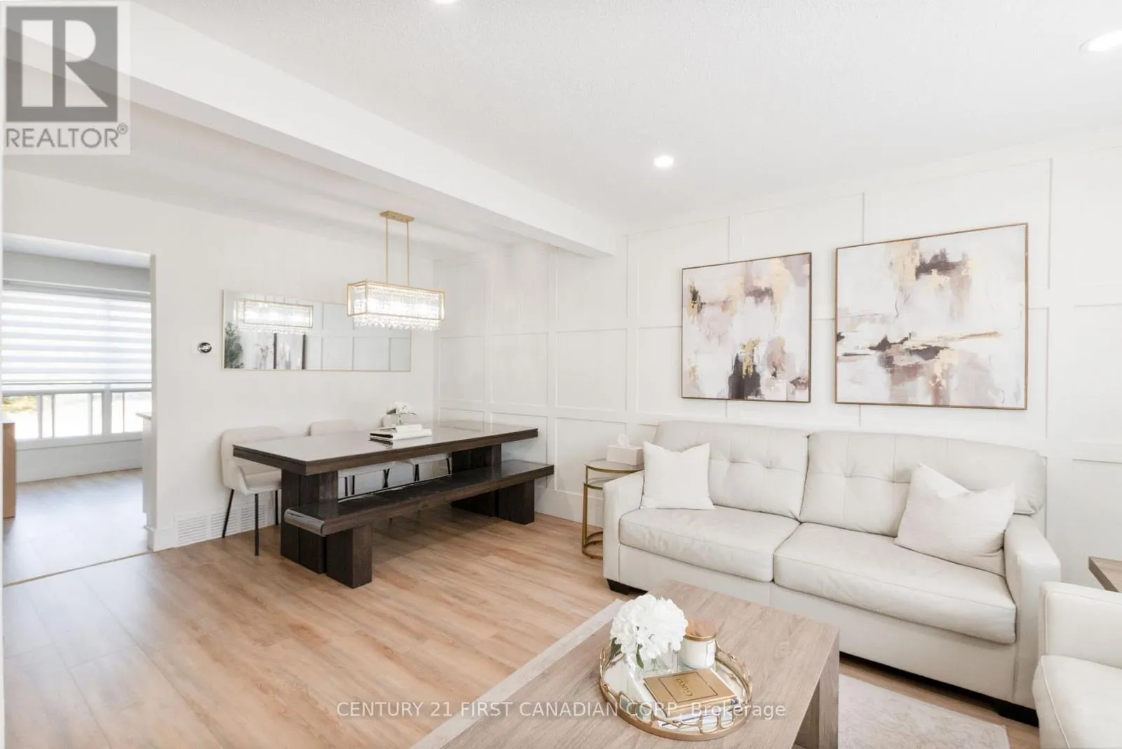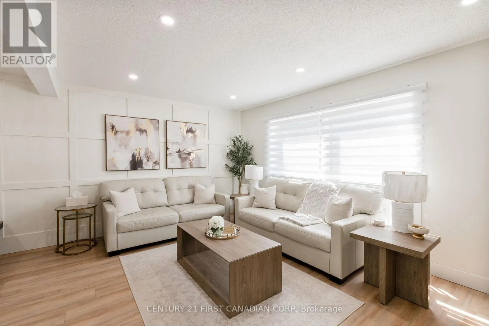 Cross Streets: Wellington Road South. ** Directions: Wellington Road South to Waterman Avenue. Unlock your dream lifestyle - A modern Haven awaits! Seize this rare opportunity to own this breathtaking two story townhome that has been professionally renovated from top to bottom. This move-in-ready, 3 bedroom, 1 1/2 bath offers timeless elegance making it a one of a kind at an unbeatable value. The new kitchen features crisp white shaker cabinets, new countertop, finished with striking gold handles and faucet with new stainless steel appliance and hood fan. Immerse your self into the open-concept main floor featuring large dining area with a striking gold crystal chandelier and family room bathed in natural light, sleek blinds, light oak vinyl plank flooring, new pot lights and elegant shiplap feature wall. The private rear patio is your perfect escape for relaxation surrounded by lush greenery. As you make your way up to the second floor you will find a fully renovated 3 piece bathroom, large master bedroom and 2 generously sized bedrooms with all new flooring through-out. As you head to the transformative finished basement, your personal retreat offering additional living space. The large window allows plenty of natural light, beautiful shiplap feature wall, spot lights, new vinyl flooring creating a place to relax and enjoy. Additional features include brand-new air conditioner, owned hot water tank and furnace. This place is sure to impress. Book your private showing today. (id:27476)