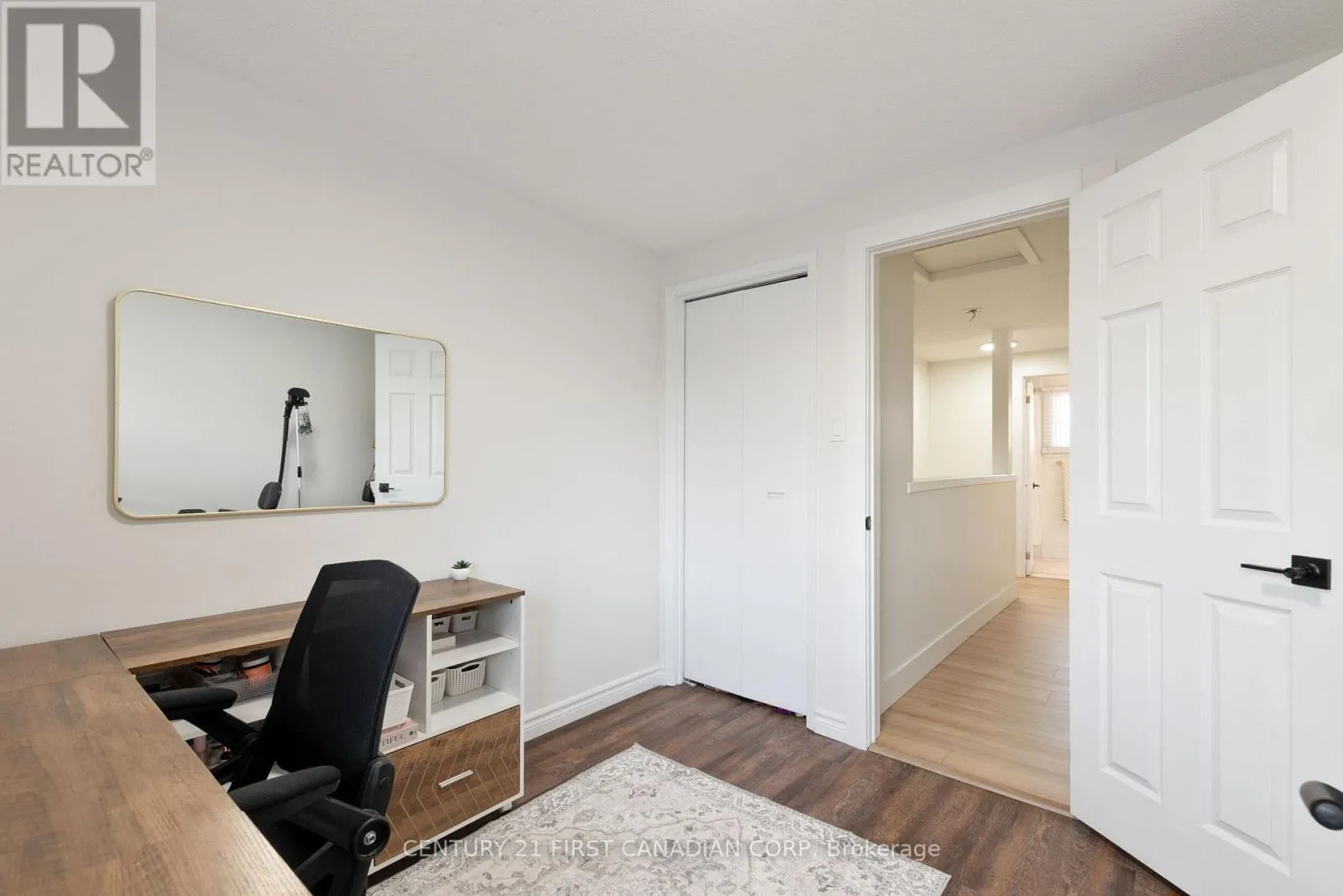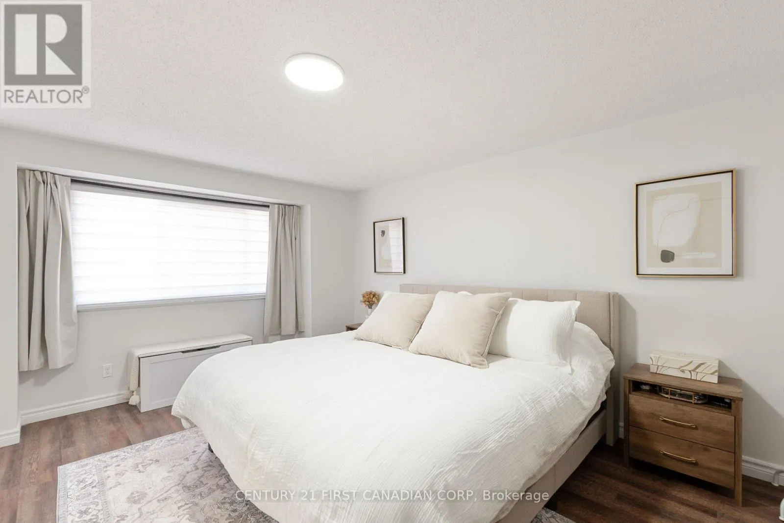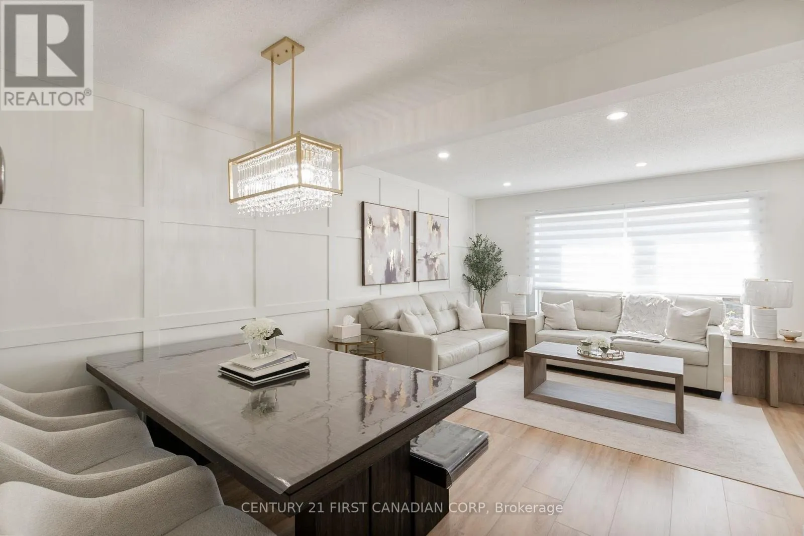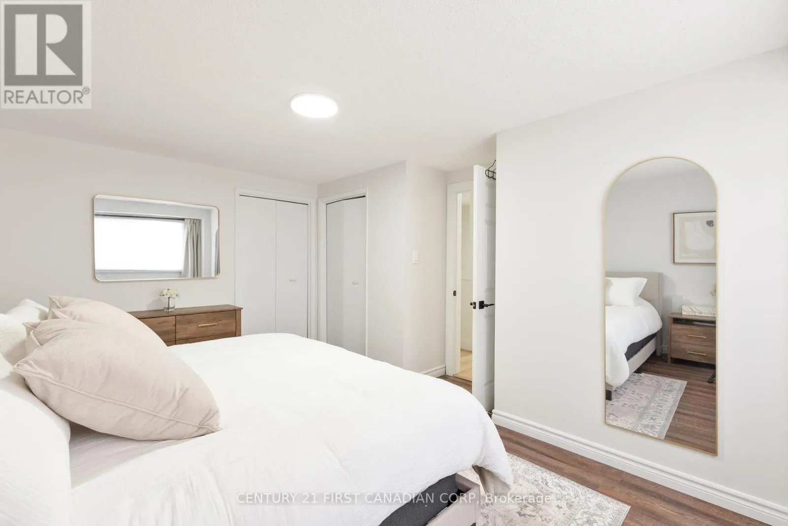 Cross Streets: Wellington Road South. ** Directions: Wellington Road South to Waterman Avenue. Unlock your dream lifestyle - A modern Haven awaits! Seize this rare opportunity to own this breathtaking two story townhome that has been professionally renovated from top to bottom. This move-in-ready, 3 bedroom, 1 1/2 bath offers timeless elegance making it a one of a kind at an unbeatable value. The new kitchen features crisp white shaker cabinets, new countertop, finished with striking gold handles and faucet with new stainless steel appliance and hood fan. Immerse your self into the open-concept main floor featuring large dining area with a striking gold crystal chandelier and family room bathed in natural light, sleek blinds, light oak vinyl plank flooring, new pot lights and elegant shiplap feature wall. The private rear patio is your perfect escape for relaxation surrounded by lush greenery. As you make your way up to the second floor you will find a fully renovated 3 piece bathroom, large master bedroom and 2 generously sized bedrooms with all new flooring through-out. As you head to the transformative finished basement, your personal retreat offering additional living space. The large window allows plenty of natural light, beautiful shiplap feature wall, spot lights, new vinyl flooring creating a place to relax and enjoy. Additional features include brand-new air conditioner, owned hot water tank and furnace. This place is sure to impress. Book your private showing today. (id:27476)