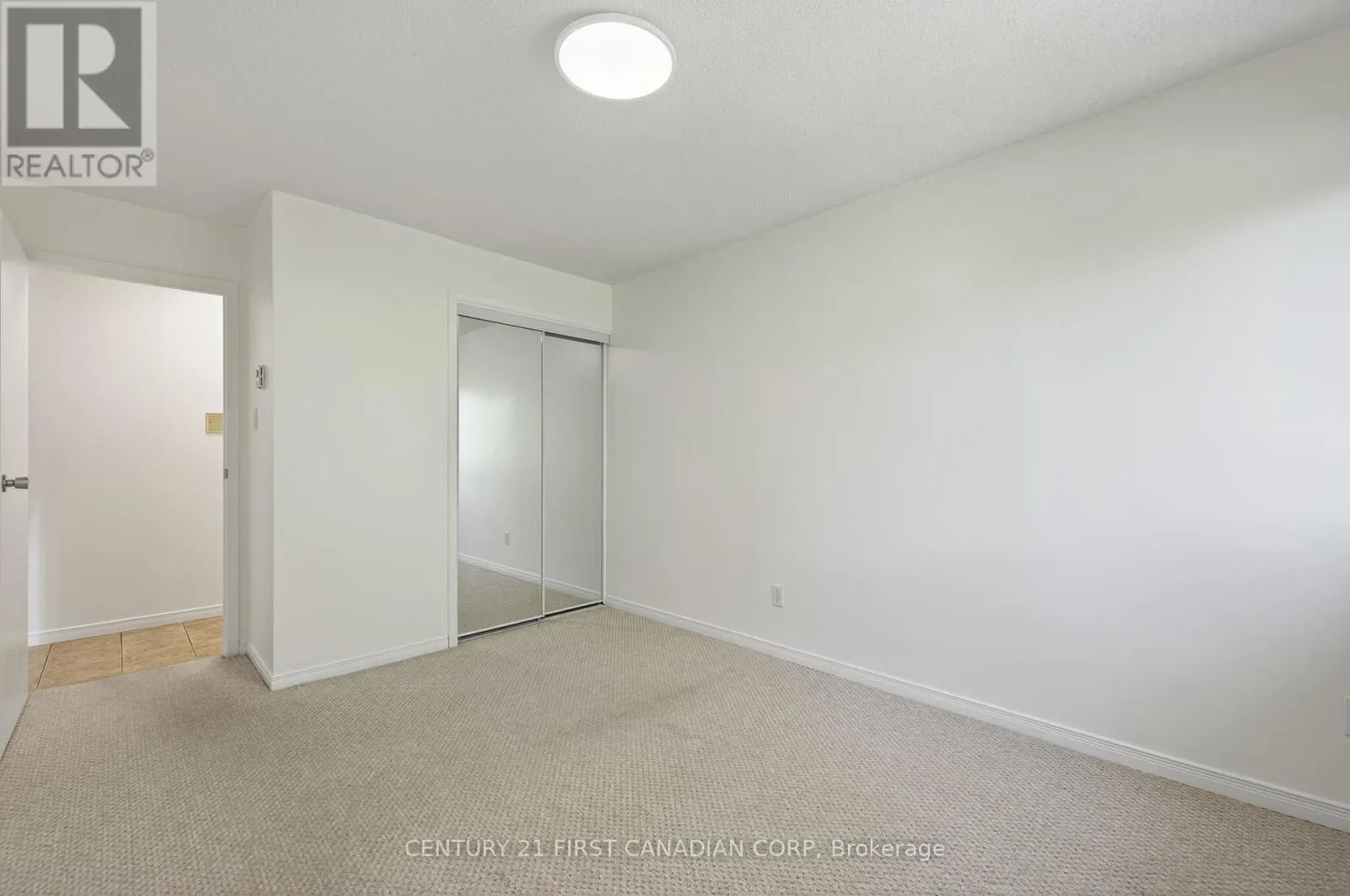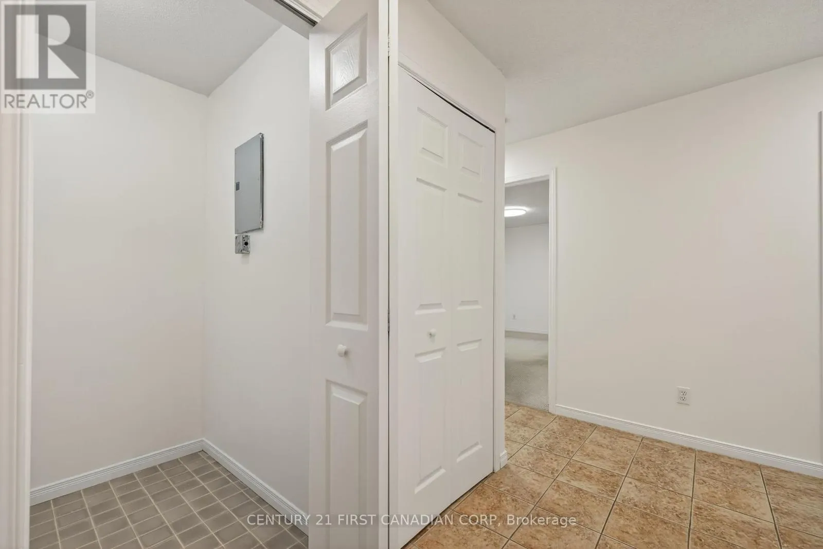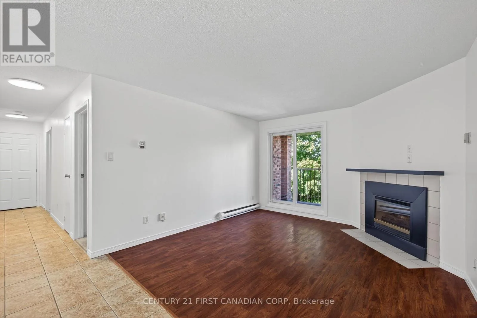 Cross Streets: Bradley Ave & Jalna Blvd. ** Directions: From Wellington Road, head west on Bradley, turn left on Ernest Ave, right on Conway Drive. Welcome to South Ridge Meadows! This beautifully maintained top-floor 2-bedroom unit offers 879 sq. ft. of thoughtfully designed living space, plus a private 51 sq. ft. balcony with peaceful northern exposure--perfect for morning coffee or evening relaxation.Step inside to a spacious tiled foyer that opens into a bright and functional galley kitchen, complete with 3 appliances, a separate filtered drinking water tap (installed in 2025), mosaic tile backsplash, under-cabinet lighting, and tile flooring. The kitchen flows into the open-concept dining and living area, featuring tile & luxury vinyl plank flooring and a cozy gas fireplace--ideal for those chilly winter days. The living area also provides direct access to the updated balcony. Down the hall, you'll find two generously sized bedrooms with warm carpet floors and ample closet space. The updated full bathroom (2023) showcases a tiled walk-in shower, large-format tile floors, a modern vanity, new faucet, and a new toilet. Additional features include in-suite laundry and a large in-unit storage room.This well-managed complex offers plenty of surface parking and a refreshing outdoor pool for residents to enjoy in the warmer months. Recent building upgrades include new tile and carpet flooring in the lobby & hallways, a new elevator, updated unit doors and hardware--adding to the overall appeal and peace of mind. Conveniently located near White Oaks Mall, Food Basics, Costco South, a wide selection of restaurants, banks, and just minutes from Hwy 401. Outdoor lovers will appreciate the nearby network of scenic walking paths, stretching from Exeter Road to Jalna Blvd, passing through White Oaks Park and Rick Hansen baseball fields. Don't miss this opportunity to own a move-in ready condo in a fantastic location. (id:27476)