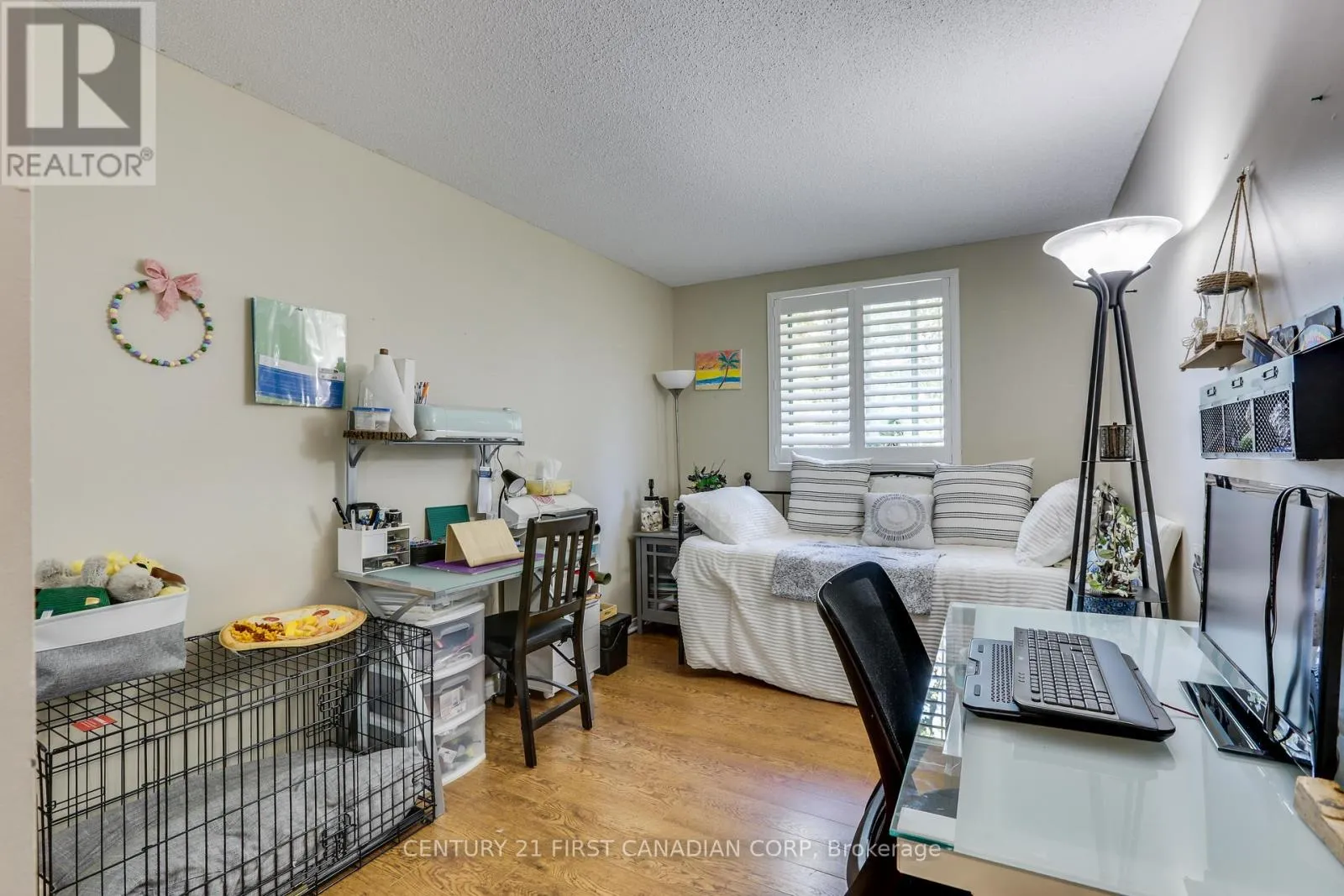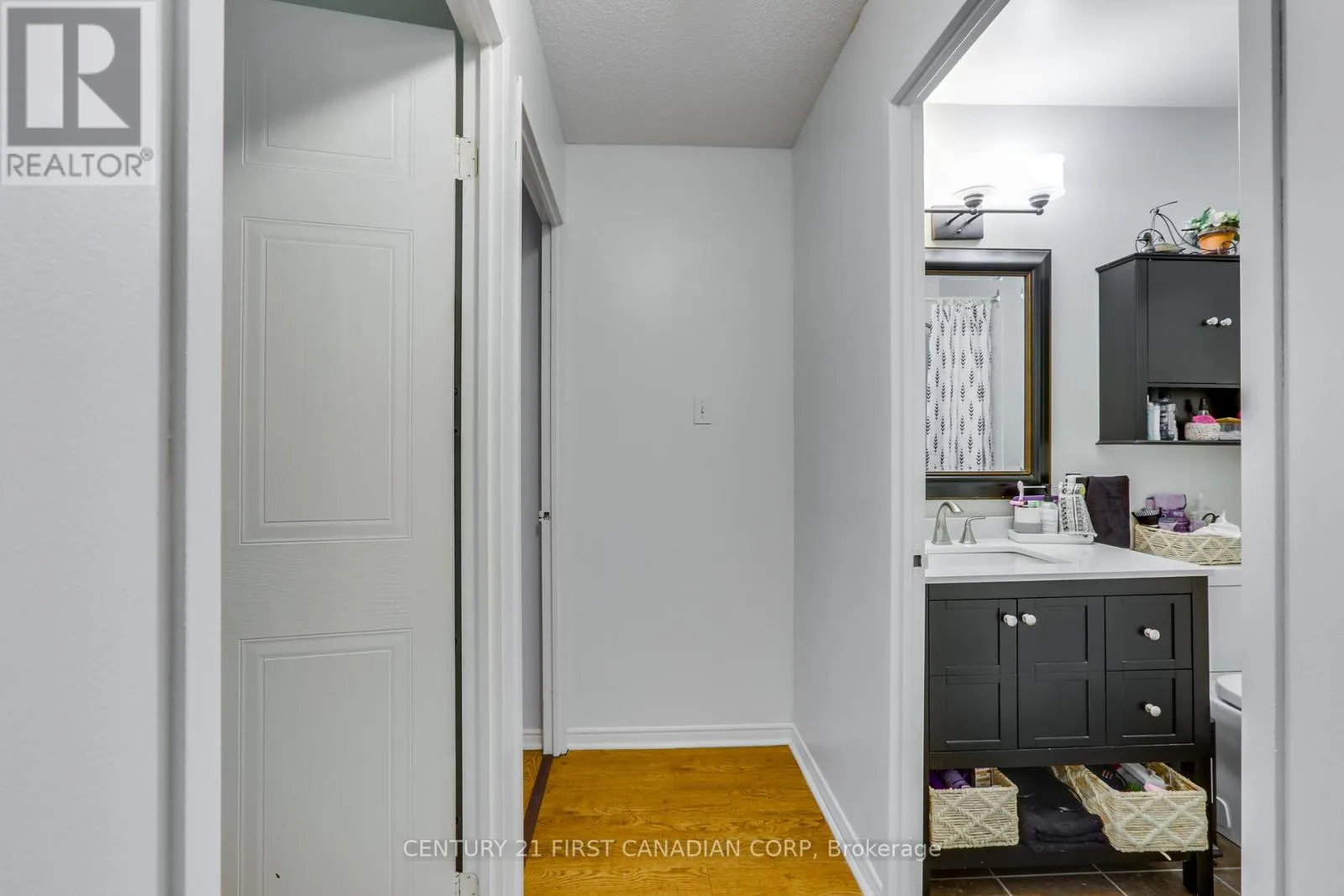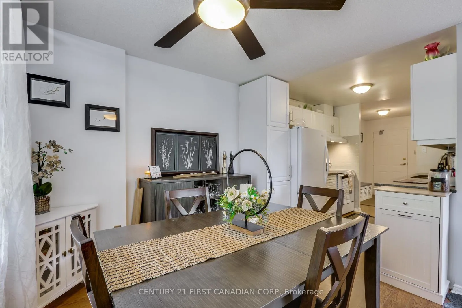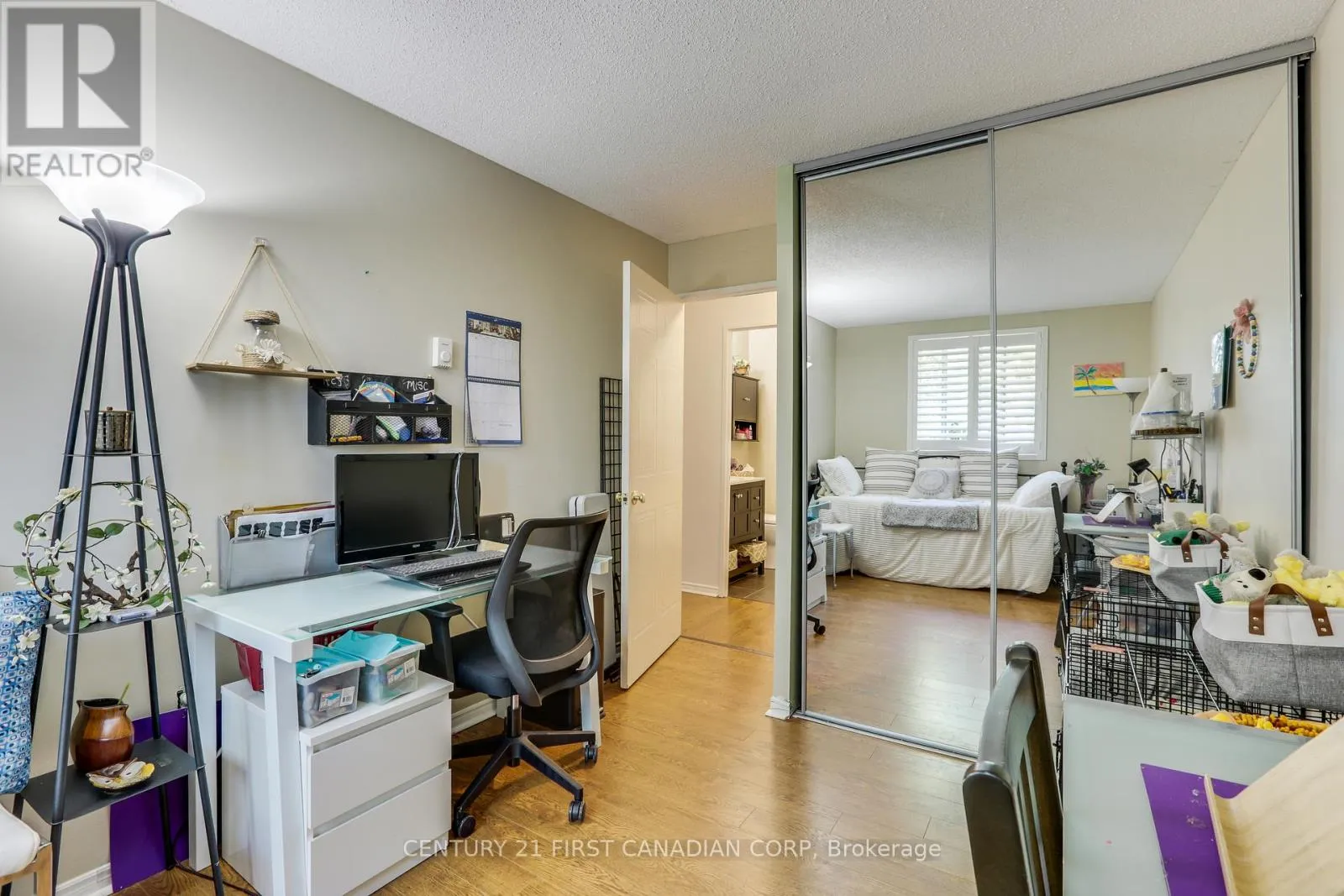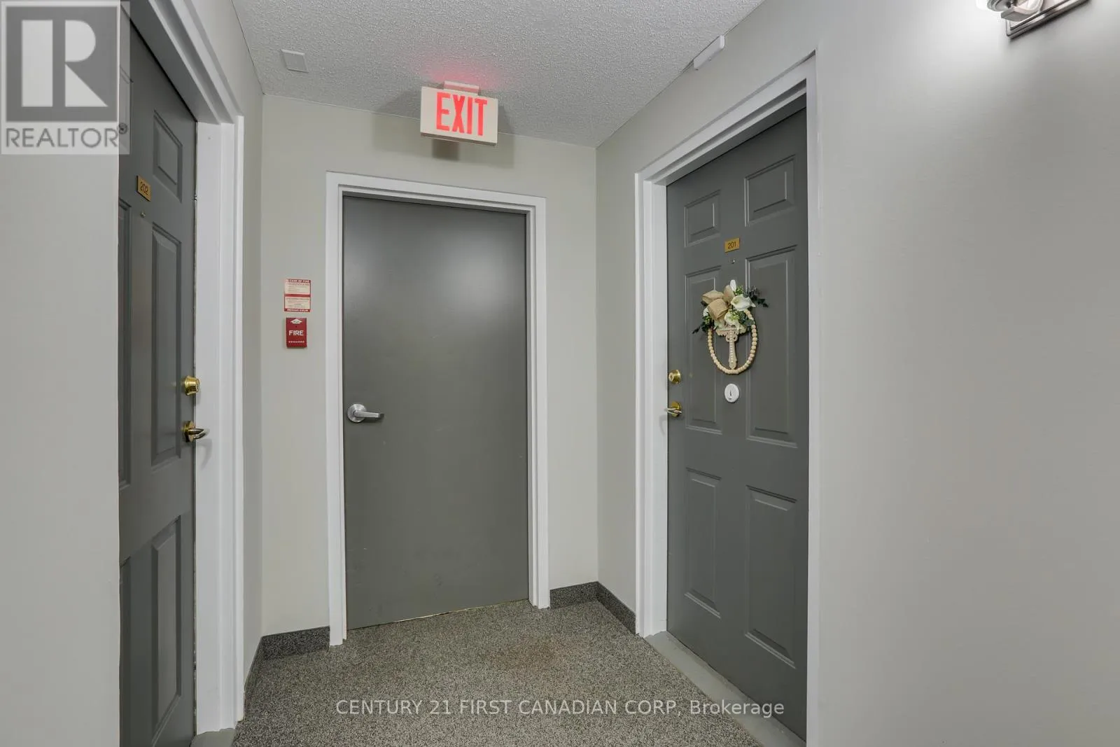 Cross Streets: Wharncliffe Rd. N and Baseline Rd.W. ** Directions: Wharncliffe Rd. N turn right onto Baseline Rd. W. Turn-key 2-bedroom, 2-bathroom, corner unit condo in London South! Welcome to this beautifully maintained second-floor condo corner unit at 201-76 Base Line Rd. W. Bright and inviting with a large bay window and loads of natural light, this carpet-free home offers plenty of upgrades throughout. The kitchen features refaced cabinetry, quartz countertops, a stylish backsplash, soft-close cupboards, and a custom pantry. Both bathrooms were updated in 23' with modern vanities, while the unit also boasts new laminate flooring 20'. Custom built-in storage with sleek sliding doors is found in the foyer and along the full width of the living room, adding both function and style. California shutters added in 23' in the bedrooms and patio door further enhance the space. Step out to a generous private balcony to enjoy the outdoors! The spacious primary suite offers a walk-in closet and ensuite, while convenient in-suite laundry is located in the main hallway. Building amenities include an exercise room, sauna, controlled entry, and plenty of parking. Fantastic location close to shopping, restaurants, parks, public transit, and so much more! Book your showing today! (id:27476)
