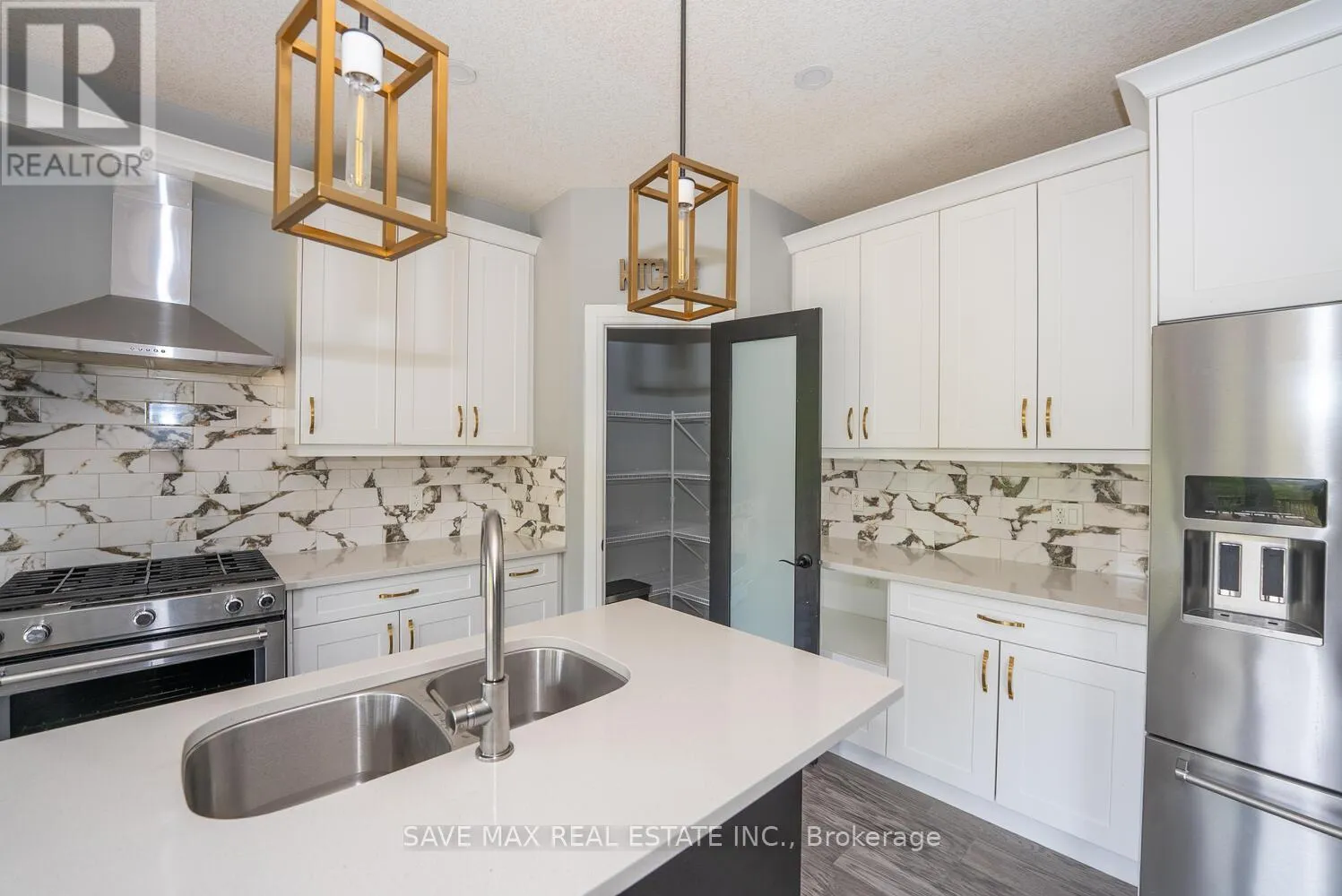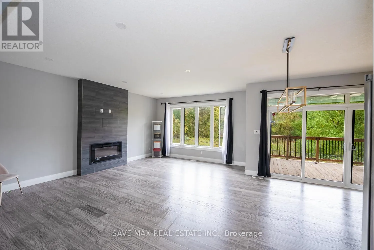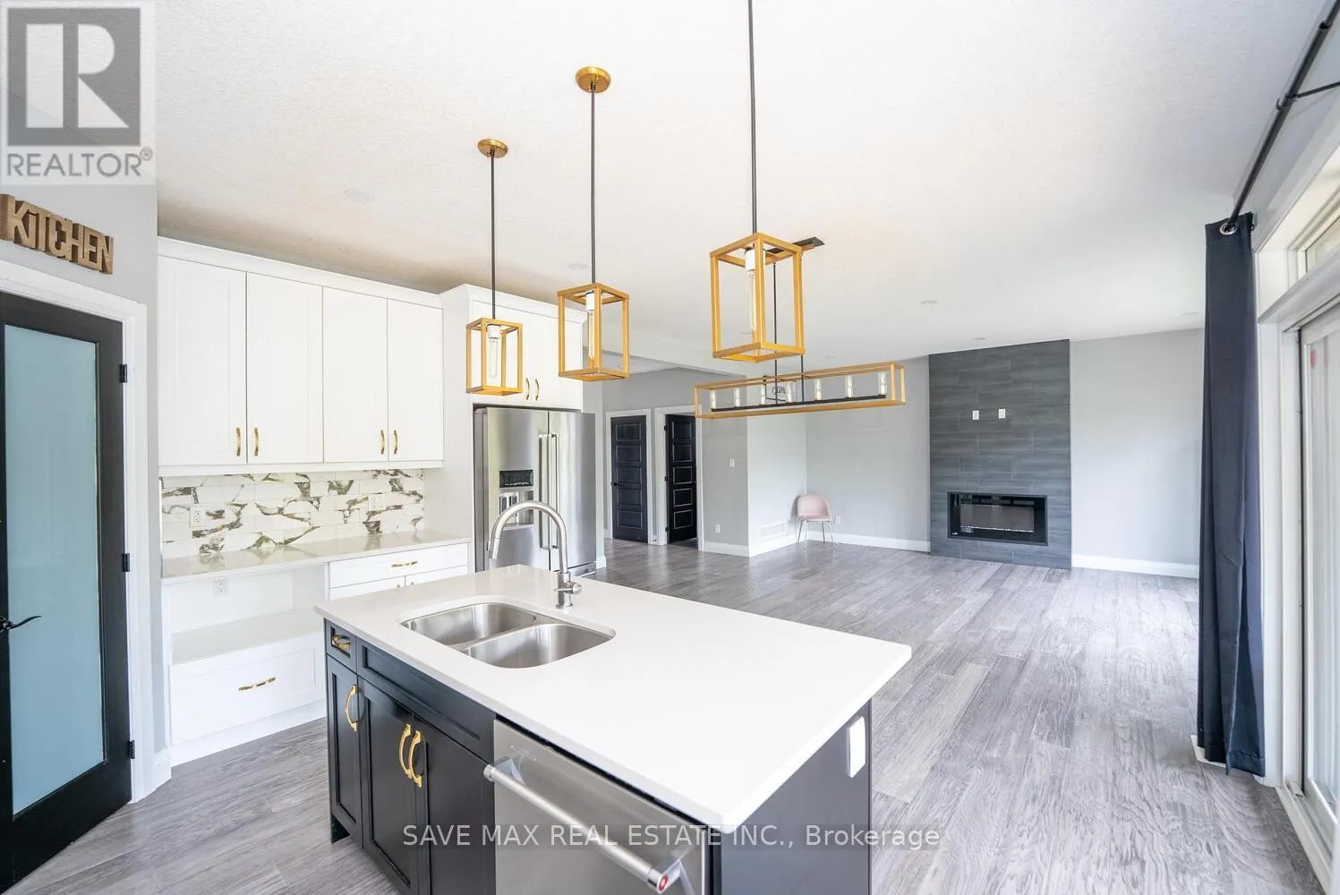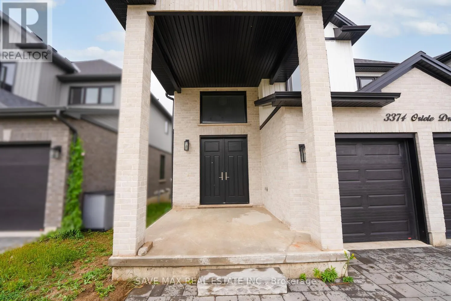 Cross Streets: Hamilton Rd & Commissioners Rd. ** Directions: Take Veterans north from Hwy 401 left onto Hamilton Rd, stay on Hamilton Rd and a right onto Oriole. Welcome to 3374 Oriole Dr, a truly stunning newer home nestled in one of the most desirable and family-friendly neighborhoods of London South. Perfectly situated on a quiet cul-de-sac, this home backs onto the breathtaking ravines of the Thames River, offering a rare combination of privacy and natural beauty with no homes at the back. Designed with both comfort and elegance in mind, the layout features 4 spacious bedrooms plus a versatile main floor den/office ideal for working from home along with a 1-bedroom lookout basement, perfect for extended family or guests. The luxurious primary suite comes complete with a spa-like 5-piece ensuite for your relaxation. The main floor is bright and airy, showcasing 9 ft California ceilings, wide engineered hardwood floors, and a modern open-concept kitchen with quartz countertops, extended custom cabinetry, pantry, breakfast island, and valance lighting. Walk out to a covered patio where you can unwind while enjoying the tranquil ravine views year-round. Thoughtful upgrades are found throughout, including designer light fixtures, pot lights, a stylish tiled electric fireplace, oversized basement windows, and contemporary finishes that add warmth and sophistication. Beyond the home, the location is unbeatable just minutes from Hwy 401, Downtown London, Western University, Fanshawe College, Costco, Amazon, the upcoming VW Electric Car Plant, and the International Airport making it perfect for families, professionals, and investors alike. This home truly combines modern living with timeless charm in one of London's most sought-after settings. (id:27476)