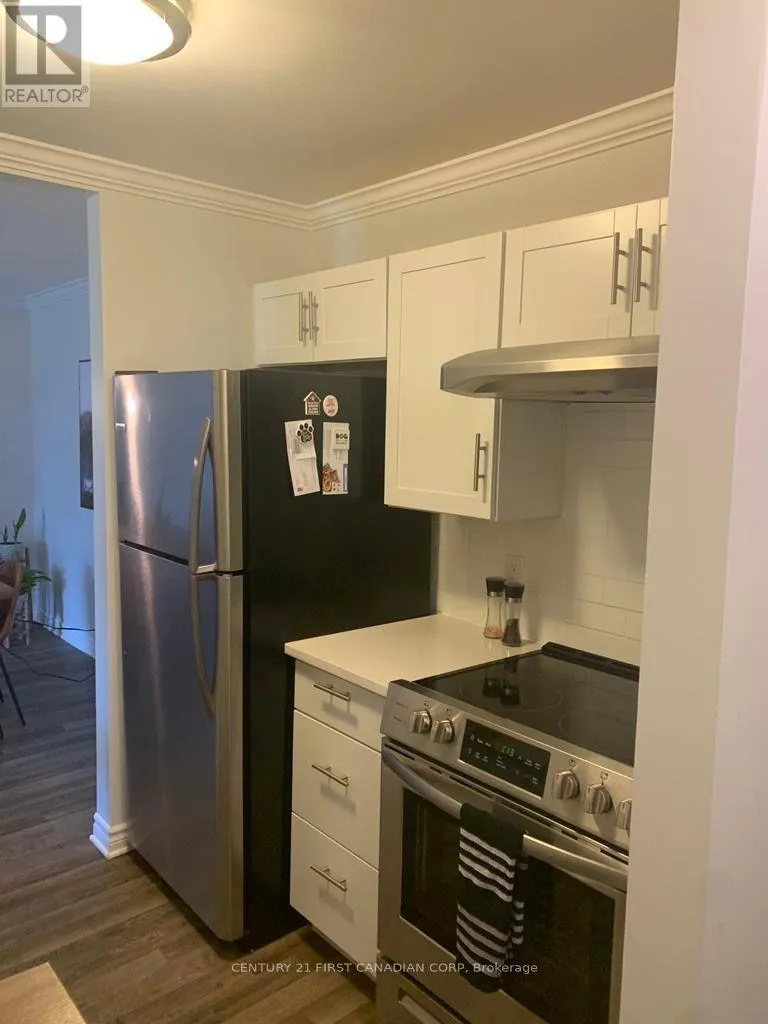 SOUTHDALE TO JALNA (WEST SIDE) GO SOUTH PAST BRADLEY, TURN LEFT (EAST) ONTO CONDAY DRIVE. Excellent value for first-time buyers, retirees, or investors! This immaculate, updated 2-bedroom, 1 bath condo is located in a well-managed complex that features an outdoor inground pool, ample parking, and recent upgrades including new elevators.Situated on the second floor, this unit boasts a covered balcony overlooking peaceful greenspace no parking lot views here! The tastefully decorated interior features a gas fireplace in the living room, ceramic tile flooring in the foyer, kitchen, and bathroom, and in-suite laundry for added convenience. Both bedrooms are spacious, and all appliances, light fixtures, ceiling fans, and window blinds are included.Enjoy low electricity costs, condo fees that include water, and easy access to Highway 401. Walk to nearby shopping and amenities. Quick closing is available and preferred. (id:27476)