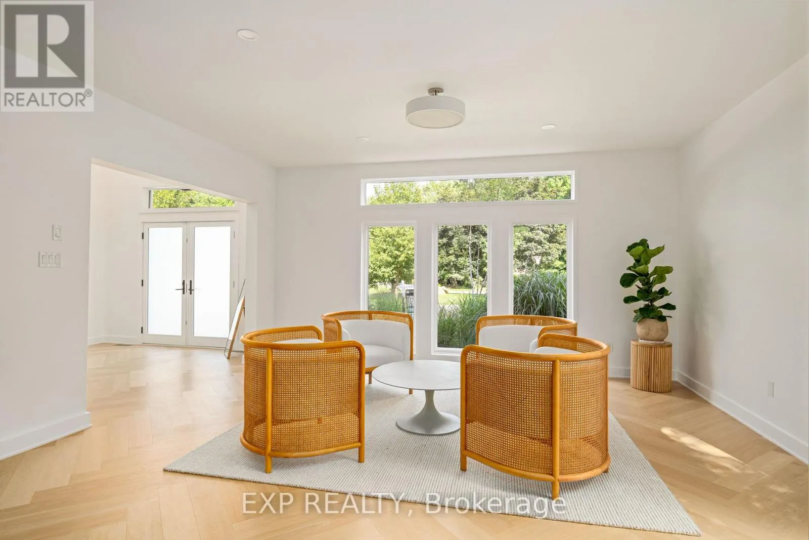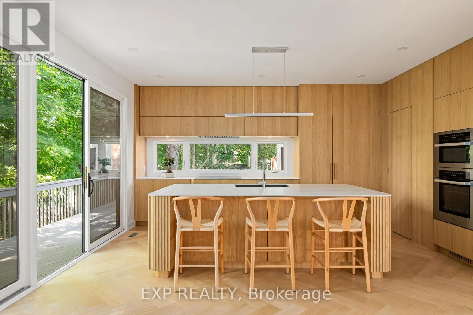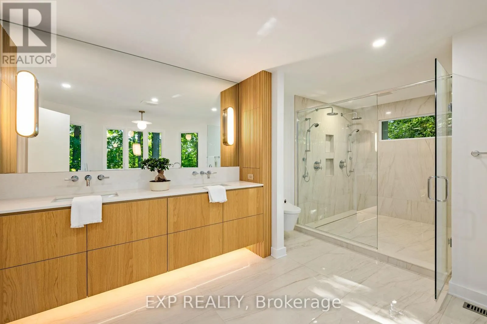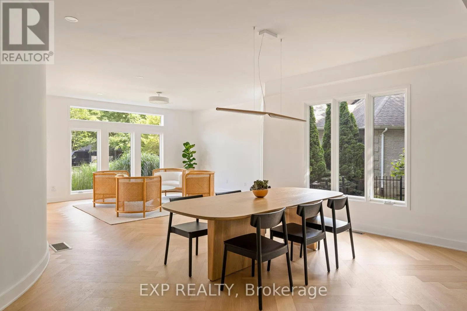 Cross Streets: Barclay Road. ** Directions: Turn left onto Crankbrook Rd, Turn right onto Barclay Rd, Turn right onto Birchmount Walk, property will be on the right. California-modern showpiece at the end of a private cul-de-sac, rebuilt from the studs up and bathed in sunlight all day. Framed by mature trees in one of Southwest London's most established neighbourhoods, 52 Birchmount Walk blends sleek design with natural privacy. With windows on all four sides, this home flows effortlessly between indoor and outdoor living. The refinished stucco exterior, custom black metal-and-glass awning, and modern double doors open to a spacious two-storey foyer with soaring transom windows. The foyer features a sculptural spiral staircase, an Italian-designed pendant, and adjoins a bright office space ideal for working from home. The main floor, re-imagined for seamless flow, is anchored by herringbone white oak and framed by lush greenery for privacy. Wired for Ethernet and Power-over-Ethernet outdoor security system cameras, the home was re-insulated and upgraded with state-of-the-art HVAC, central vacuum, and on-demand hot water for optimal comfort and efficiency. The custom flat-panelled Martin Jesko kitchen includes Fisher & Paykel panelled fridge/freezer columns, Miele induction cooktop, built-in speed oven/microwave combo, wall oven, dishwasher, Italian porcelain counters, and a dual temperature wine fridge. A backsplash window opens to the oversized two-tier patio - perfect for entertaining. A walk-in pantry and mudroom with garage access complete the design. Upstairs, each bedroom has a private ensuite with Martin Jesko cabinetry. The primary retreat includes a custom walk-in closet with direct laundry access, a spa-like bath with radiant in-floor heat, Rubinet fixtures, freestanding Silk Stone tub, TOTO smart toilet, and oversized dual shower framed by treetop transom windows. The finished walkout basement adds a rec room, bedroom/office, and garage-access flex space. Ideal for professionals, families, and those who love to entertain. Minutes to Highways 401/402 and a short drive to London's major hospitals. (id:27476)