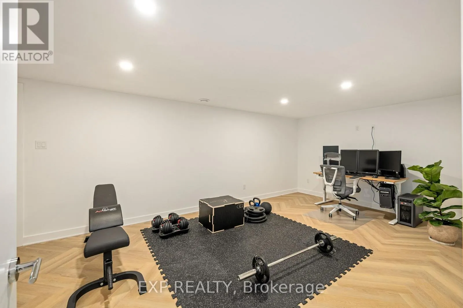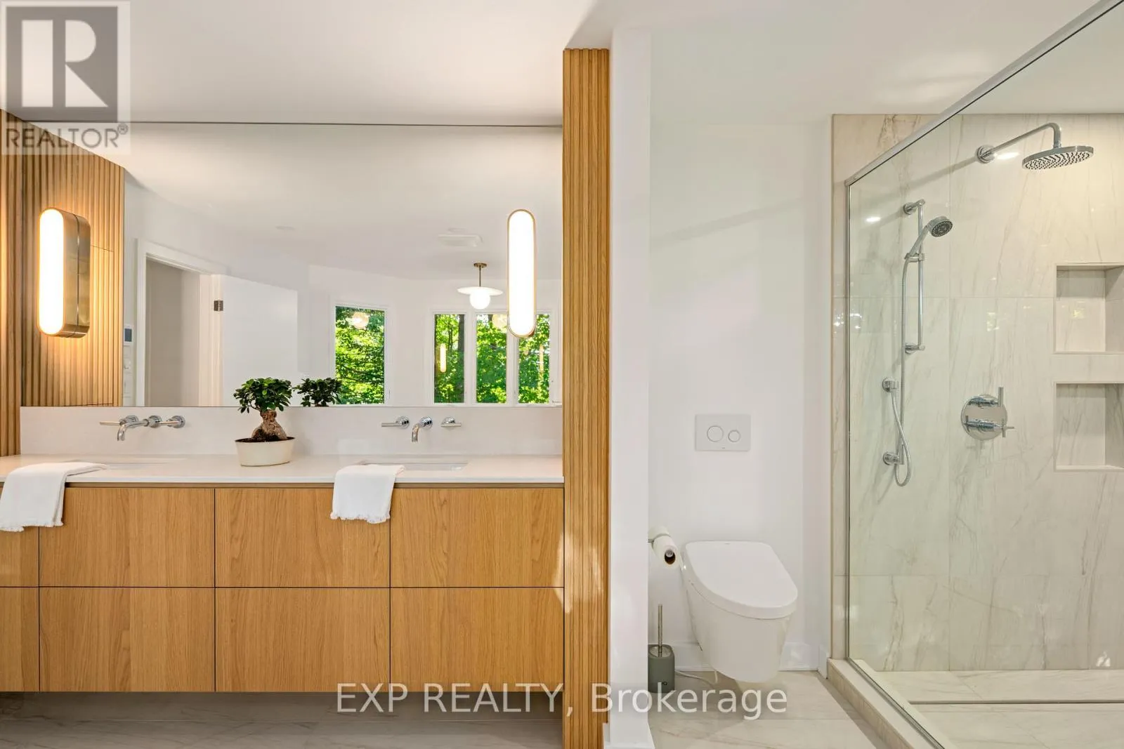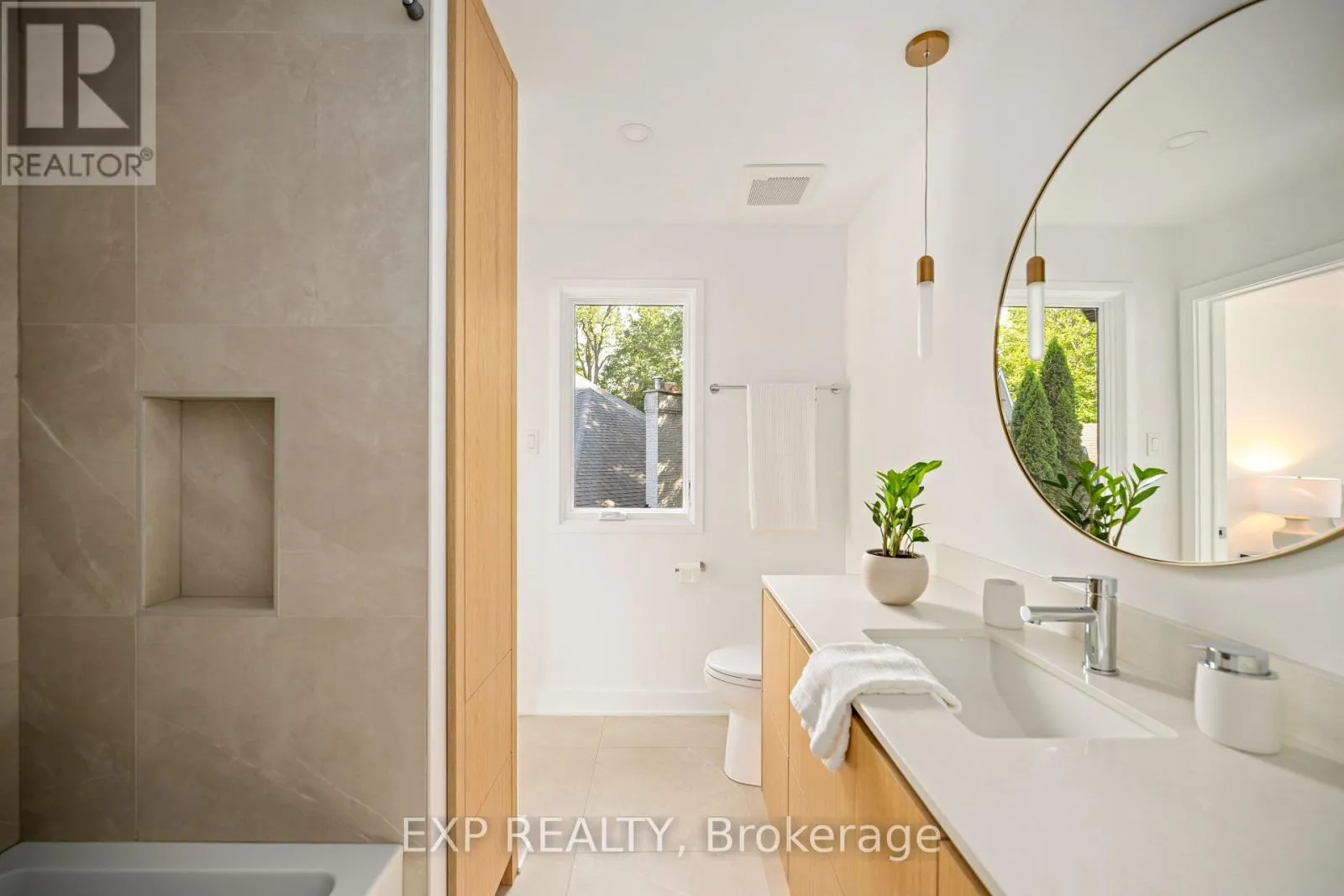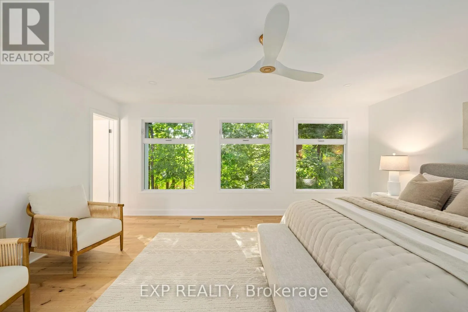 Cross Streets: Barclay Road. ** Directions: Turn left onto Crankbrook Rd, Turn right onto Barclay Rd, Turn right onto Birchmount Walk, property will be on the right. California-modern showpiece at the end of a private cul-de-sac, rebuilt from the studs up and bathed in sunlight all day. Framed by mature trees in one of Southwest London's most established neighbourhoods, 52 Birchmount Walk blends sleek design with natural privacy. With windows on all four sides, this home flows effortlessly between indoor and outdoor living. The refinished stucco exterior, custom black metal-and-glass awning, and modern double doors open to a spacious two-storey foyer with soaring transom windows. The foyer features a sculptural spiral staircase, an Italian-designed pendant, and adjoins a bright office space ideal for working from home. The main floor, re-imagined for seamless flow, is anchored by herringbone white oak and framed by lush greenery for privacy. Wired for Ethernet and Power-over-Ethernet outdoor security system cameras, the home was re-insulated and upgraded with state-of-the-art HVAC, central vacuum, and on-demand hot water for optimal comfort and efficiency. The custom flat-panelled Martin Jesko kitchen includes Fisher & Paykel panelled fridge/freezer columns, Miele induction cooktop, built-in speed oven/microwave combo, wall oven, dishwasher, Italian porcelain counters, and a dual temperature wine fridge. A backsplash window opens to the oversized two-tier patio - perfect for entertaining. A walk-in pantry and mudroom with garage access complete the design. Upstairs, each bedroom has a private ensuite with Martin Jesko cabinetry. The primary retreat includes a custom walk-in closet with direct laundry access, a spa-like bath with radiant in-floor heat, Rubinet fixtures, freestanding Silk Stone tub, TOTO smart toilet, and oversized dual shower framed by treetop transom windows. The finished walkout basement adds a rec room, bedroom/office, and garage-access flex space. Ideal for professionals, families, and those who love to entertain. Minutes to Highways 401/402 and a short drive to London's major hospitals. (id:27476)