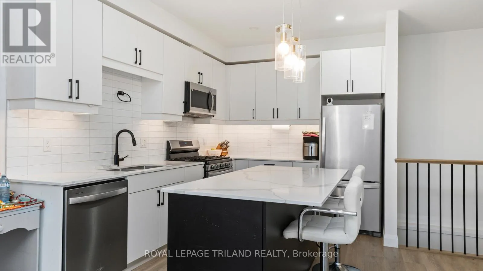 Cross Streets: WHARNCLIFFE ROAD. ** Directions: USE GPS. Welcome home to this beautifully designed 2 bedroom, 3 bathroom townhome, with modern finishes in London's desirable Lambeth neighbourhood. Entering the front door into the open concept living room area, you notice plenty of natural light coming in from the large windows. Looking into the kitchen, you see all new stainless-steel appliances, including the gas range. Just adjacent to the kitchen is the main floor 2-piece power room. The lower-level features 2 bedrooms, with the primary having a walk in closet and 3-piece ensuite bathroom. There is also a 4-piece bathroom and laundry located on this level. Outside there is a lovely lower level terrace, ideal for a play area or relaxing seating area. Close to major highways, amenities and London Transit, this home is well situated in the southwest part of the city and still close to nature and sought after schools. Condo fees: $179/month. (id:27476)