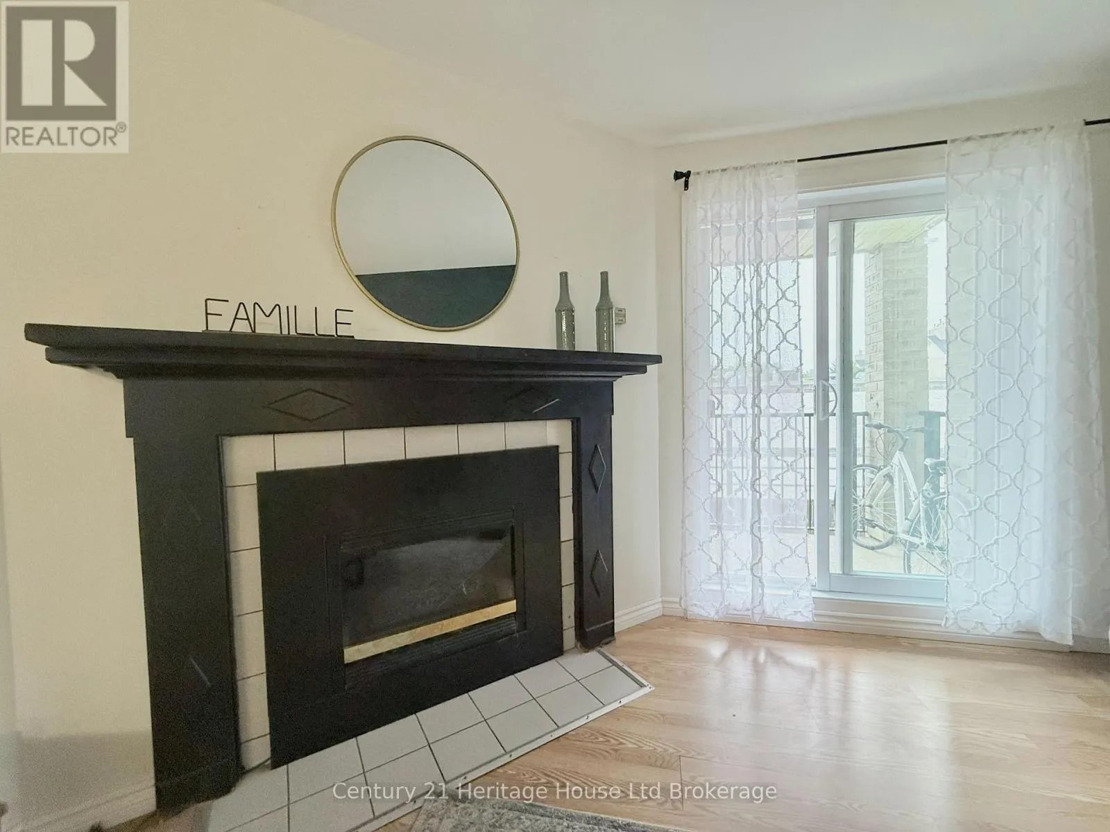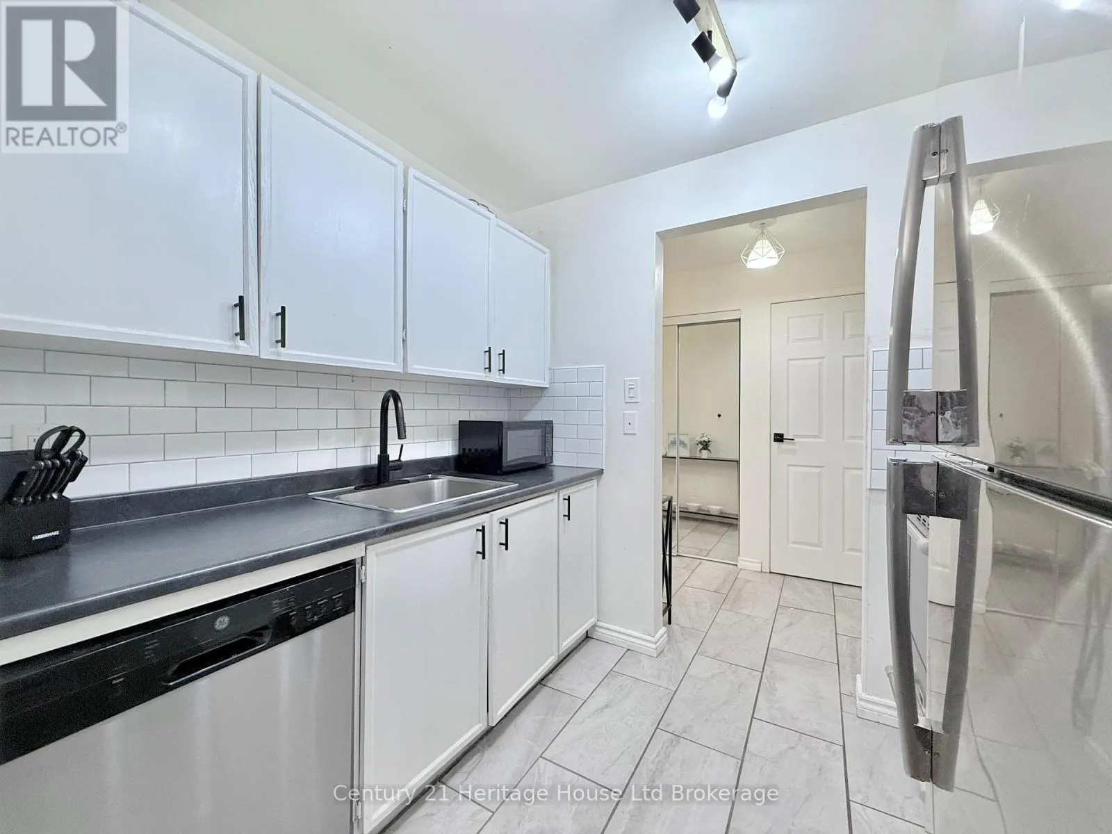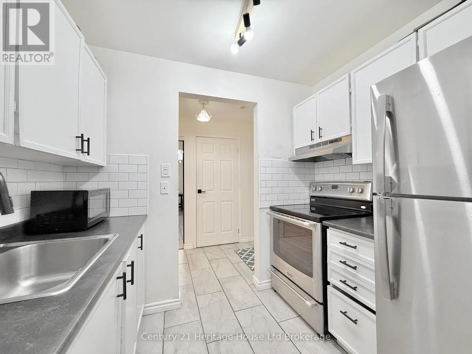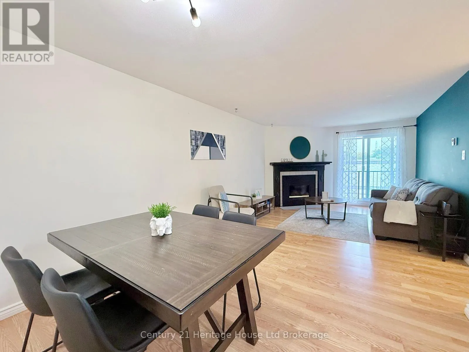 COMMISSIONERS RD E, HEAD SOUTH ON DEVERON Affordable Modern Condo Ideal for First-Time Buyers or Investors. This bright, furnished modern condo offers an excellent opportunity for first-time buyers or investors looking for a turnkey rental property in a growing, well-connected neighborhood. With a clean, open-concept layout and thoughtful updates throughout, this unit offers both comfort and convenience at an affordable price point. The spacious living and dining area is filled with natural light and features a cozy electric fireplace, perfect for relaxing evenings. The kitchen includes ample cabinetry, modern appliances, and a breakfast bar ideal for casual dining or entertaining. The generously sized bedroom offers a large closet, and the updated bathroom includes a full tub and shower. Enjoy the convenience of in-suite laundry and separate heating controls for year-round comfort. Step out onto your private balcony or take advantage of the buildings excellent amenities, including a fully equipped gym, an outdoor pool, and visitor parking. The building also offers controlled entry for added security, is pet-friendly with some restrictions, and allows for year-round living. Additional features include a water heater, a well-managed condo board, and access to public transit, shopping, parks, and nearby hospitals. Two dedicated parking space is included. Whether you're entering the market for the first time or expanding your rental portfolio, this affordable condo combines lifestyle, location, and value. Quick closing available. Don't miss this opportunity to own a low-maintenance home in a desirable location. (id:27476)
