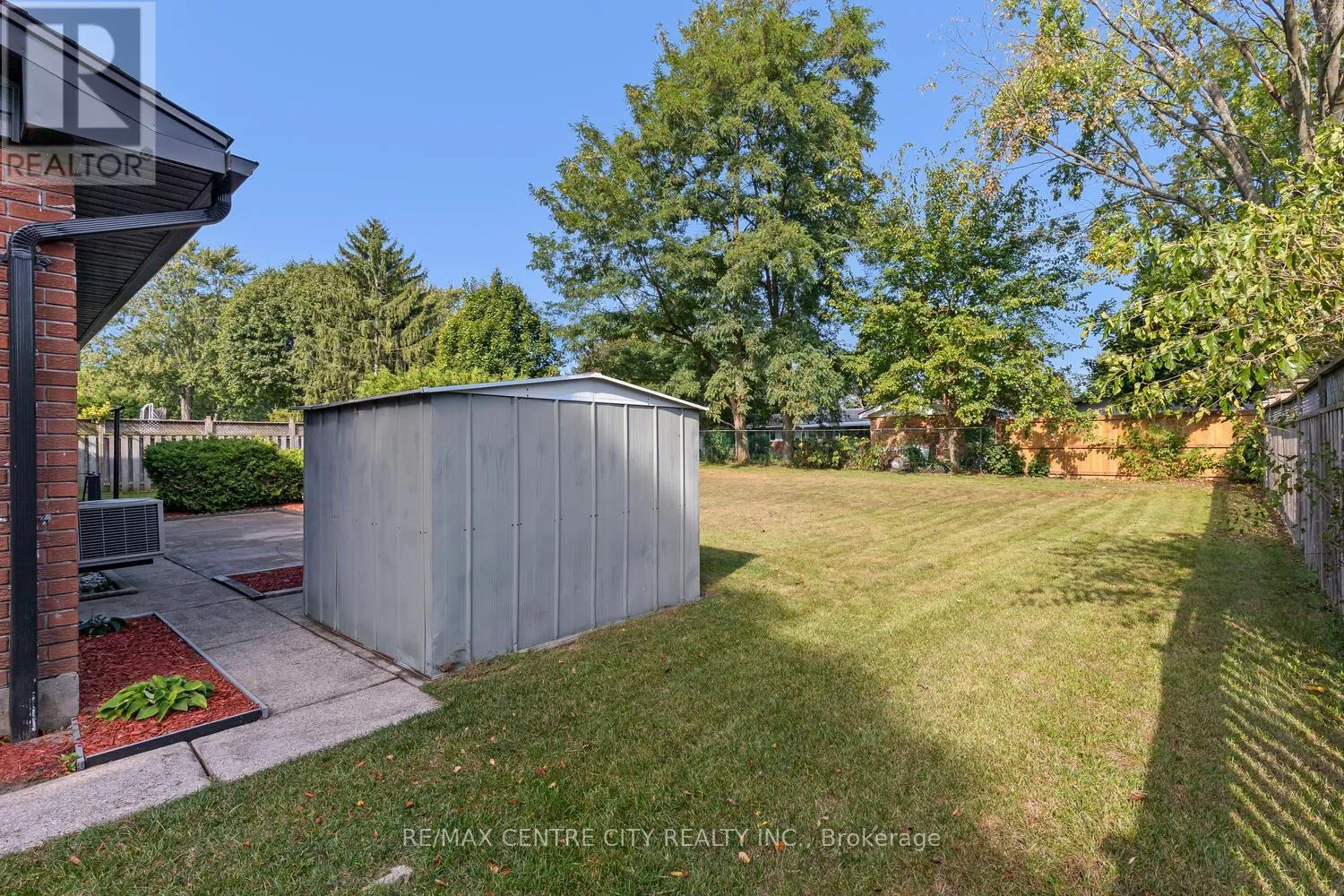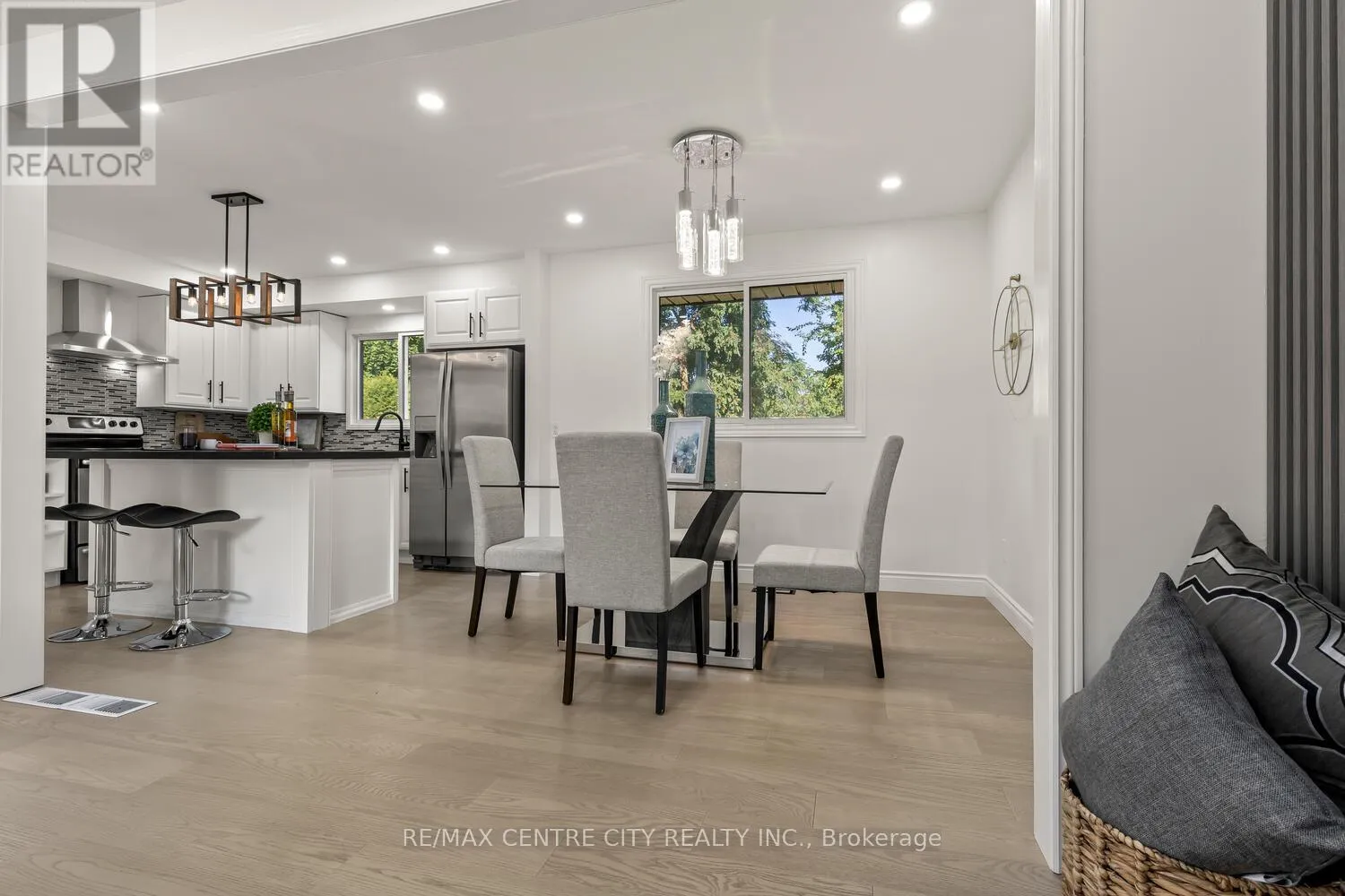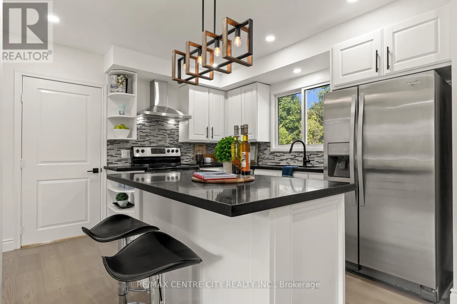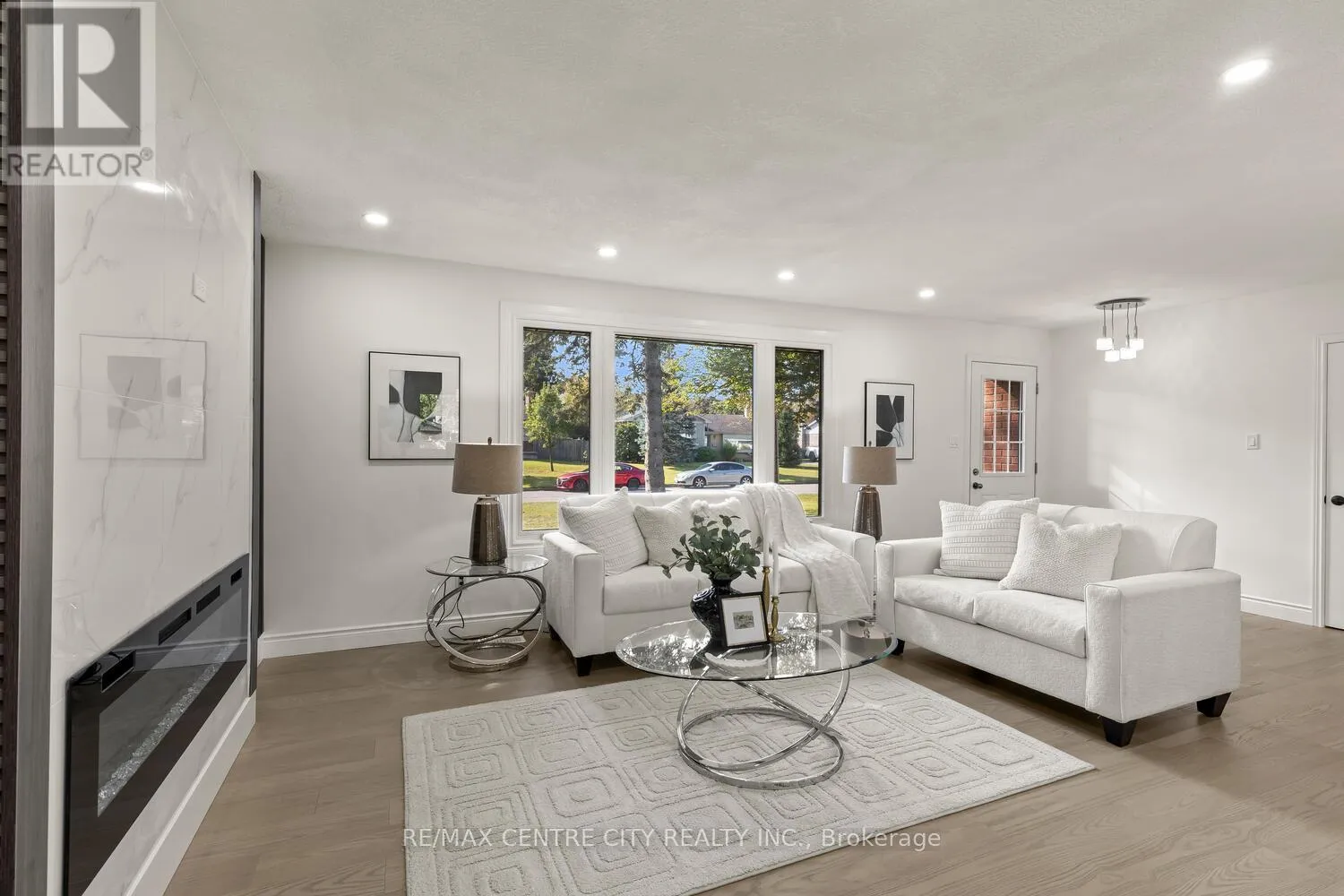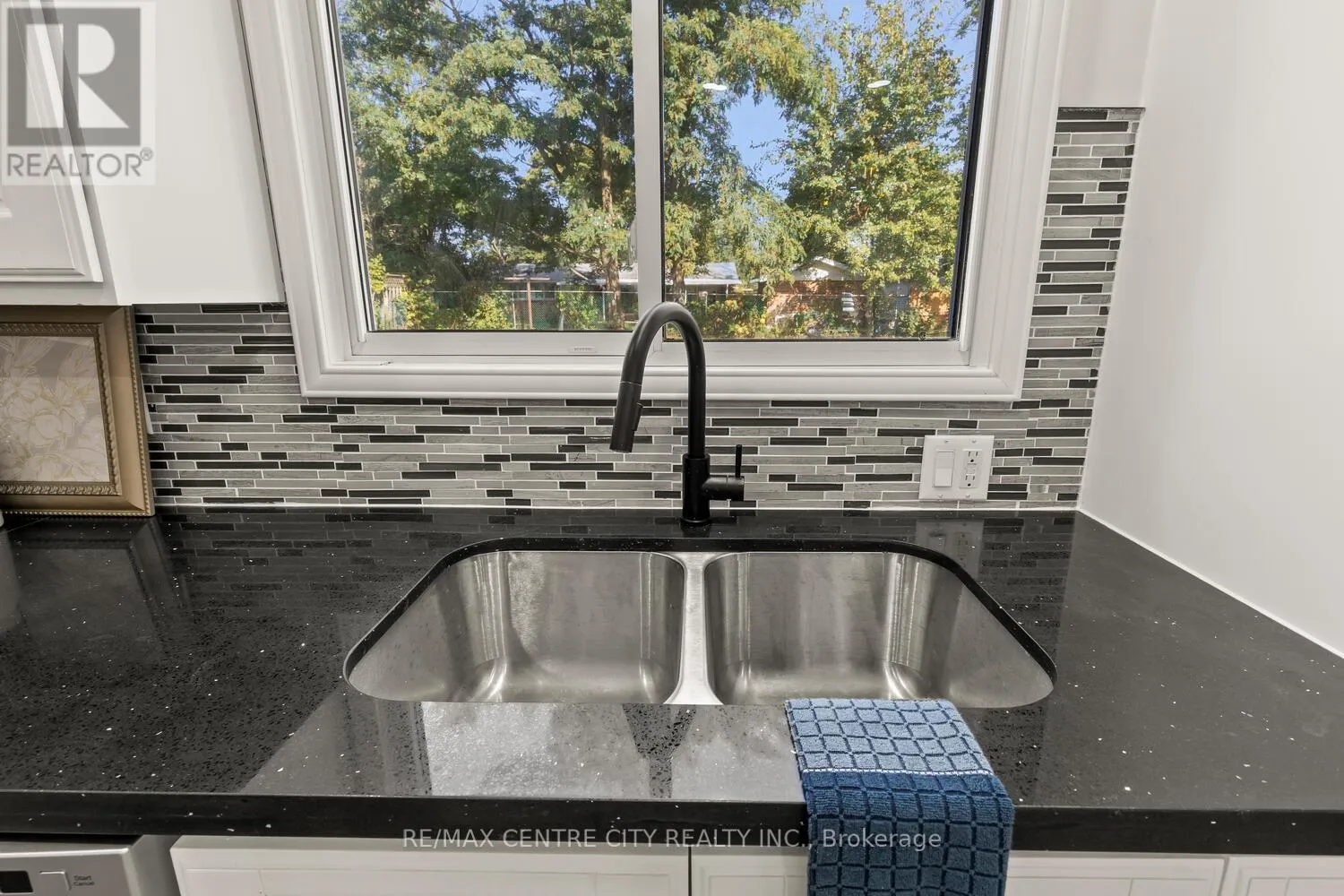 Cross Streets: Field & Monterey. ** Directions: North Side Field Road between Monterey & Outer. Wow! It's like new! Stunning, fully renovated all brick 4 Level Split in desirable Lambeth on a quiet street, huge 75 x 135' (approximately 1/4 acre) fully fenced lot with private patio & rear yard & attached single garage. Approximately 2,012 sq. ft. of luxury living finished on all 4 levels! Newer doors & windows & top quality engineered hardwood flooring on upper & the dazzling open concept main floor which features spacious entry, large living room with striking electric fireplace & a dazzling white kitchen with oversized quartz island/breakfast bar, quartz counters & a spacious eating/dining area. Gorgeous upper main bathroom with a luxurious shower panel system with rainfall head & body jets. 3rd Level has separate entrance at rear, 2 piece bath, 4th bedroom or den & a spacious, bright family room with large windows with south exposure. 4th Level/Lower provides even more living space, possible suite & would be ideal for live at home teens, extended family or even a border to assist with mortgage payments if necessary: this level has laundry facilities, another full 3 piece bath with shower, a beautiful bar area or kitchenette, an additional office/den with potential as 5th bedroom as well as furnace & storage area. Excellent School District as well. Act fast! (id:27476)