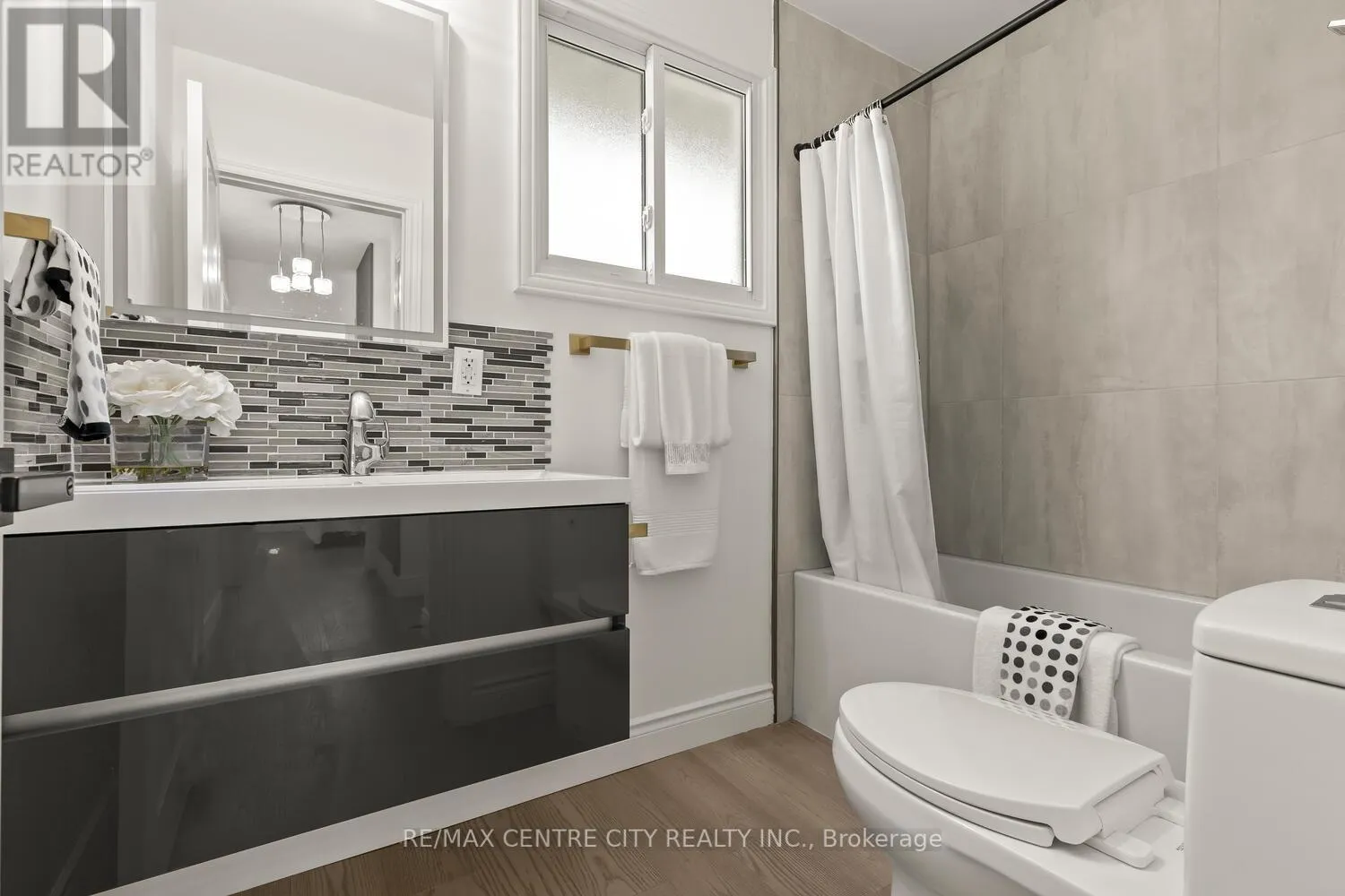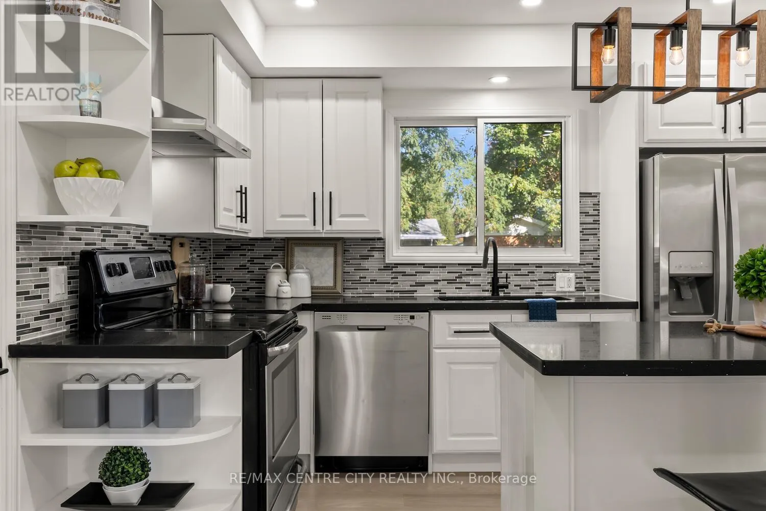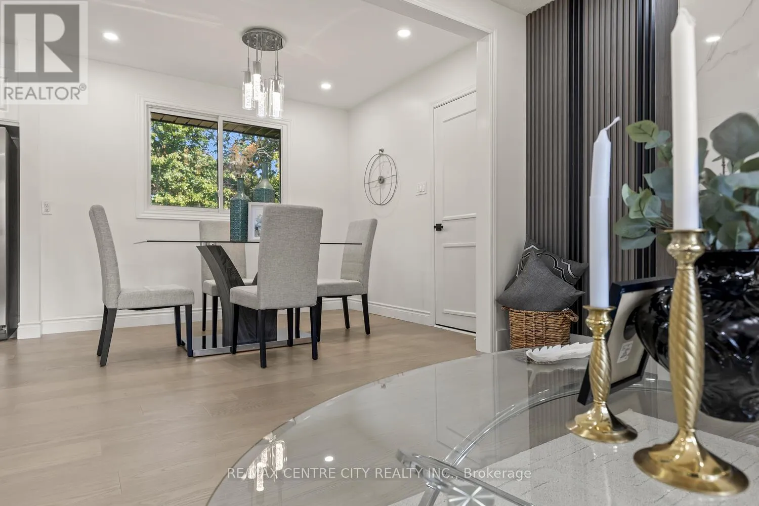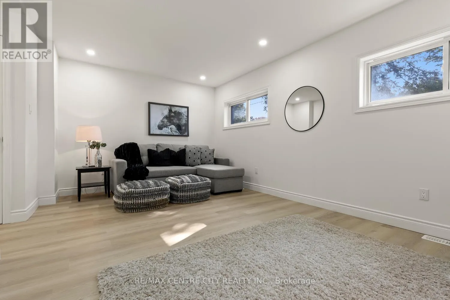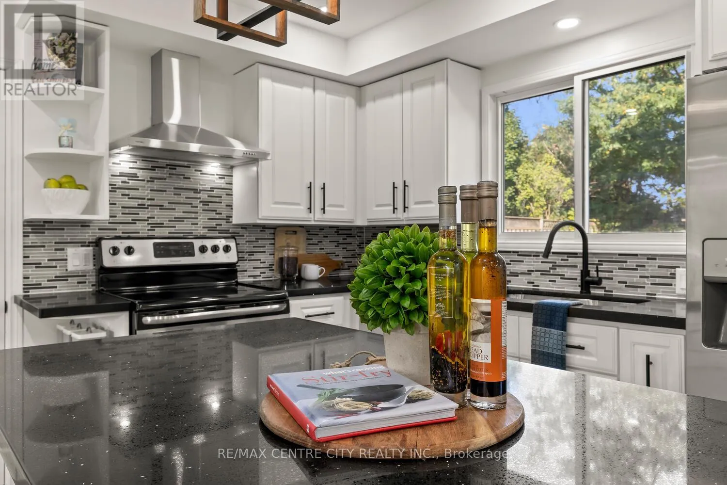 Cross Streets: Field & Monterey. ** Directions: North Side Field Road between Monterey & Outer. Wow! It's like new! Stunning, fully renovated all brick 4 Level Split in desirable Lambeth on a quiet street, huge 75 x 135' (approximately 1/4 acre) fully fenced lot with private patio & rear yard & attached single garage. Approximately 2,012 sq. ft. of luxury living finished on all 4 levels! Newer doors & windows & top quality engineered hardwood flooring on upper & the dazzling open concept main floor which features spacious entry, large living room with striking electric fireplace & a dazzling white kitchen with oversized quartz island/breakfast bar, quartz counters & a spacious eating/dining area. Gorgeous upper main bathroom with a luxurious shower panel system with rainfall head & body jets. 3rd Level has separate entrance at rear, 2 piece bath, 4th bedroom or den & a spacious, bright family room with large windows with south exposure. 4th Level/Lower provides even more living space, possible suite & would be ideal for live at home teens, extended family or even a border to assist with mortgage payments if necessary: this level has laundry facilities, another full 3 piece bath with shower, a beautiful bar area or kitchenette, an additional office/den with potential as 5th bedroom as well as furnace & storage area. Excellent School District as well. Act fast! (id:27476)