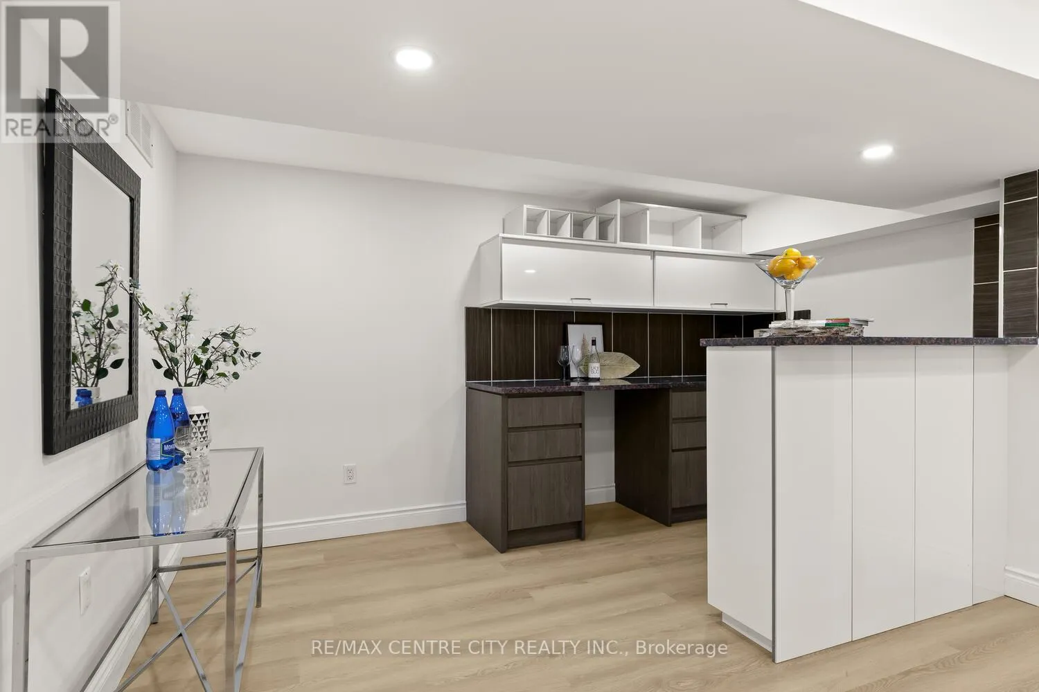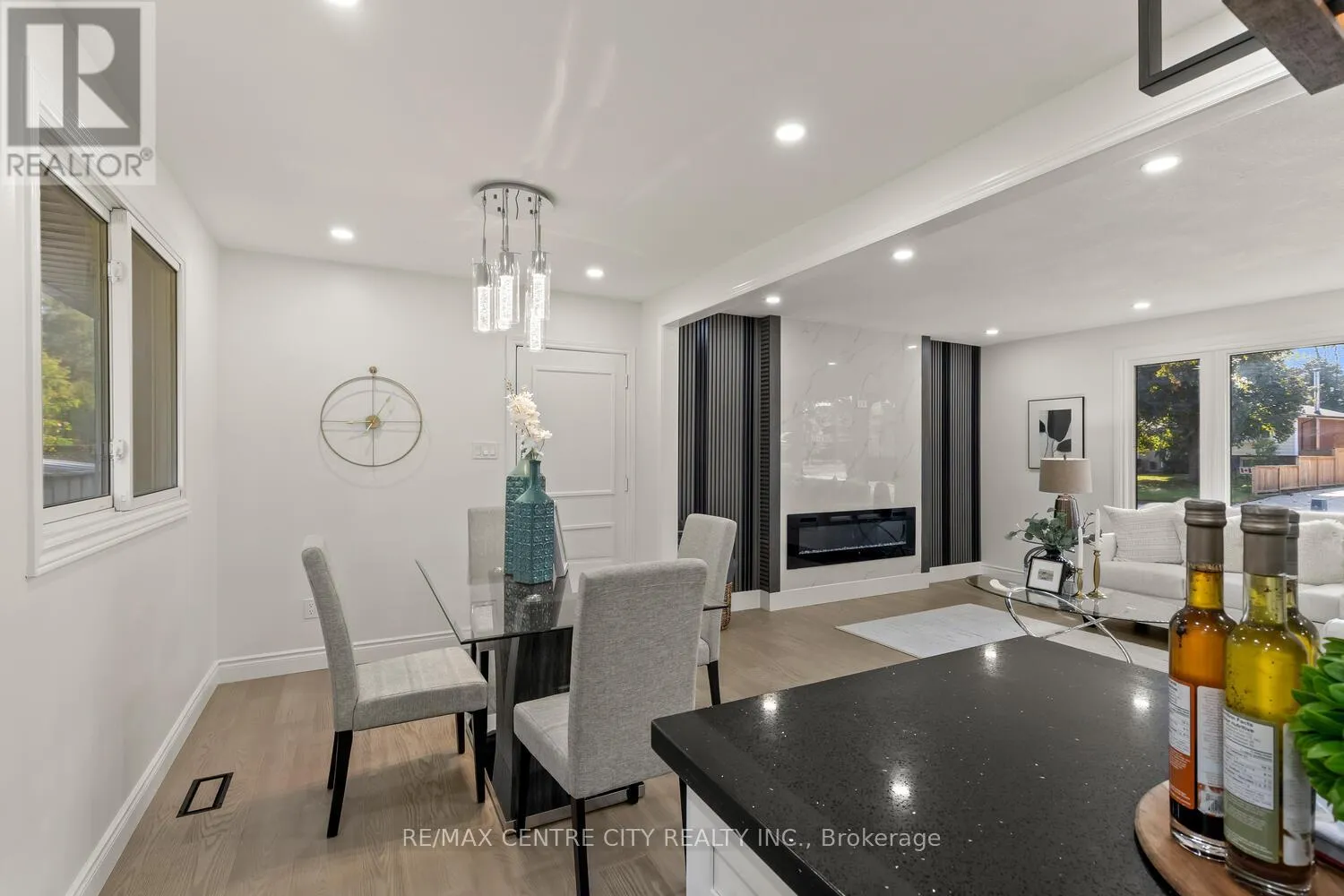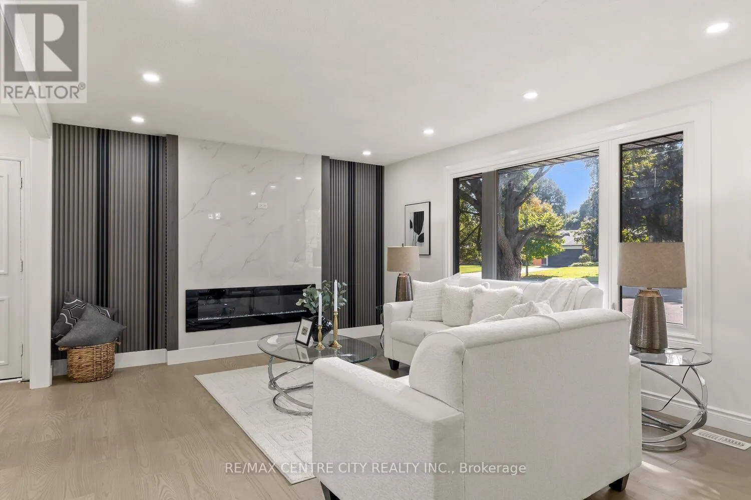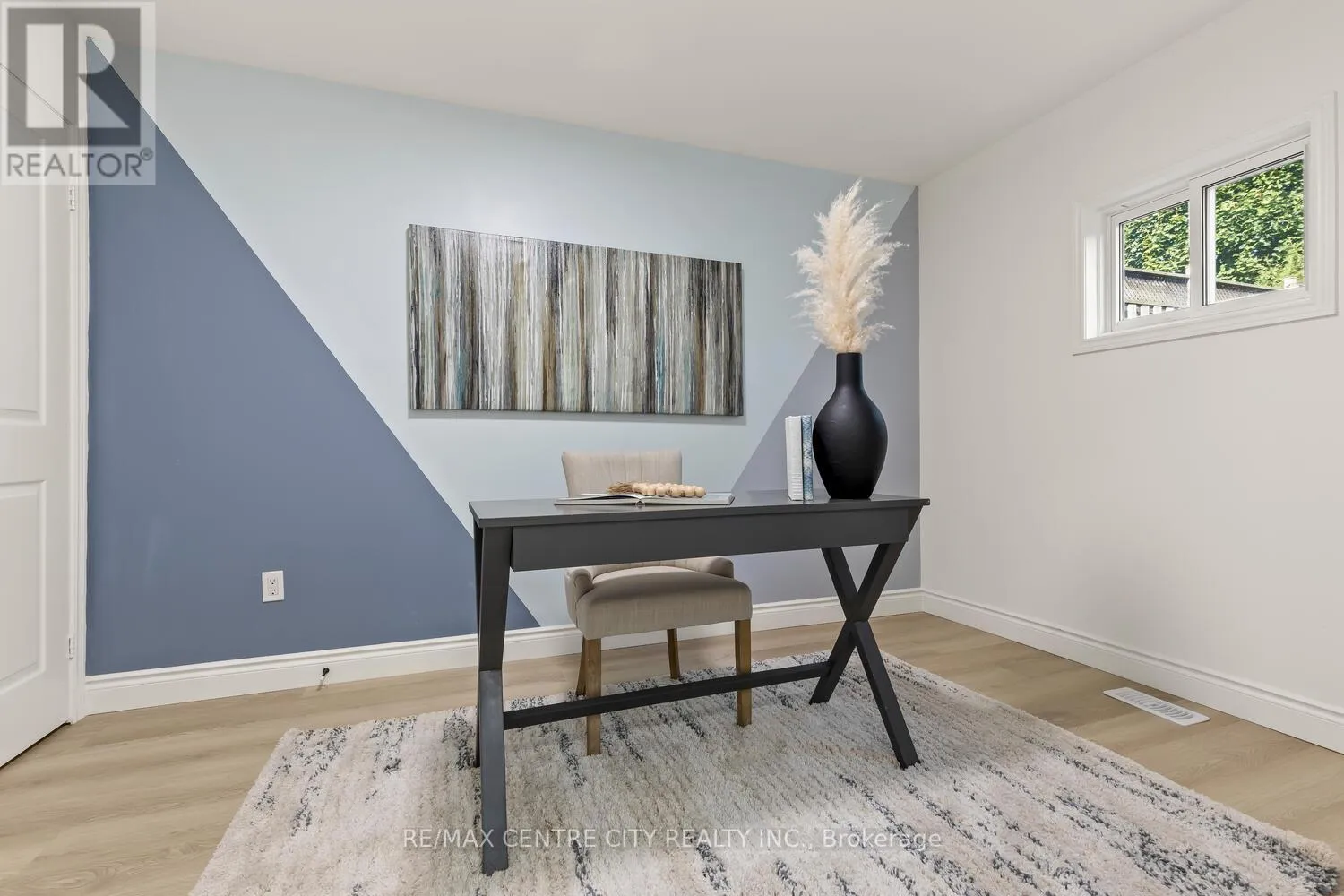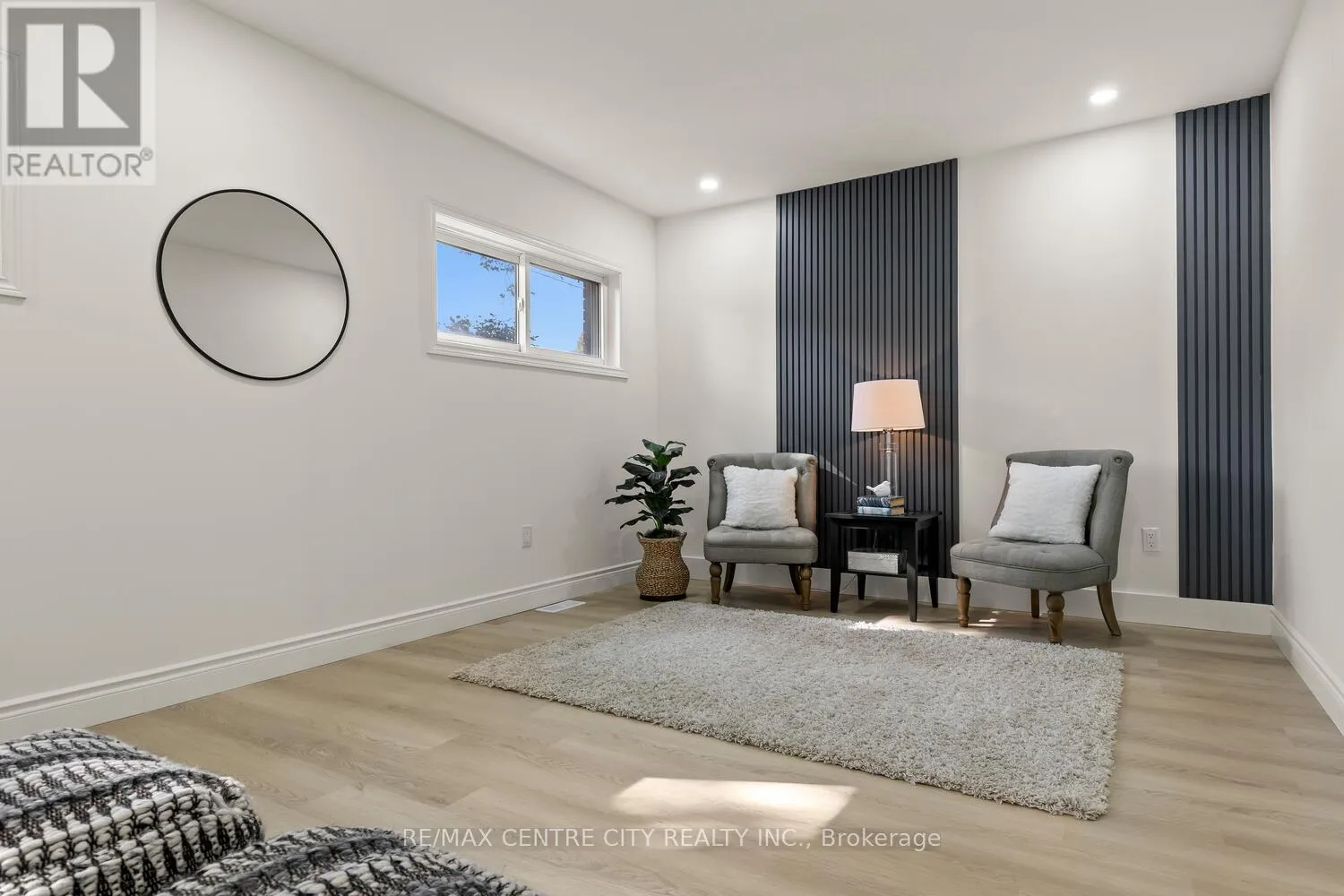 Cross Streets: Field & Monterey. ** Directions: North Side Field Road between Monterey & Outer. Wow! It's like new! Stunning, fully renovated all brick 4 Level Split in desirable Lambeth on a quiet street, huge 75 x 135' (approximately 1/4 acre) fully fenced lot with private patio & rear yard & attached single garage. Approximately 2,012 sq. ft. of luxury living finished on all 4 levels! Newer doors & windows & top quality engineered hardwood flooring on upper & the dazzling open concept main floor which features spacious entry, large living room with striking electric fireplace & a dazzling white kitchen with oversized quartz island/breakfast bar, quartz counters & a spacious eating/dining area. Gorgeous upper main bathroom with a luxurious shower panel system with rainfall head & body jets. 3rd Level has separate entrance at rear, 2 piece bath, 4th bedroom or den & a spacious, bright family room with large windows with south exposure. 4th Level/Lower provides even more living space, possible suite & would be ideal for live at home teens, extended family or even a border to assist with mortgage payments if necessary: this level has laundry facilities, another full 3 piece bath with shower, a beautiful bar area or kitchenette, an additional office/den with potential as 5th bedroom as well as furnace & storage area. Excellent School District as well. Act fast! (id:27476)