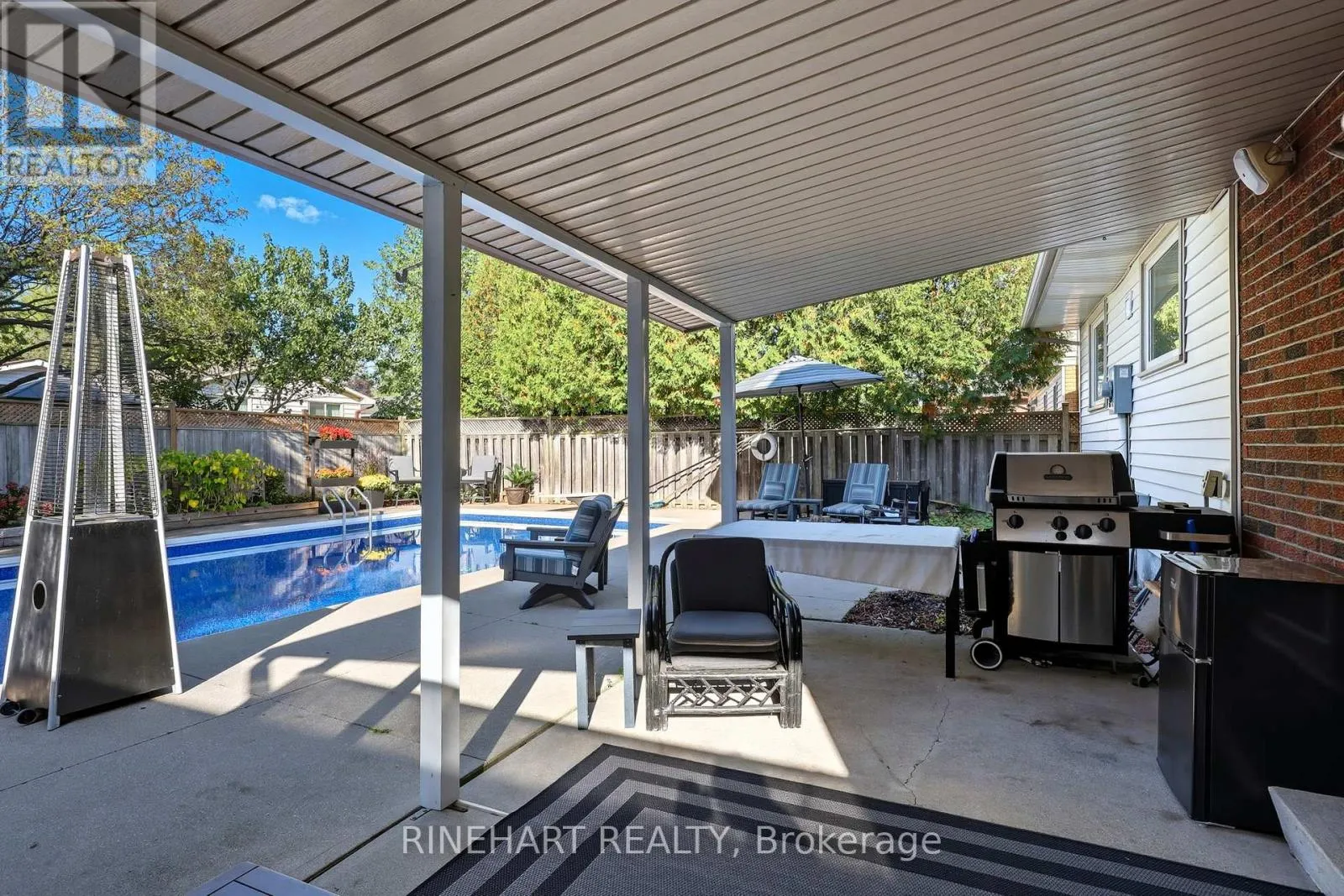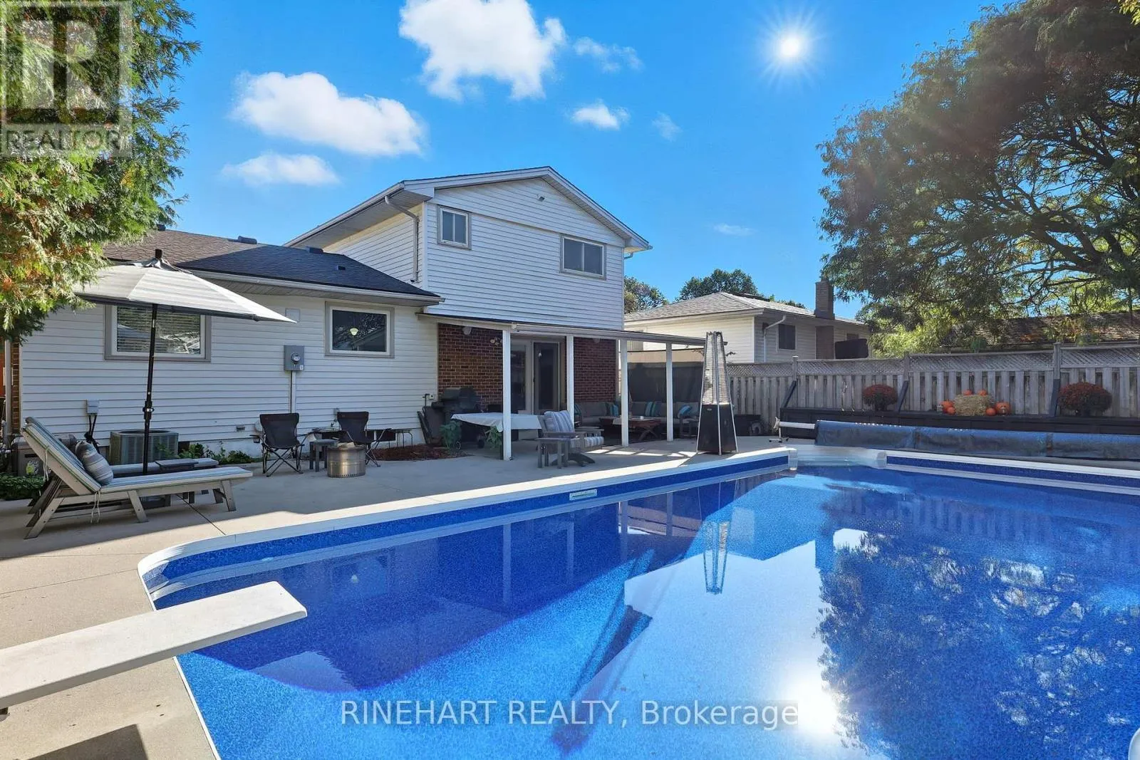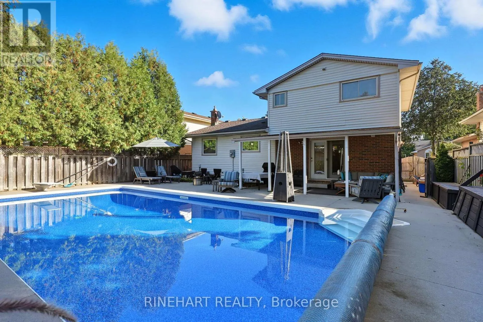 Cross Streets: Jalna Blvd. ** Directions: Head West on Bradley Ave, turn left on Jalna Blvd, turn right onto Alayne Cres. Welcome to 10 Alayne Crescent, a lovingly maintained side split set on a private 50 by 100 foot lot in the heart of White Oaks. This home brings together comfort, convenience, and a setting that makes daily life easy and enjoyable. The main floor greets you with a bright living room filled with natural light, hardwood flooring, and a welcoming flow into the dining area and kitchen. With a centre island, stainless steel appliances, tile backsplash, and plenty of cabinet space, the kitchen is ready for everyday meals and family gatherings. A nearby family room adds even more space for relaxing or entertaining, with walkout access to the backyard. A two piece bathroom and inside entry to the garage complete this level. Upstairs you will find two bedrooms, a versatile office that can also serve as a third bedroom, and a spacious five piece bathroom. The lower level offers both finished and unfinished space, including a home gym, laundry, and storage. The electrical system has been updated with a secondary panel that allows essential items to run from a portable generator. The garage features a new window with a transferable lifetime warranty, while upgraded trim and doors add a sense of care throughout. Step into the backyard and enjoy a private retreat. A covered patio provides shade and comfort, while the in-ground salt water pool has been refreshed with a new chlorinator system along with an updated heater, liner, and pump. Surrounded by poured concrete, mature landscaping, and a fully fenced yard, it is the perfect space to relax, entertain, and create lasting memories. Living here means being within walking distance to White Oaks Mall, the library, community centre, and great restaurants, with nearby parks, trails, and the Westminster Ponds conservation area only minutes away. This is a home that offers peace of mind, a backyard oasis, and a location that keeps everything close at hand, so don't miss out and book a showing today! (id:27476)