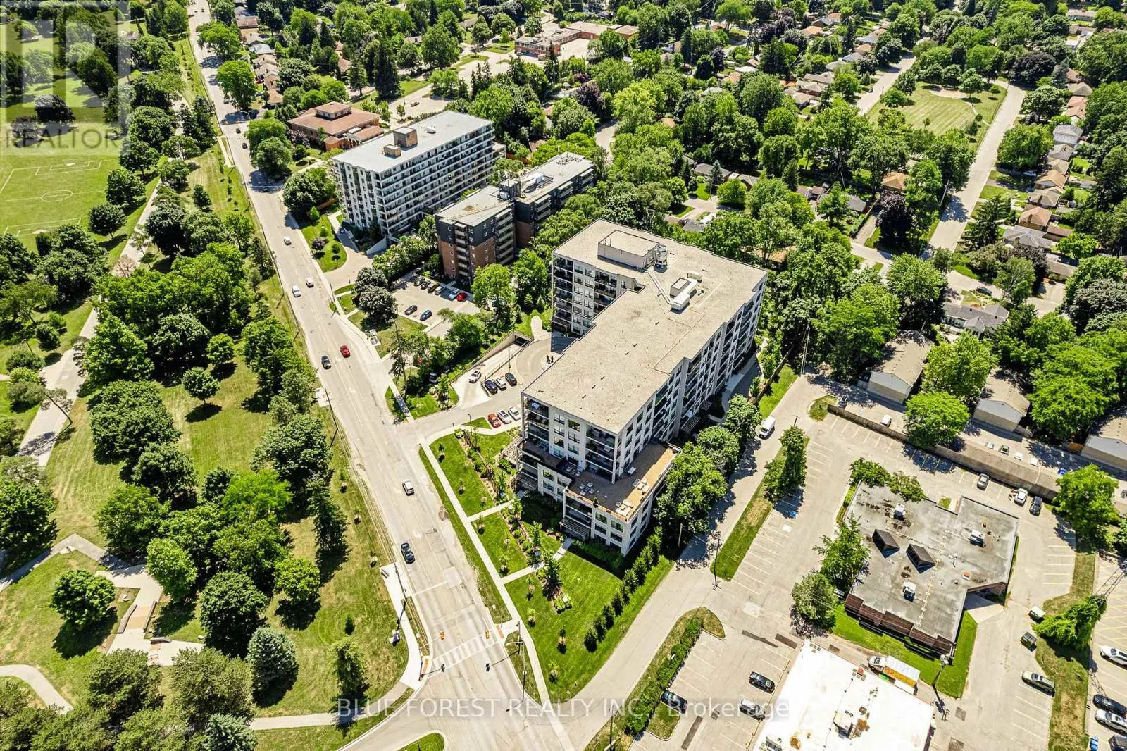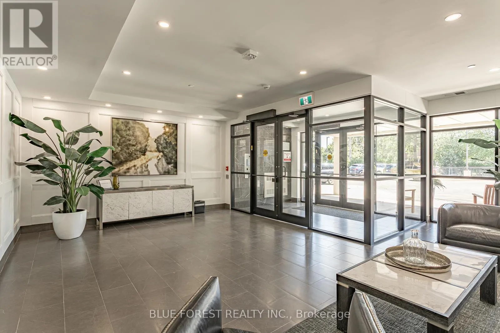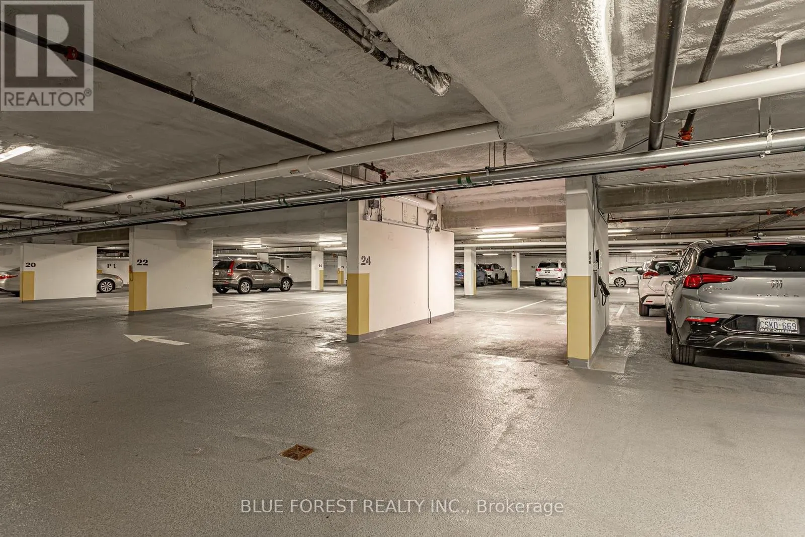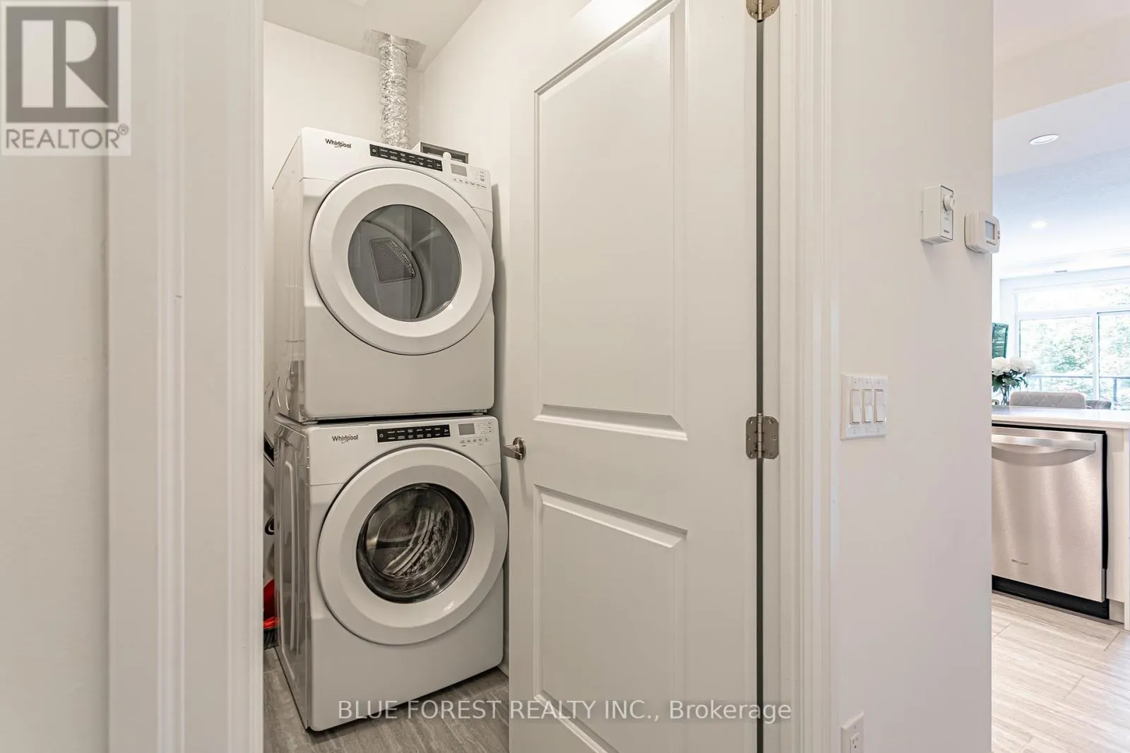 Cross Streets: Boler Road and Commissioners Rd, W. ** Directions: Commissioners Road West toward Byron. Stylish and modern 6-year-old condo perfectly situated across from the scenic Springbank Park in highly sought-after Byron. The bright, contemporary kitchen is thoughtfully designed for both style and function, featuring crisp white cabinetry, stainless steel appliances, quartz countertops, tile flooring, and a convenient breakfast bar that opens to the main living area. The open-concept layout flows effortlessly into the dining and living spaces, finished with warm laminate flooring and anchored by a sleek electric fireplace. The South facing unit enjoys sunshine throughout most of the day, creating a warm and inviting atmosphere year round. Step out onto your private balcony, surrounded by mature trees, an ideal spot to enjoy morning coffee or unwind in peace. The spacious primary bedroom boasts a professionally designed walk-in closet and large windows that flood the room with natural light. A versatile den provides the perfect flex space for a home office, guest room, or reading nook. The oversized 5-piece bathroom is both elegant and functional, offering double sinks, quartz countertops, large tub, and a glass-enclosed shower. Additional features include in-suite laundry, owned underground parking space, and a private storage locker. Residents enjoy exceptional amenities, including a stylish party room with pool table, kitchen and lounge area; a fully equipped fitness room, two outdoor patios, a guest suite, and even a private golf simulator room. Ample visitor parking. Enjoy direct access to the park with walking trails along the Thames River. Walking distance to shopping, restaurants, and bus stop. For those avid skiers, Boler Mountain is just minutes away. Condo fees include heating, air conditioning, water, building insurance, and outdoor maintenance making for effortless living in a truly exceptional location. (id:27476)