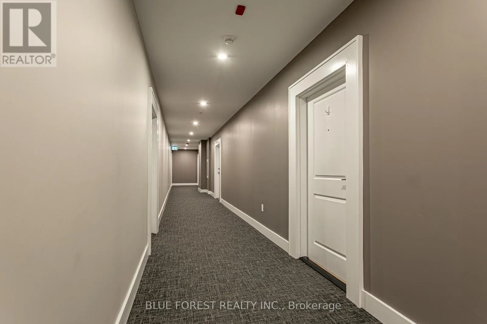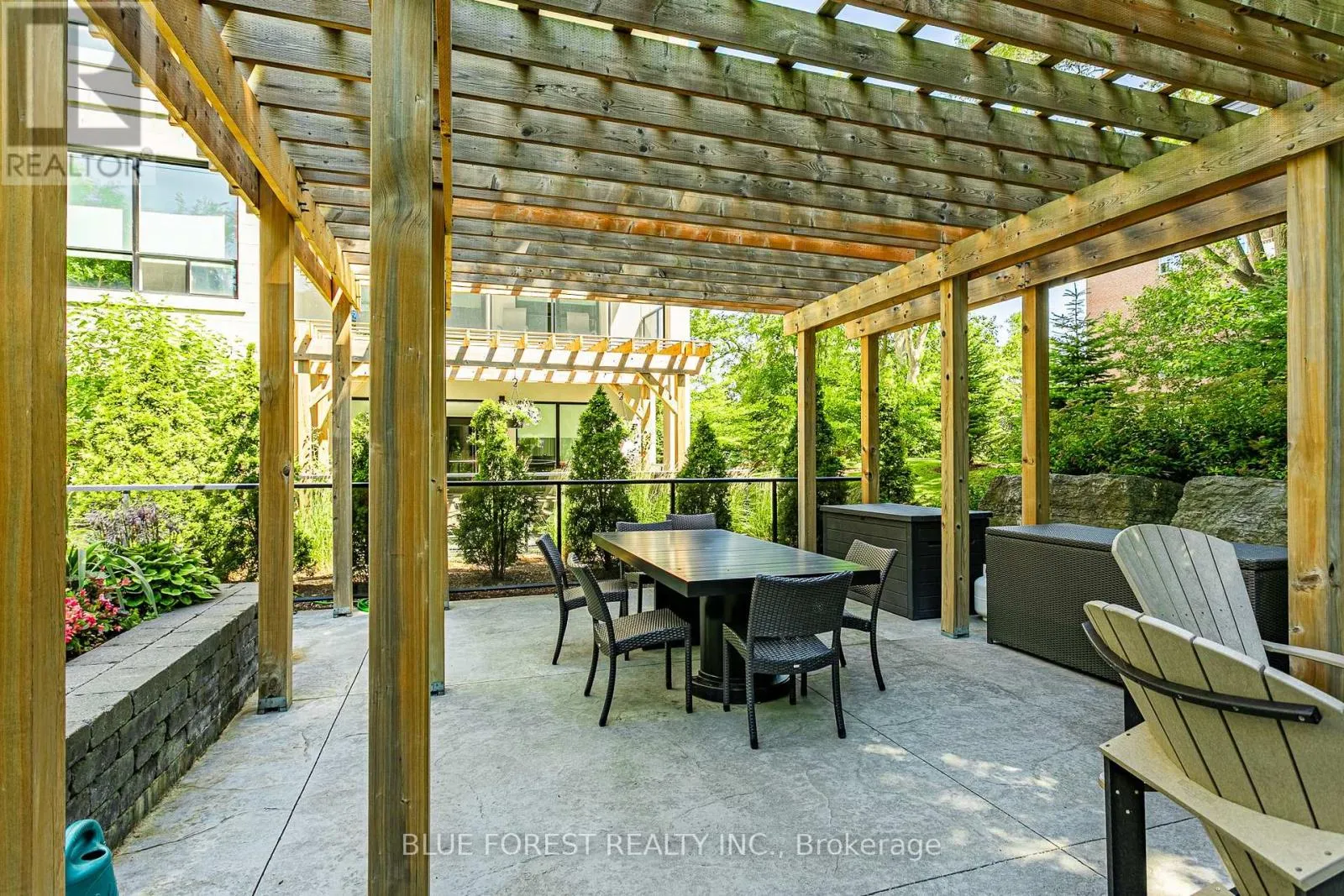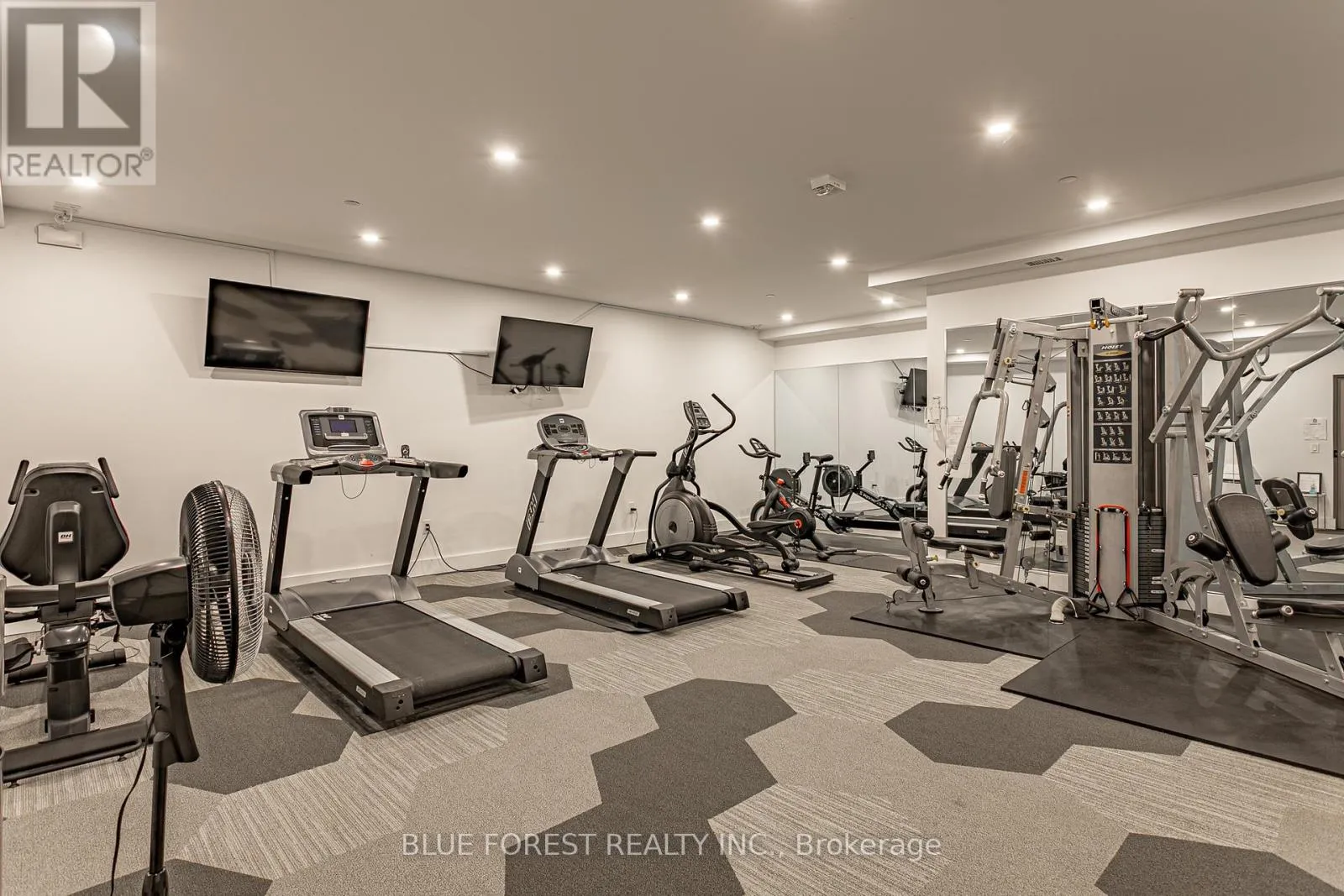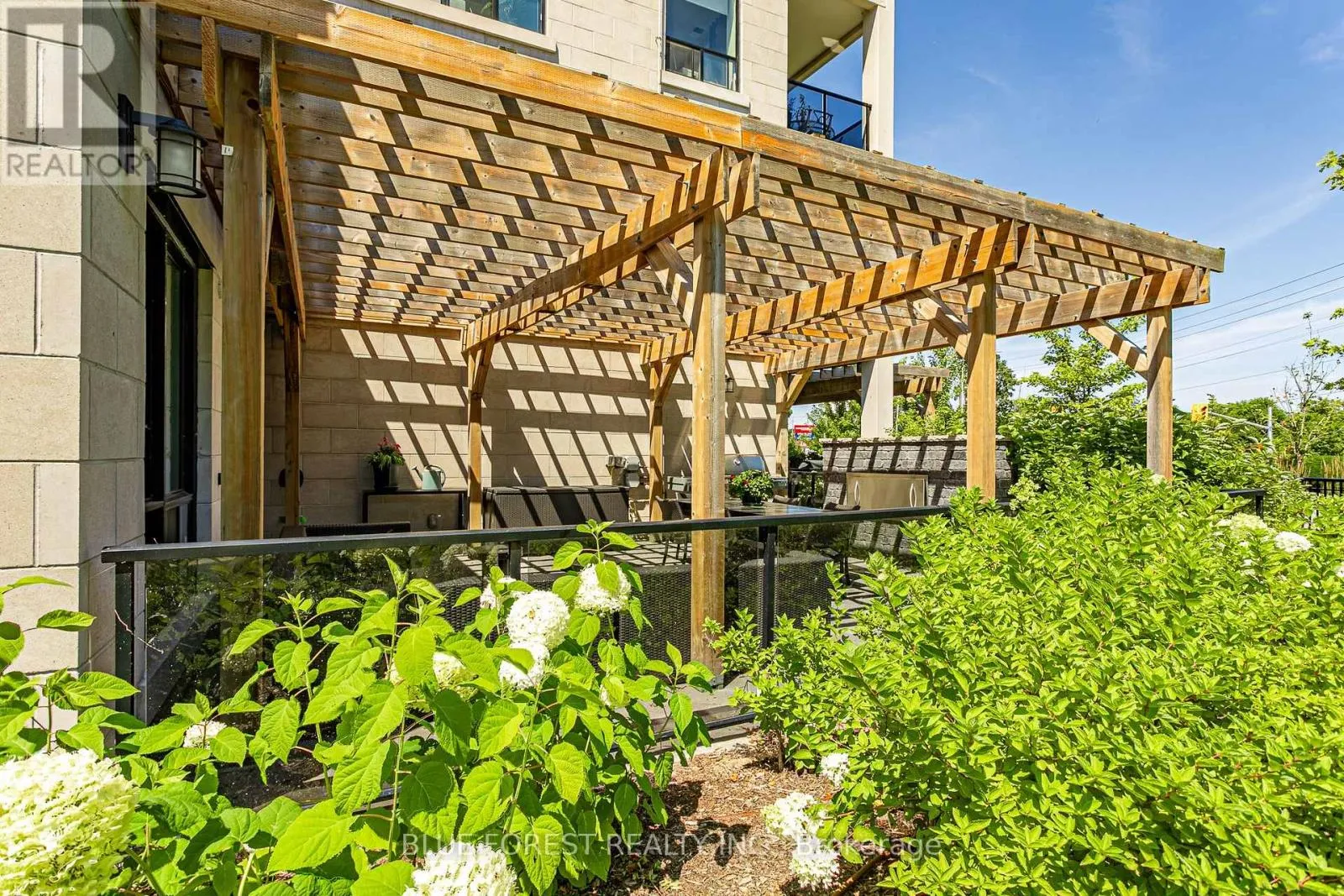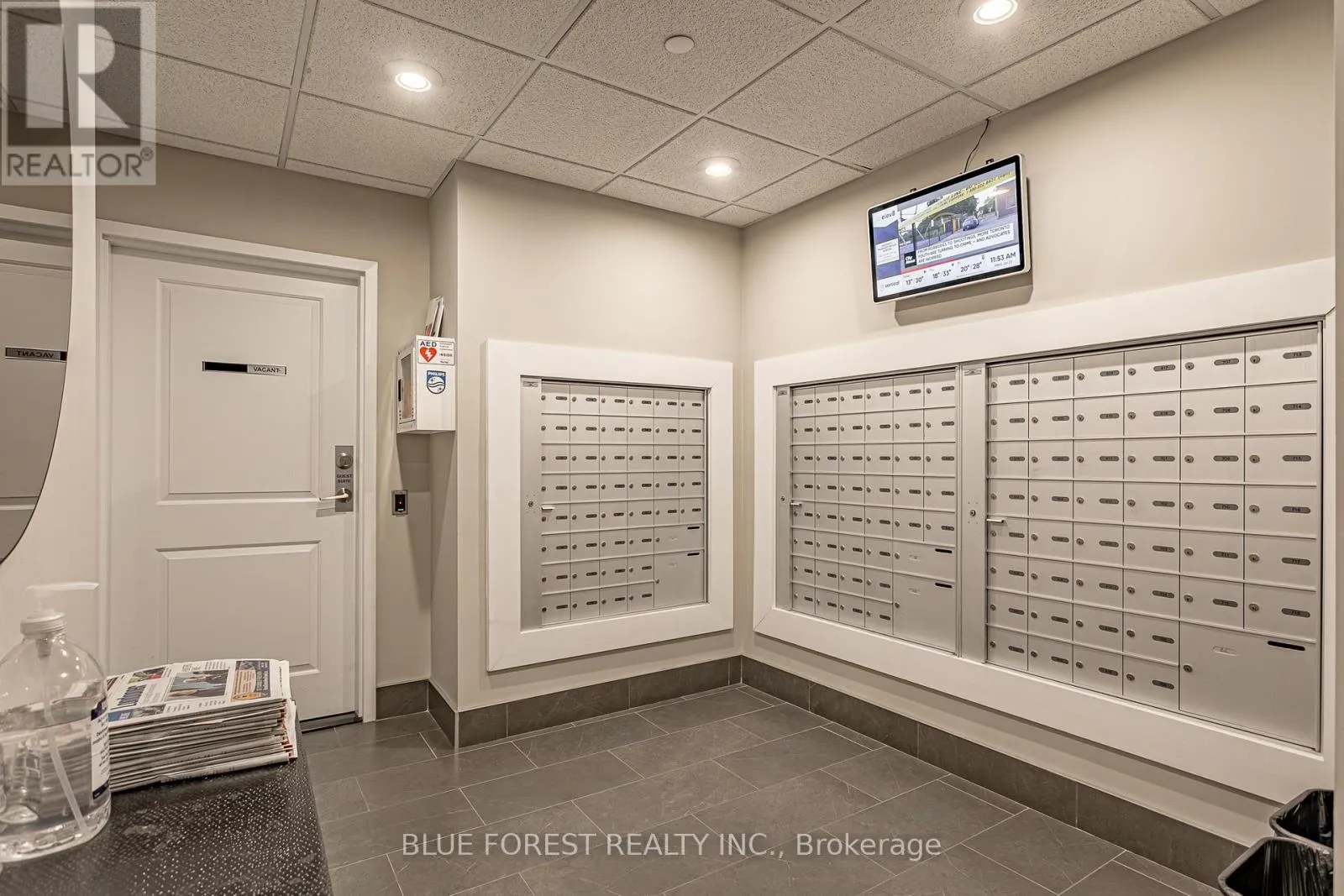 Cross Streets: Boler Road and Commissioners Rd, W. ** Directions: Commissioners Road West toward Byron. Stylish and modern 6-year-old condo perfectly situated across from the scenic Springbank Park in highly sought-after Byron. The bright, contemporary kitchen is thoughtfully designed for both style and function, featuring crisp white cabinetry, stainless steel appliances, quartz countertops, tile flooring, and a convenient breakfast bar that opens to the main living area. The open-concept layout flows effortlessly into the dining and living spaces, finished with warm laminate flooring and anchored by a sleek electric fireplace. The South facing unit enjoys sunshine throughout most of the day, creating a warm and inviting atmosphere year round. Step out onto your private balcony, surrounded by mature trees, an ideal spot to enjoy morning coffee or unwind in peace. The spacious primary bedroom boasts a professionally designed walk-in closet and large windows that flood the room with natural light. A versatile den provides the perfect flex space for a home office, guest room, or reading nook. The oversized 5-piece bathroom is both elegant and functional, offering double sinks, quartz countertops, large tub, and a glass-enclosed shower. Additional features include in-suite laundry, owned underground parking space, and a private storage locker. Residents enjoy exceptional amenities, including a stylish party room with pool table, kitchen and lounge area; a fully equipped fitness room, two outdoor patios, a guest suite, and even a private golf simulator room. Ample visitor parking. Enjoy direct access to the park with walking trails along the Thames River. Walking distance to shopping, restaurants, and bus stop. For those avid skiers, Boler Mountain is just minutes away. Condo fees include heating, air conditioning, water, building insurance, and outdoor maintenance making for effortless living in a truly exceptional location. (id:27476)