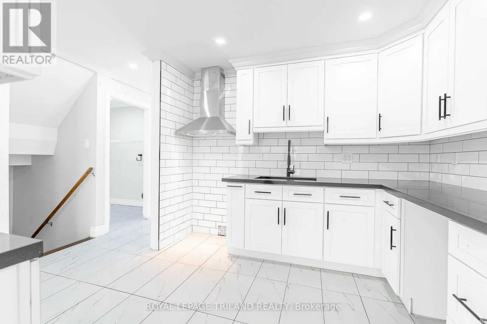 Cross Streets: Southdale Rd E and Upper Queen St. ** Directions: Southdale Rd E to Nixon Ave (turns into Upper Queen St), Clarendon is just past Ferndale Ave. Step into this beautifully renovated home and prepare to be impressed - every detail has been thoughtfully updated from top to bottom with no expense spared. Featuring brand new flooring and elegant crown moulding throughout, a new furnace and AC, and not one but two stunning kitchens, this home is truly move-in ready. The main level welcomes you with a stylish powder room, a spacious foyer, and a dream kitchen perfect for creating memorable meals, which can be enjoyed in the cozy dining area or the comfortable family room with direct access to a private backyard. Upstairs, you will find three generously sized bedrooms and a full, modern bathroom. The fully finished basement offers a fantastic additional living space, a two-piece bath, a rec room with plenty of seating. Nestled in a quiet, family-friendly neighborhood and conveniently located near all amenities, this property is a must-see and sure to leave a lasting impression. (id:27476)
