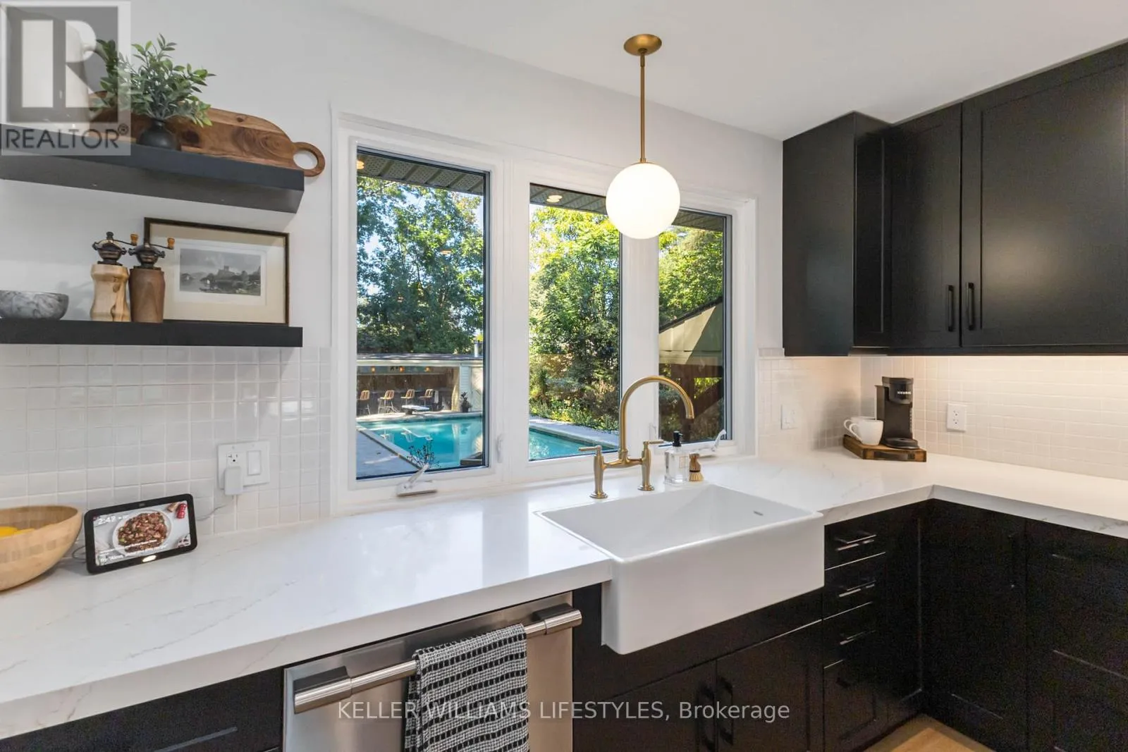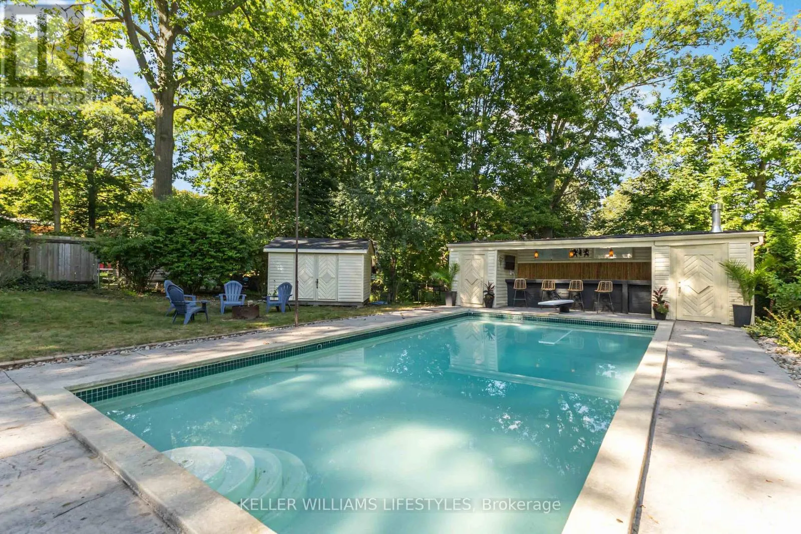 Cross Streets: Timber Drive & Park Lane Cres. ** Directions: From Byron Baseline, turn onto Timber Dr, Right onto Park Lane Cres, then onto Park Lane Court. Home is on the right. An Incredibly Rare Opportunity in Beautiful Byron Village Welcome to 29 Park Lane Court, Tucked within the serene beauty of Warbler Woods, this custom-built residence is more than a home its a hidden retreat. Designed and built by Eadie &Wilcox for one of their own senior team members, this property sits proudly between the founders personal estates. Set on an ultra private lot, surrounded by mature trees it feels like your own forest oasis in the heart of the Village. The home is perfectly designed for family living and entertaining, with an oversized poured concrete patio, covered outdoor kitchen, and a resort-style 35 x 17 heated concrete pool complete with pool house, private bar, change room, and storage sheds. The driveway easily accommodates eight vehicles, welcoming gatherings both large and small. The garage is currently configured as a finished workshop, perfect for a handyman or a man cave. This 4-bedroom, 3-bathroom home blends timeless design with modern comfort. Every detail has been thoughtfully updated to provide peace of mind for years to come. Inside this home features extensive upgrades making it a one of a kind. A stunning brand new designer kitchen 2024 &Professional grade appliances, 3 Fully renovated bathrooms, New washer & dryer, New roof 2025,New electrical panel upgrade 2024, New hot water furnace 2022(Radiant baseboard Heating), New AC and air-handler system(Forced Air AC), New pool heater & Line Upgrade 2024.Location Highlights: Steps to Warbler Woods ESA & trails & Grandview Park. Minutes walk to Springbank Park, Boler Mountain & Byron Village shops, cafés, and restaurants. This is more than a home its a once-in-a-lifetime chance to own a true Byron Village landmark property. (id:27476)