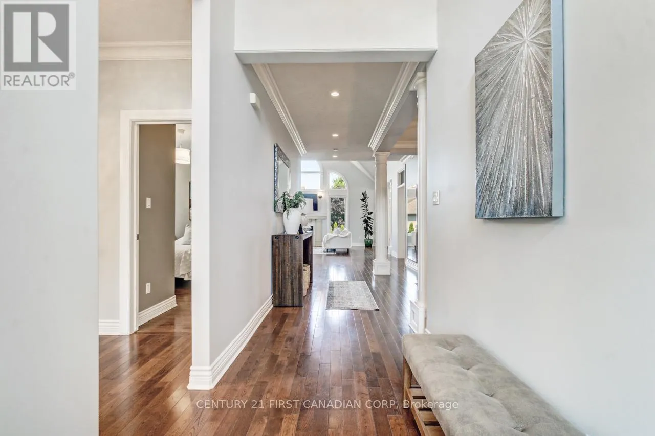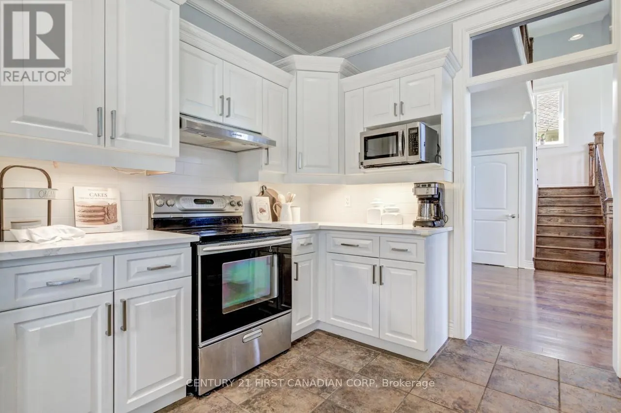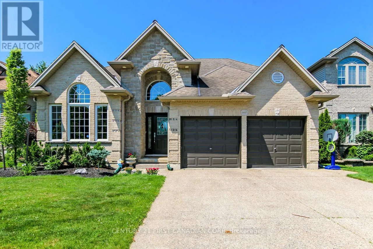 Cross Streets: Shore Road. ** Directions: Turn Right off Kains to Shore Road, then Left onto Kains Wood. Welcome to 1447 Kains Woods Terrace a truly exceptional all-brick residence in the heart of Riverbend, just steps from West Five and top-rated schools. Offering over 3,000 sq. ft. of beautifully finished living space, this 4+2-bedroom, 4-bath, and 2-kitchen home seamlessly blends timeless craftsmanship with modern comfort, making it ideal for families of all sizes.The main floor boasts gleaming hardwood and ceramic floors, a formal dining room, and a stunning updated kitchen with quartz countertops, a sunlit breakfast area, and custom blinds. From here, step onto your custom-built covered deck featuring louvered privacy shades, a built-in gas line, and a lower-tier deck perfect for hosting and relaxing year-round. Soaring vaulted ceilings elevate the great room and front bedroom/den, while the upper-level loft provides a private retreat. The spacious primary suite includes a luxury ensuite, and a secondary bedroom enjoys its own private bathroom--ideal for teens or guests. Two additional main-floor bedrooms and a full bath make the layout ideal for multigenerational living. The fully finished lower level offers remarkable flexibility with a second kitchen, expansive living area, two additional bedrooms, a full bath, and is perfect for in-laws, guests, or extended family.Custom trim work, thoughtful upgrades, and incredible attention to detail set this home apart--all at a price well below replacement value. Don't miss your chance to own one of Riverbend's finest homes (id:27476)