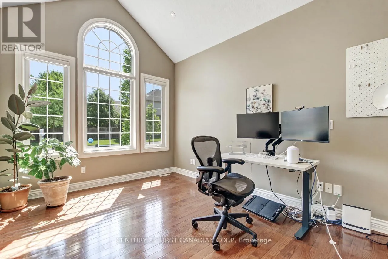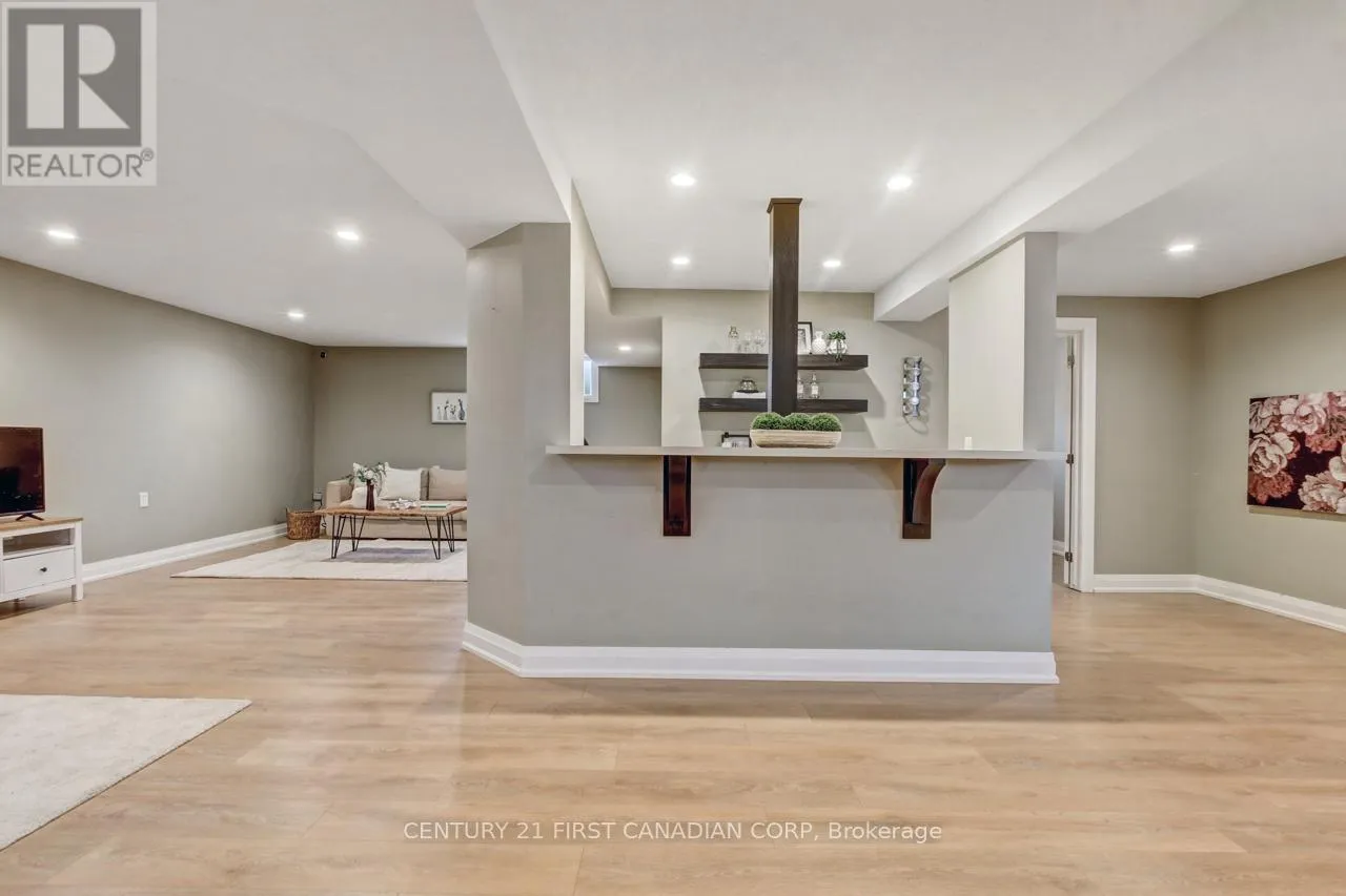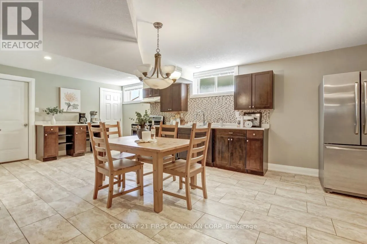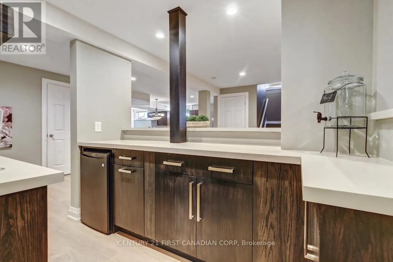 Cross Streets: Shore Road. ** Directions: Turn Right off Kains to Shore Road, then Left onto Kains Wood. Welcome to 1447 Kains Woods Terrace a truly exceptional all-brick residence in the heart of Riverbend, just steps from West Five and top-rated schools. Offering over 3,000 sq. ft. of beautifully finished living space, this 4+2-bedroom, 4-bath, and 2-kitchen home seamlessly blends timeless craftsmanship with modern comfort, making it ideal for families of all sizes.The main floor boasts gleaming hardwood and ceramic floors, a formal dining room, and a stunning updated kitchen with quartz countertops, a sunlit breakfast area, and custom blinds. From here, step onto your custom-built covered deck featuring louvered privacy shades, a built-in gas line, and a lower-tier deck perfect for hosting and relaxing year-round. Soaring vaulted ceilings elevate the great room and front bedroom/den, while the upper-level loft provides a private retreat. The spacious primary suite includes a luxury ensuite, and a secondary bedroom enjoys its own private bathroom--ideal for teens or guests. Two additional main-floor bedrooms and a full bath make the layout ideal for multigenerational living. The fully finished lower level offers remarkable flexibility with a second kitchen, expansive living area, two additional bedrooms, a full bath, and is perfect for in-laws, guests, or extended family.Custom trim work, thoughtful upgrades, and incredible attention to detail set this home apart--all at a price well below replacement value. Don't miss your chance to own one of Riverbend's finest homes (id:27476)