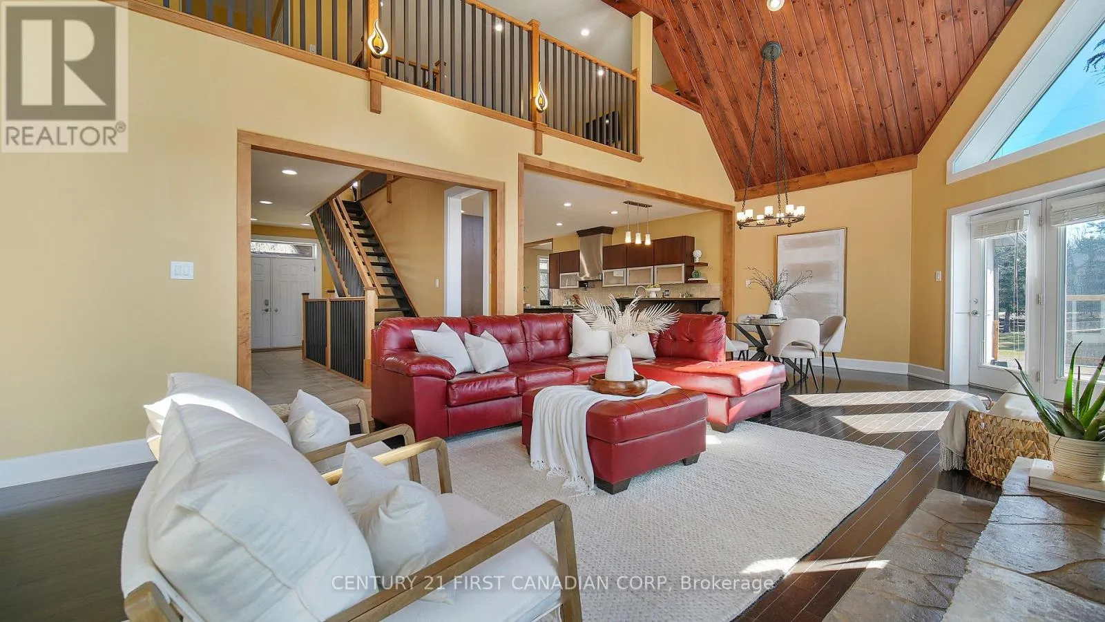 Cross Streets: COMMISSIONERS RD E. ** Directions: Follow ON-401 W to Veterans Memorial Pkwy in London. Take exit 194 from ON-401 W, Follow Veterans Memorial Pkwy to Hamilton Rd, Turn left onto Hamilton. Experience exceptional craftsmanship and modern luxury in this custom-built home, constructed entirely with ICF (Insulated Concrete Form) from the footings to the roof peak for unmatched strength, energy efficiency, and durability. This 5-bedroom, 4-bath home offers over 5,600 sq. ft. of finished living space, an inground saltwater pool (2019), and a 30x50 heated shop, the perfect blend of elegance and practicality. Inside, you'll find heated floors throughout and countless upgrades. The Great Room impresses with soaring 26-ft ceilings, cedar plank accents, and a stunning custom stone fireplace with solid maple mantels. The gourmet kitchen features Italian granite countertops, stainless steel appliances, and custom cabinetry. The Primary Suite is a true retreat, complete with a double-sided fireplace and a spa-inspired ensuite featuring a steam shower and a self-purging Roman tub. Upstairs offers a spacious loft and flex area, plus a bedroom and full bath. The lower level is fully finished with 9-10 ft ceilings, a second kitchen, two bedrooms, and a full bath, ideal for multi-generational living or as an in-law setup. This home truly has it all. Schedule your private showing today to experience this one-of-a-kind property. Full feature booklet available. ** This is a linked property.** (id:27476)