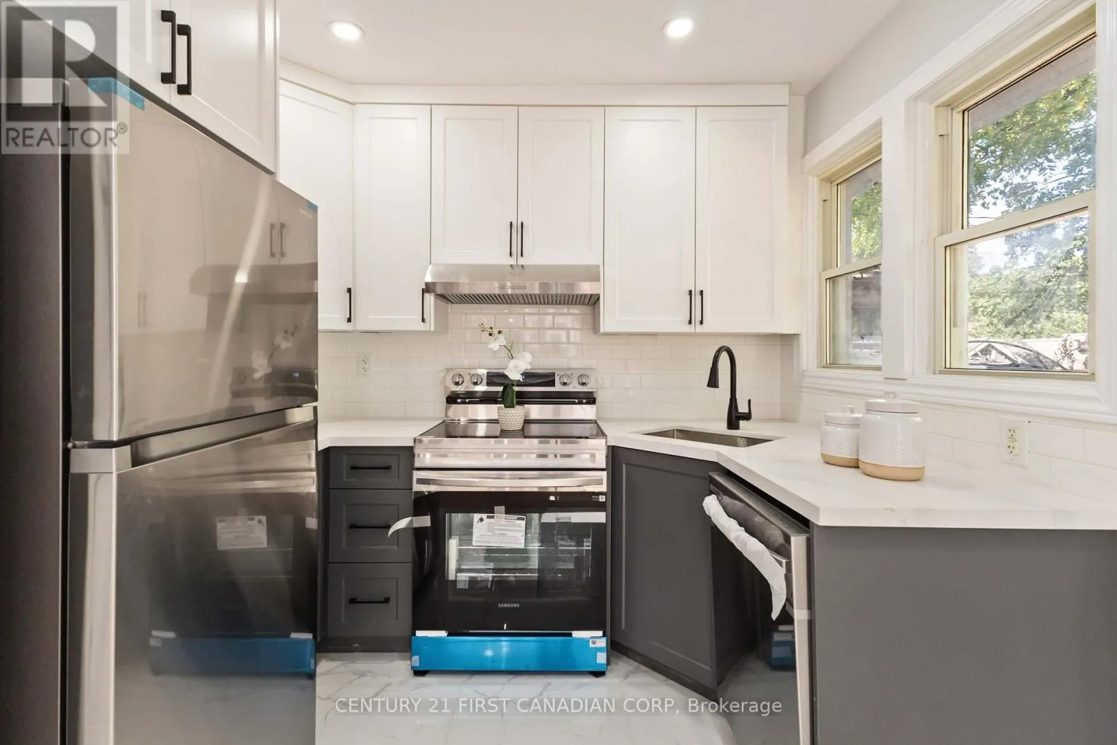 Cross Streets: Wellington Rd. ** Directions: Wellington Rd to Frank Pl and Windsor Cres. Welcome to 122 Windsor Crescent in Londons sought-after Old South neighbourhood. This home has been fully renovated inside and out, making it move-in ready for its next owners. Updates include new windows, roof, doors, furnace, and central air, along with an upgraded electrical panel. The main floor features a brand-new kitchen with modern cabinetry, granite counters, and stainless appliances, plus two bedrooms and a new bathroom. Upstairs offers two additional bedrooms, while the lower level has two more bedrooms, a full bath, and a kitchenette ideal for in-laws, extended family, or guests. The property sits on a deeper lot, giving you extra outdoor space for gardening or entertaining. Combining Old South character with modern finishes, this home offers flexible living and long-term peace of mind in a fantastic location close to parks, schools, shopping, and downtown. (id:27476)