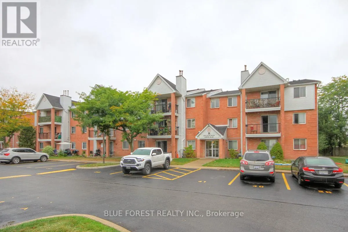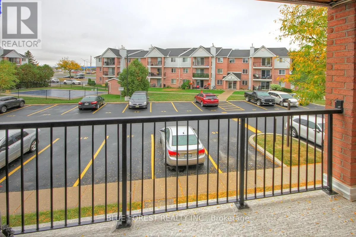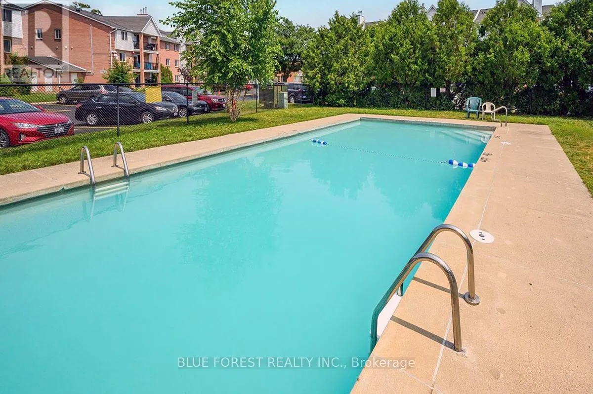 Jalna Blvd & Bradley Ave Welcome to this bright and spacious condo located in the highly sought-after White Oaks neighborhood, directly across from White Oaks Mall! Just minutes from Highway 401/402 and steps to public transit, shopping, dining, schools, and all essential amenities, this location offers unbeatable convenience. Featuring newer carpet throughout, this 3-bedroom, 1.5 bath unit offers a generous layout that's perfect for families, first-time buyers, or investors. Step out onto the private balcony and enjoy unobstructed views of Bradley Avenue and White Oaks Mall a rare and desirable feature. This well-maintained complex features a community pool, ideal for summer enjoyment. Water included in condo fees. (id:27476)