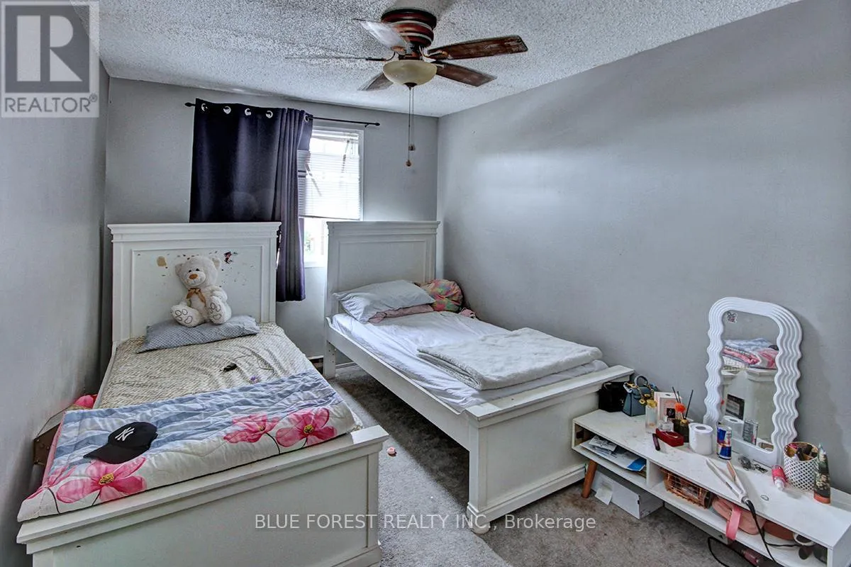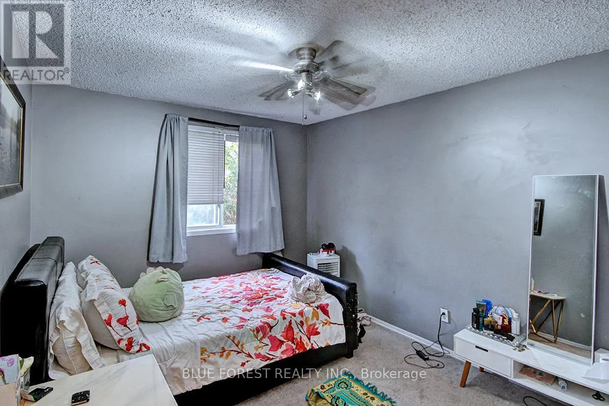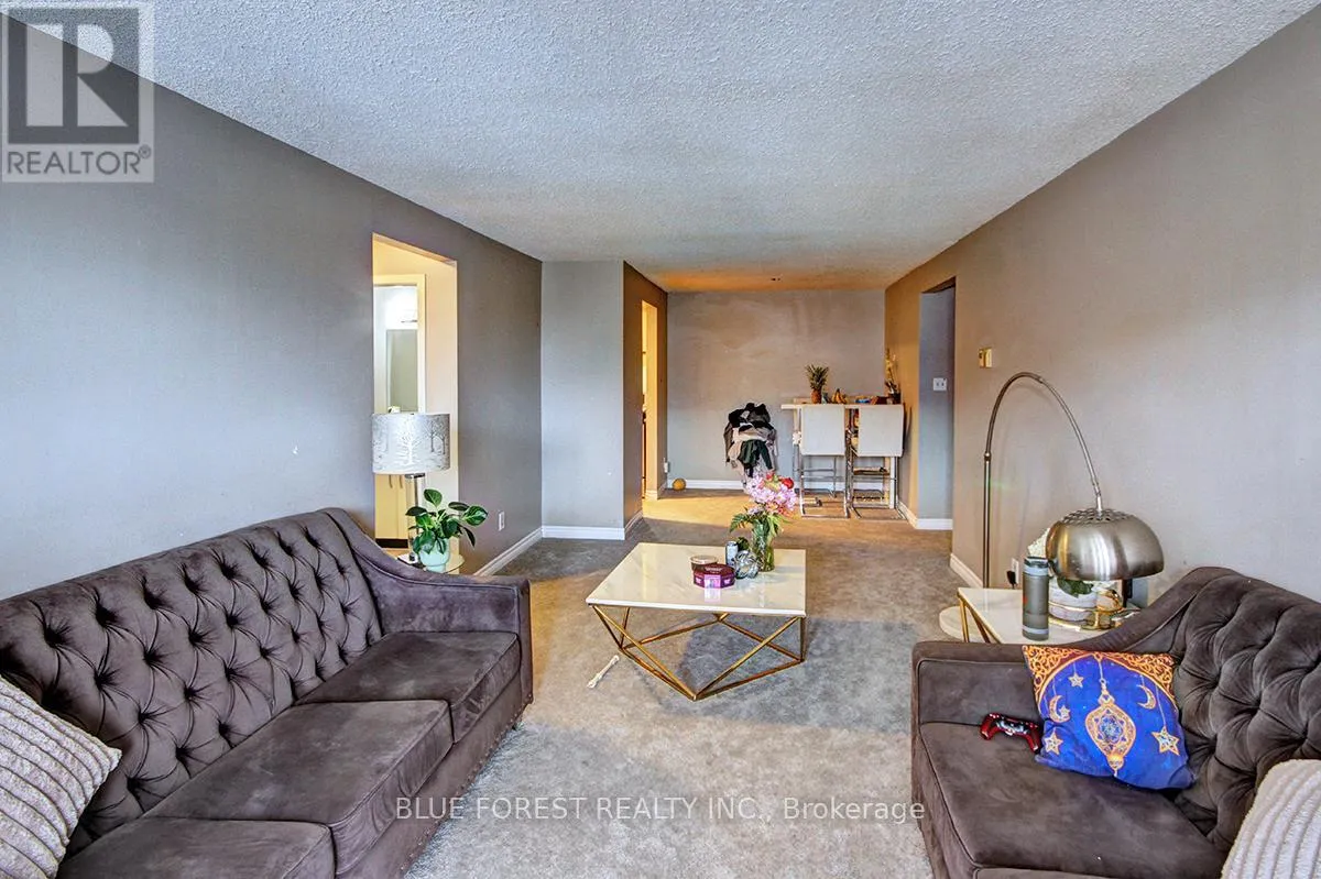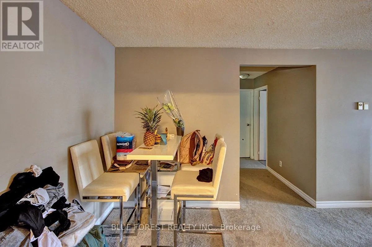 Jalna Blvd & Bradley Ave Welcome to this bright and spacious condo located in the highly sought-after White Oaks neighborhood, directly across from White Oaks Mall! Just minutes from Highway 401/402 and steps to public transit, shopping, dining, schools, and all essential amenities, this location offers unbeatable convenience. Featuring newer carpet throughout, this 3-bedroom, 1.5 bath unit offers a generous layout that's perfect for families, first-time buyers, or investors. Step out onto the private balcony and enjoy unobstructed views of Bradley Avenue and White Oaks Mall a rare and desirable feature. This well-maintained complex features a community pool, ideal for summer enjoyment. Water included in condo fees. (id:27476)