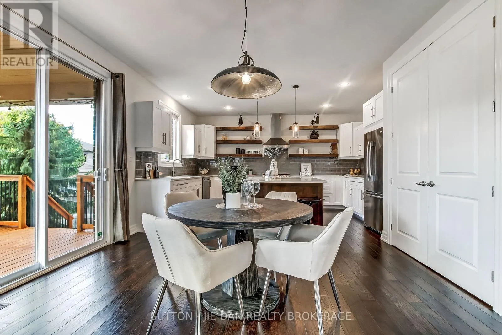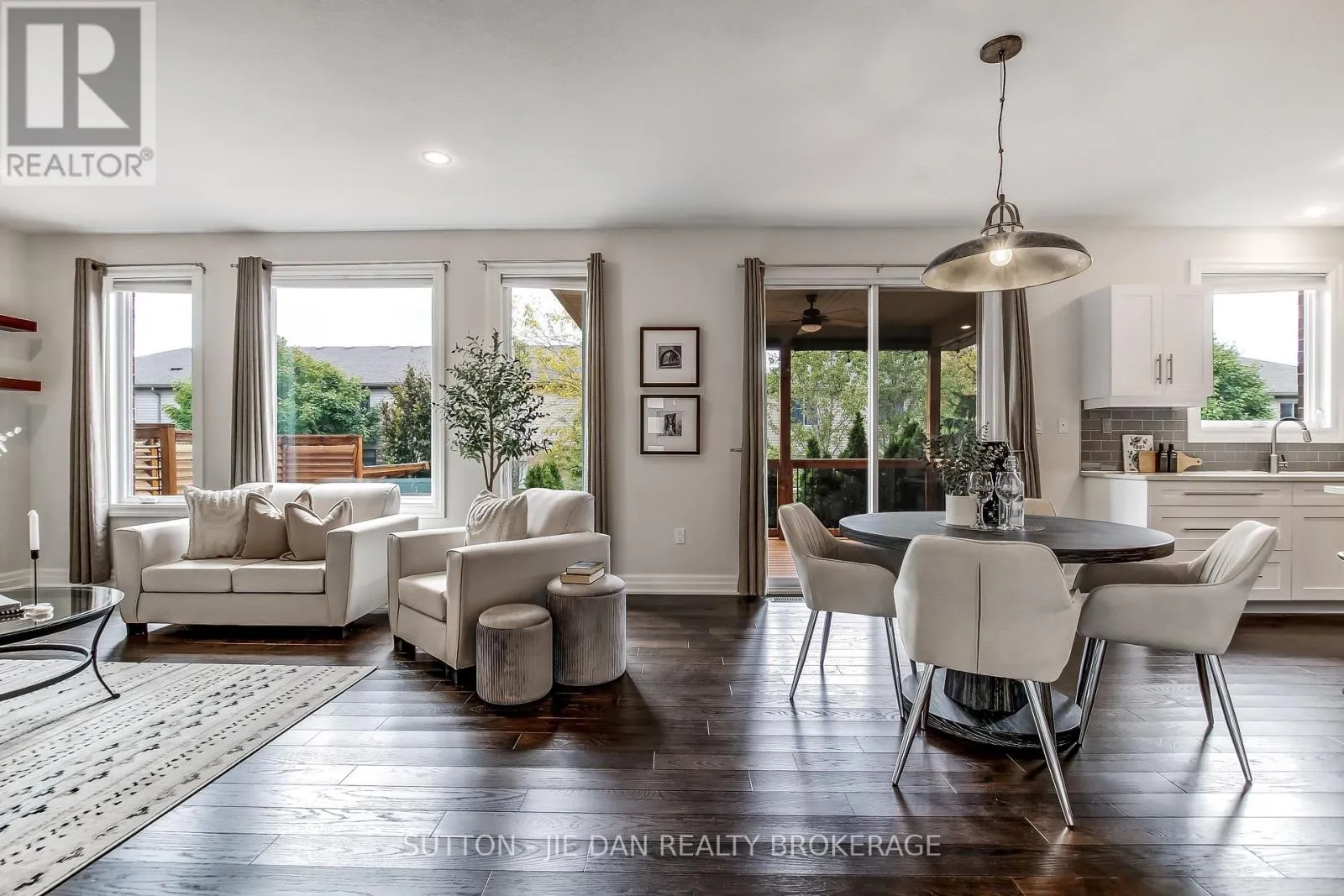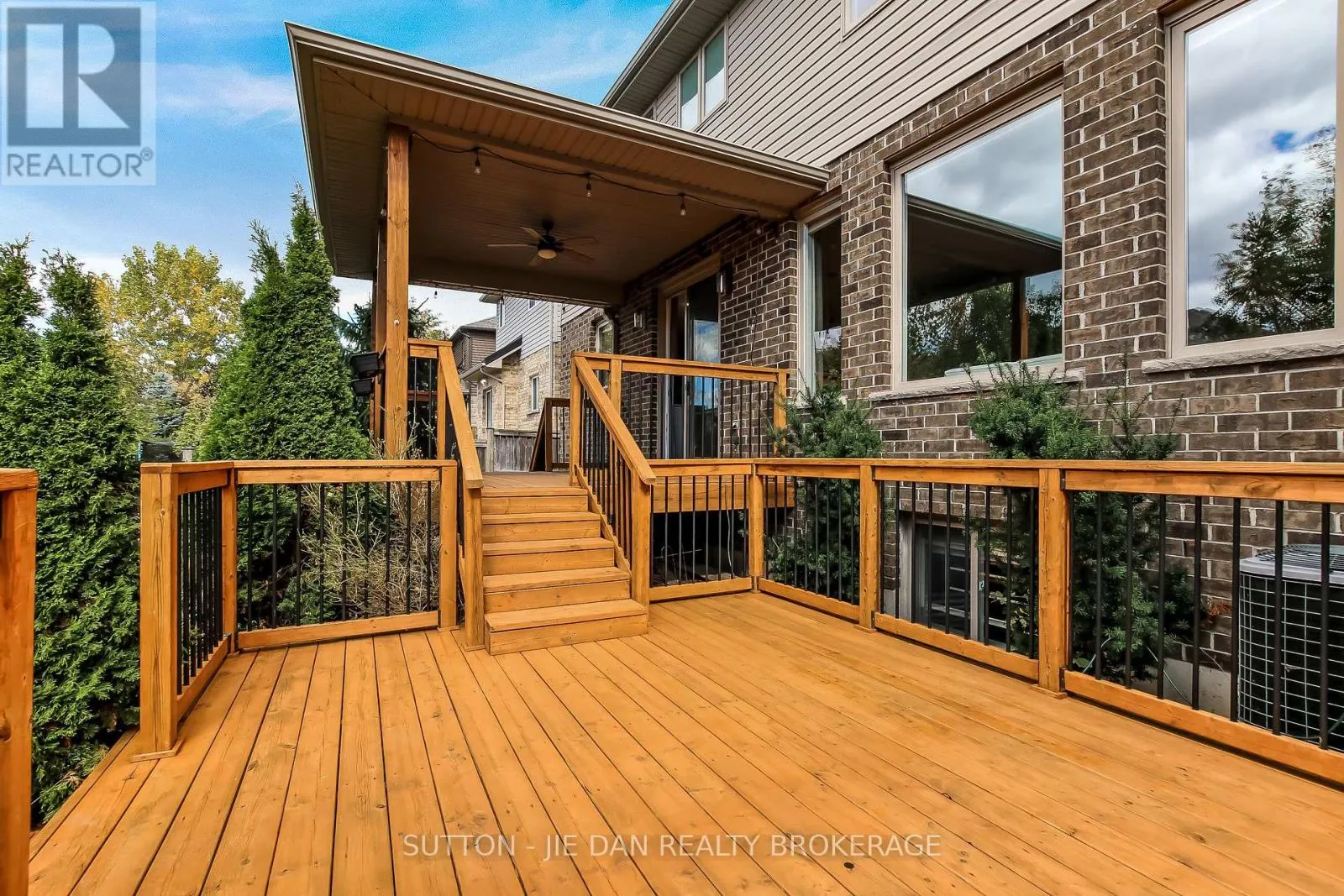 Cross Streets: Oxford Street West to Kains Road to Shore Road to Kains Woods Terrace. ** Directions: SHORE/KAINS. Your search ends here! Discover this exceptional family home in the highly sought-after Riverbend/Hunt Club West community. Ideally located near trails, parks, golf, skiing, shopping, and top restaurants. 2385 SqFt above grade & 899 SqFt finished basement. This 4+1 bedroom, 3.5-bathroom home blends functionality with designer finishes.Step into the welcoming two-story foyer that leads to an inviting main floor layout. The chefs kitchen is a dream for cooking and entertaining, featuring a newer gas stove, quartz counters, large island, drop hood vent, and floating shelves. The bright family room, complete with a gas fireplace and custom floating shelves, is perfect for gatherings, while the front room offers flexible use as a living room, dining area, or home office, enhanced by a stylish plaster accent wall.Outside, enjoy multi-tiered decks designed for privacy and aesthetic appeal, a covered porch with a cozy gazebo feel, a hot tub, and a fire pitall surrounded by lush trees. The primary suite boasts a large walk-in closet and a 5-piece ensuite with a soaker tub, walk-in glass shower, double sinks, and quartz counters. A charming loft-like bedroom over the garage adds character and versatility.The professionally finished basement is thoughtfully designed, featuring a spacious rec room with another gas fireplace, a large bedroom with walk-in closet, and a designer 3-piece bathroom. Practical upgrades include freshly re-laid paver stones in the driveway for years of worry-free maintenance. (id:27476)