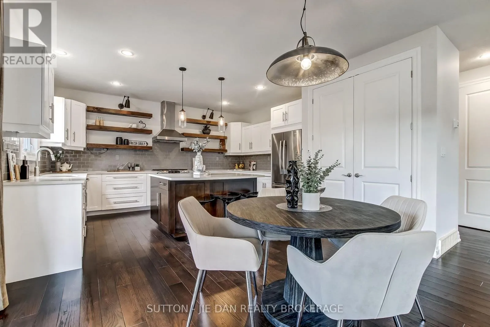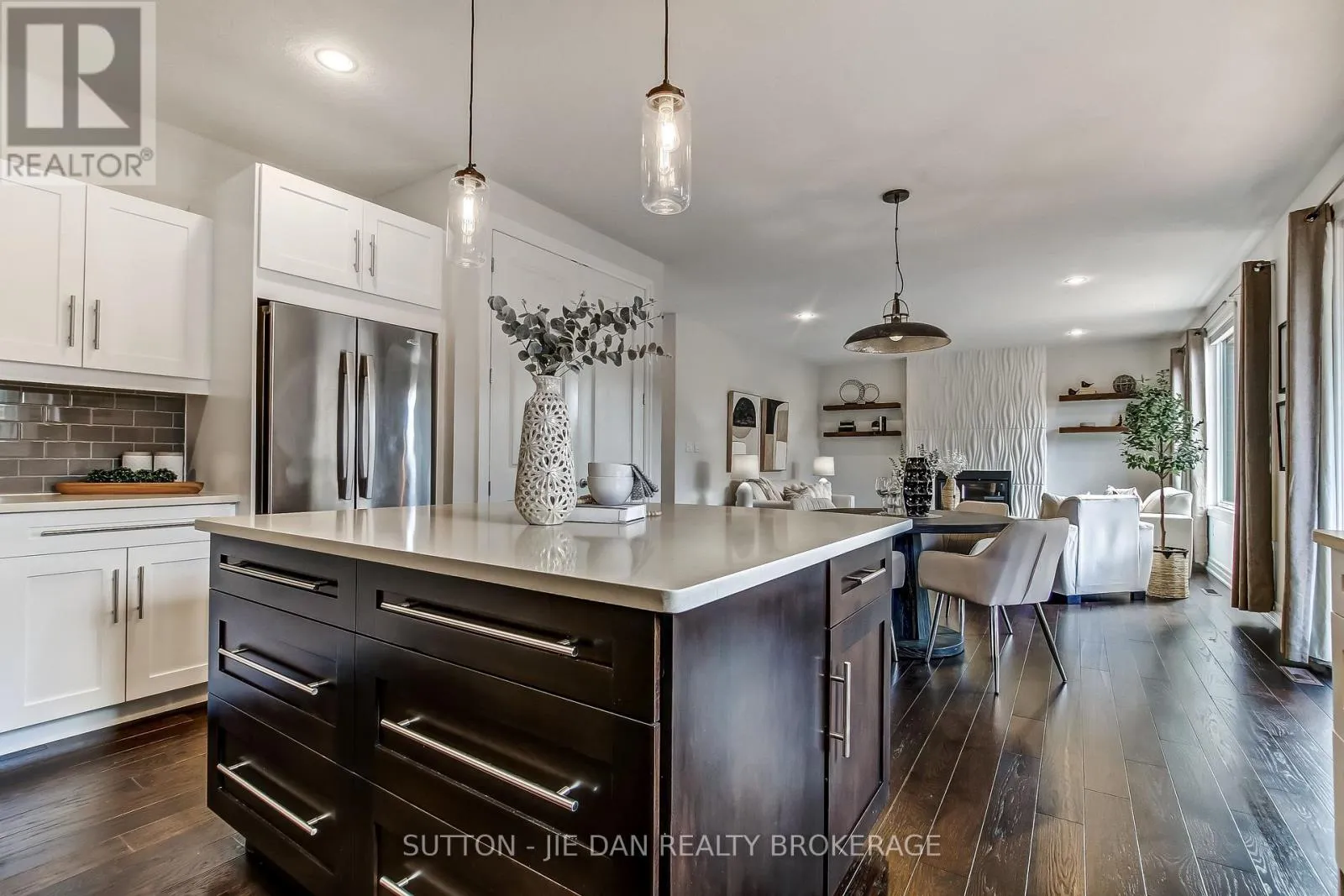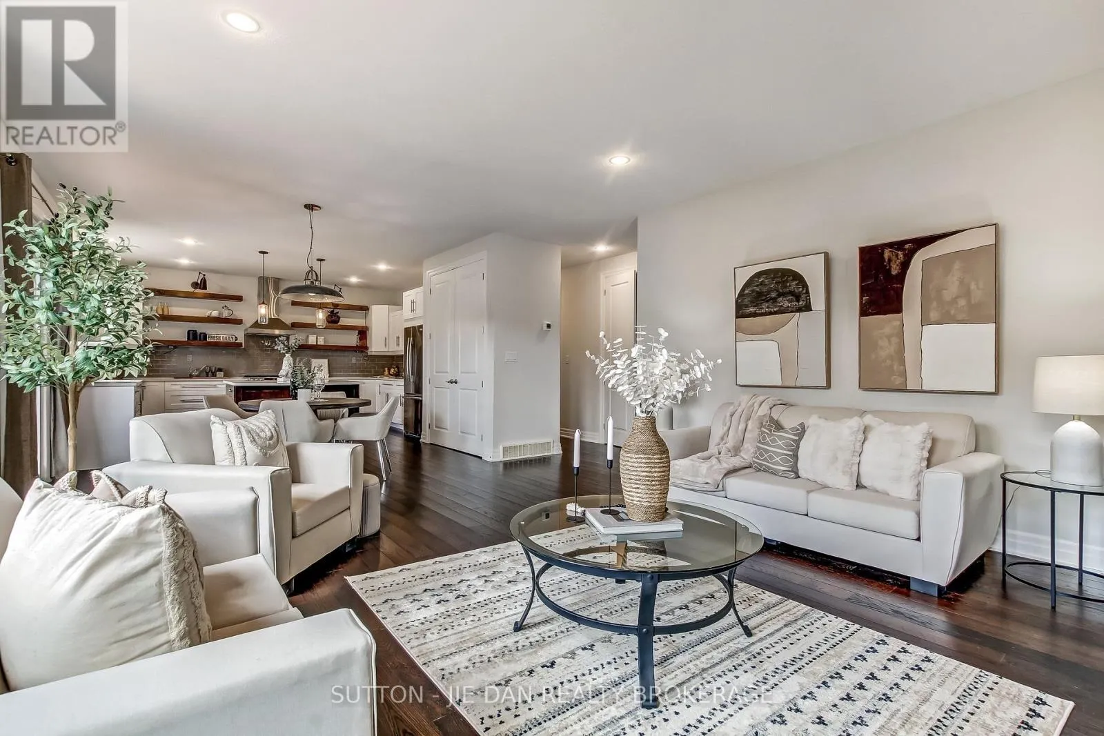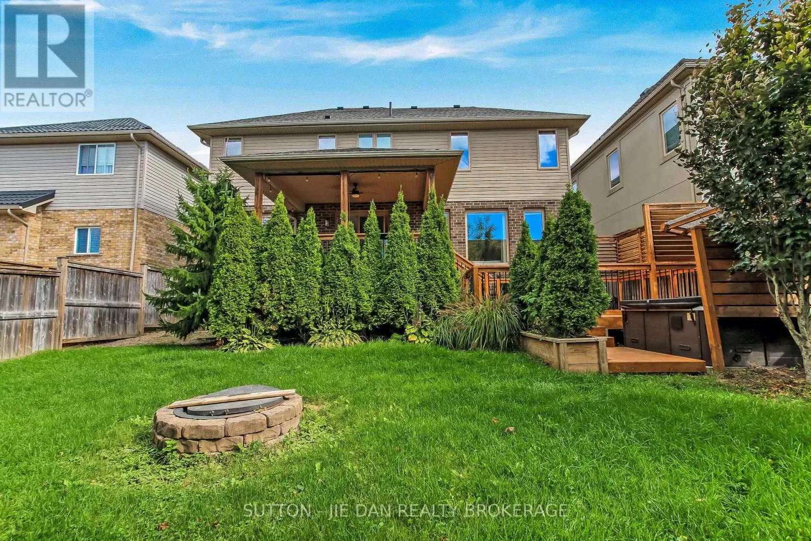 Cross Streets: Oxford Street West to Kains Road to Shore Road to Kains Woods Terrace. ** Directions: SHORE/KAINS. Your search ends here! Discover this exceptional family home in the highly sought-after Riverbend/Hunt Club West community. Ideally located near trails, parks, golf, skiing, shopping, and top restaurants. 2385 SqFt above grade & 899 SqFt finished basement. This 4+1 bedroom, 3.5-bathroom home blends functionality with designer finishes.Step into the welcoming two-story foyer that leads to an inviting main floor layout. The chefs kitchen is a dream for cooking and entertaining, featuring a newer gas stove, quartz counters, large island, drop hood vent, and floating shelves. The bright family room, complete with a gas fireplace and custom floating shelves, is perfect for gatherings, while the front room offers flexible use as a living room, dining area, or home office, enhanced by a stylish plaster accent wall.Outside, enjoy multi-tiered decks designed for privacy and aesthetic appeal, a covered porch with a cozy gazebo feel, a hot tub, and a fire pitall surrounded by lush trees. The primary suite boasts a large walk-in closet and a 5-piece ensuite with a soaker tub, walk-in glass shower, double sinks, and quartz counters. A charming loft-like bedroom over the garage adds character and versatility.The professionally finished basement is thoughtfully designed, featuring a spacious rec room with another gas fireplace, a large bedroom with walk-in closet, and a designer 3-piece bathroom. Practical upgrades include freshly re-laid paver stones in the driveway for years of worry-free maintenance. (id:27476)