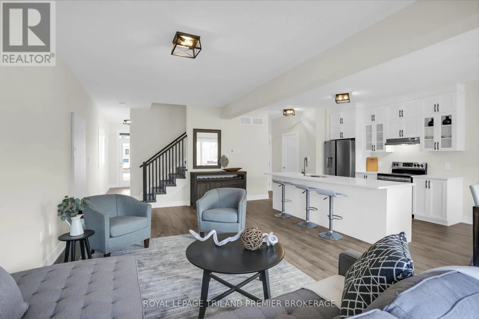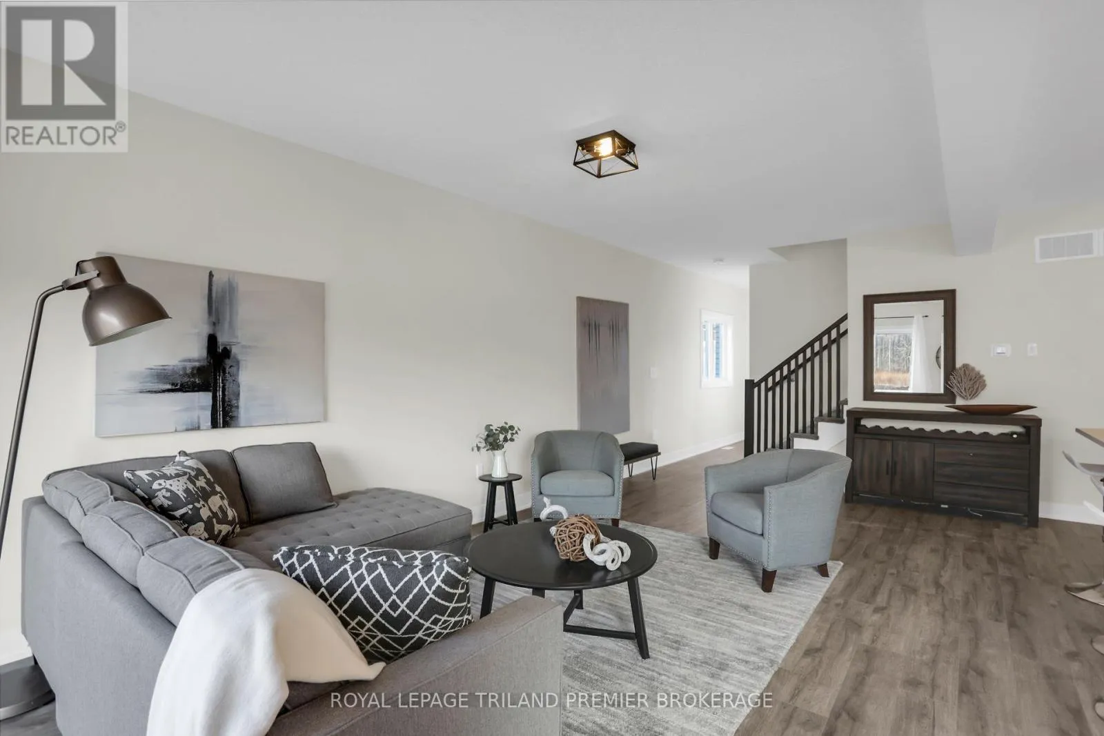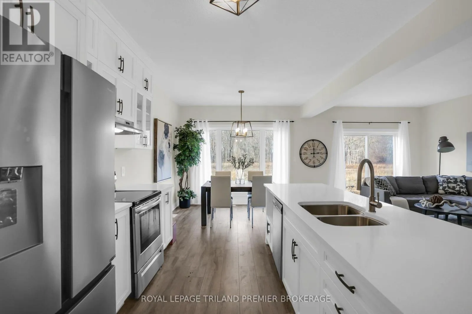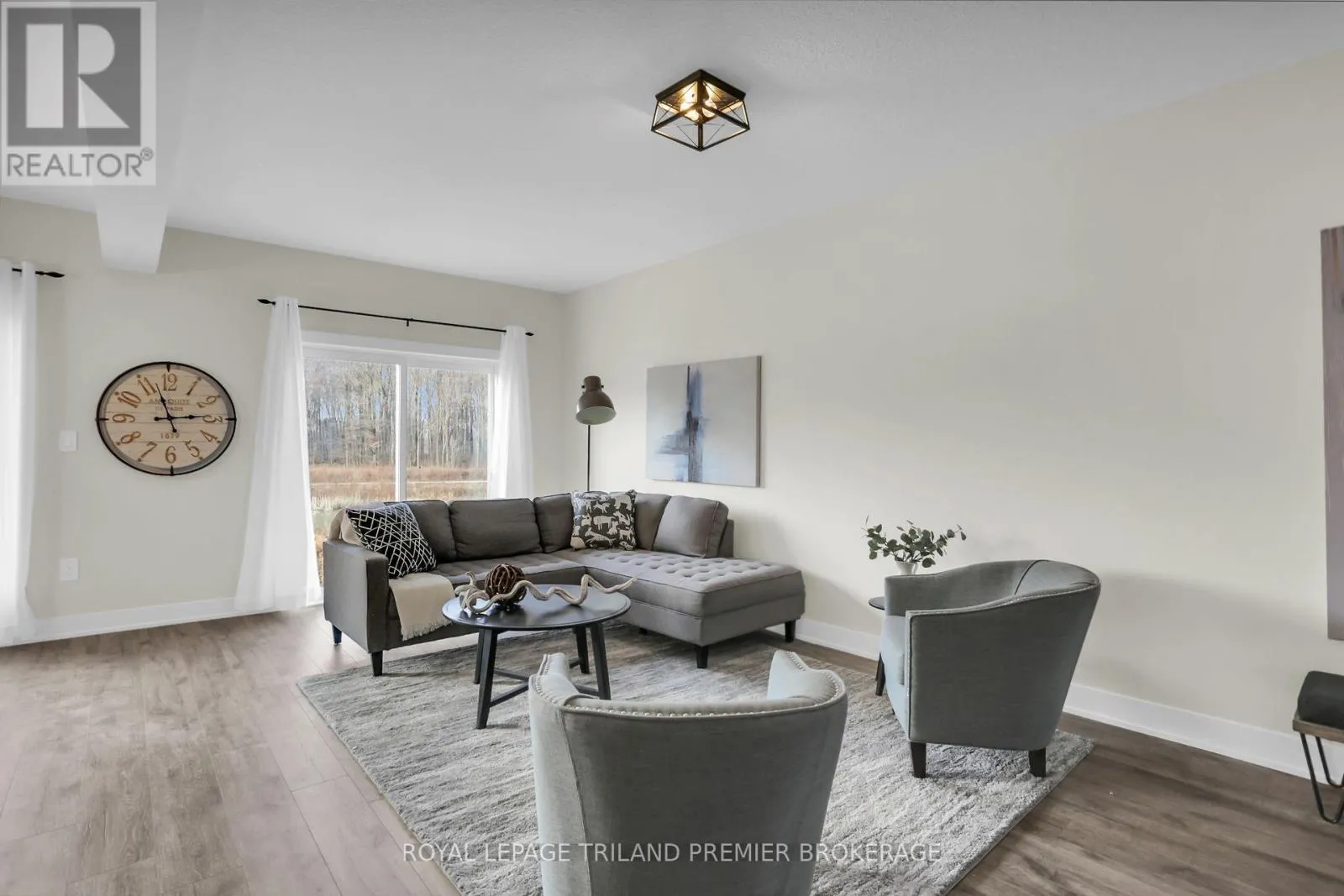 Cross Streets: CHICKADEE AND ORIOLE. ** Directions: FROM HAMILTON ROAD HEAD WEST ON ORIOLE DRIVE. TO BE BUILT! Sunlight Heritage Homes presents The Warren. 1957 sq ft of expertly designed living space located in desirable Old Victoria on the Thames. Enter into the generous open concept main level featuring kitchen with quartz countertops, 36" upper cabinets with valance and crown moulding, microwave shelf and island with breakfast bar; great room with 9' ceilings and large bright window, dinette with sliding door access to the backyard and convenient main floor 2-piece bathroom. The upper level includes 4 spacious bedrooms including primary suite with walk in closet and 5-piece ensuite with double sinks; laundry room and main bathroom that has cheater ensuite access to second bedroom. Bright walk-out basement with access to backyard and pond. Other standard inclusions: Hardwood flooring throughout main level (except bathroom), 5' patio slider, 9' ceilings on main level, bathroom rough-in in basement, drywalled garage and more! Other lots and plans to choose from. Photos are from model home and show upgraded items. (id:27476)