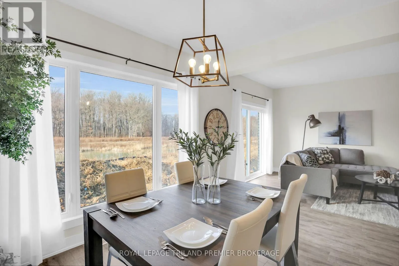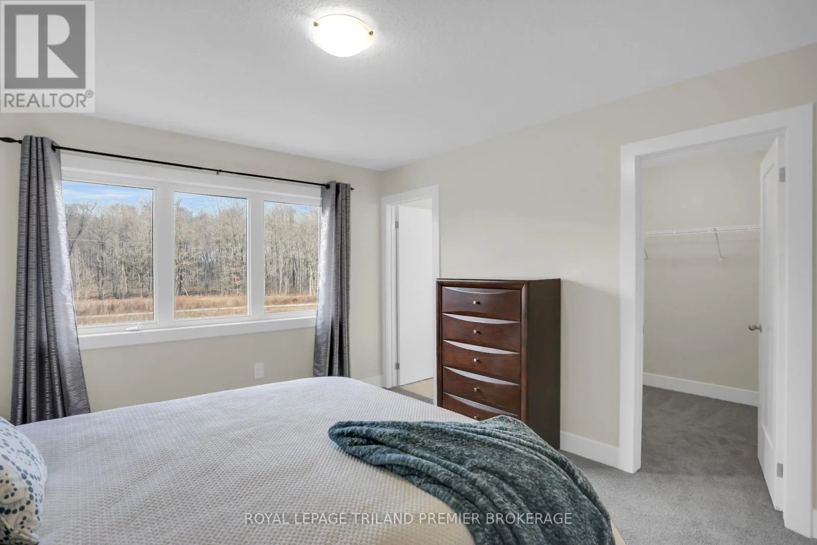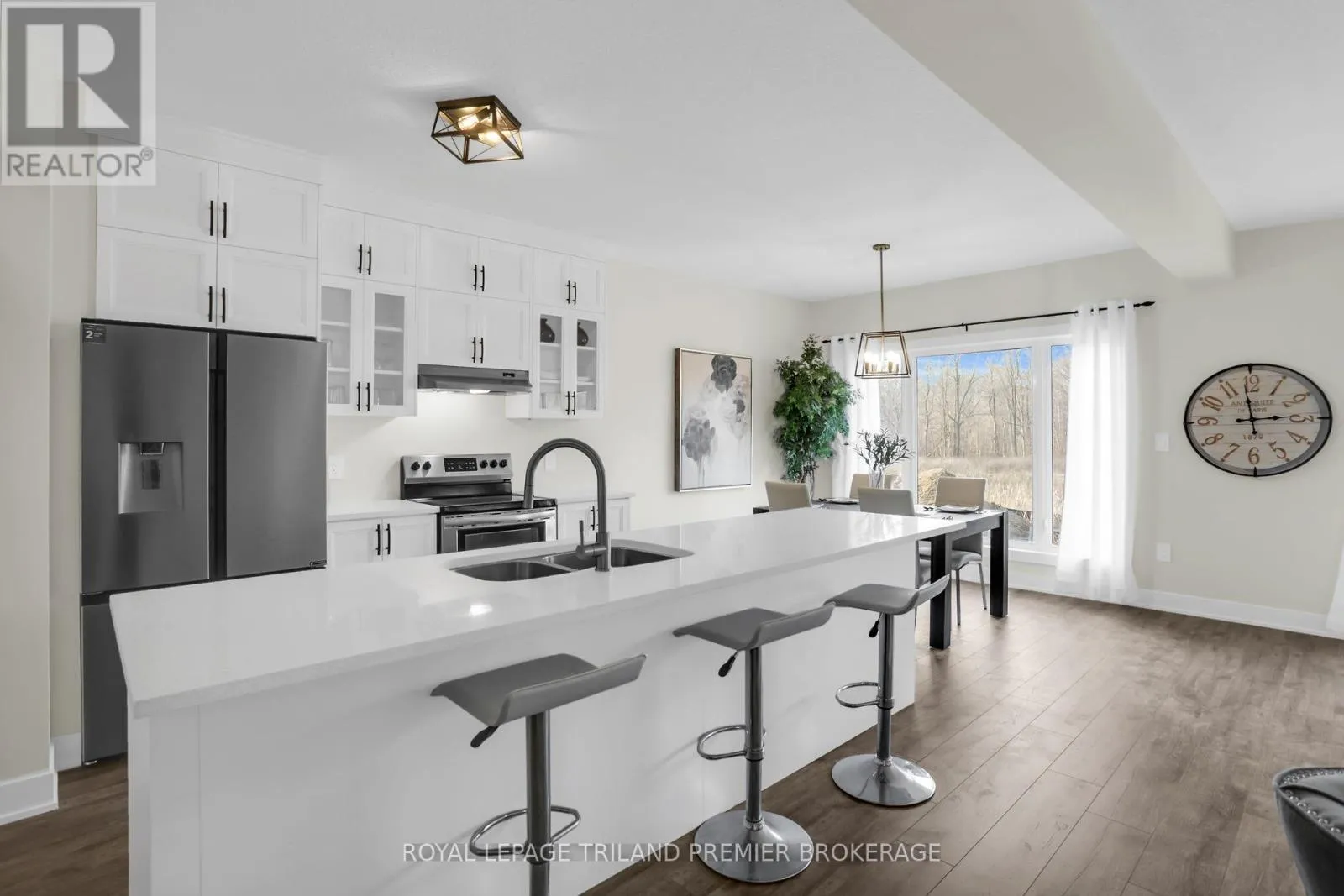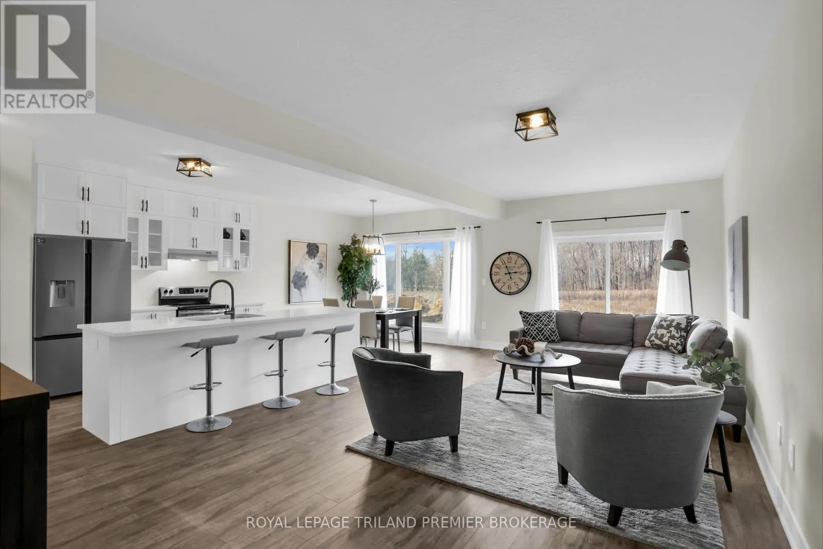 Cross Streets: CHICKADEE AND ORIOLE. ** Directions: FROM HAMILTON ROAD HEAD WEST ON ORIOLE DRIVE. TO BE BUILT! Sunlight Heritage Homes presents The Warren. 1957 sq ft of expertly designed living space located in desirable Old Victoria on the Thames. Enter into the generous open concept main level featuring kitchen with quartz countertops, 36" upper cabinets with valance and crown moulding, microwave shelf and island with breakfast bar; great room with 9' ceilings and large bright window, dinette with sliding door access to the backyard and convenient main floor 2-piece bathroom. The upper level includes 4 spacious bedrooms including primary suite with walk in closet and 5-piece ensuite with double sinks; laundry room and main bathroom that has cheater ensuite access to second bedroom. Bright walk-out basement with access to backyard and pond. Other standard inclusions: Hardwood flooring throughout main level (except bathroom), 5' patio slider, 9' ceilings on main level, bathroom rough-in in basement, drywalled garage and more! Other lots and plans to choose from. Photos are from model home and show upgraded items. (id:27476)